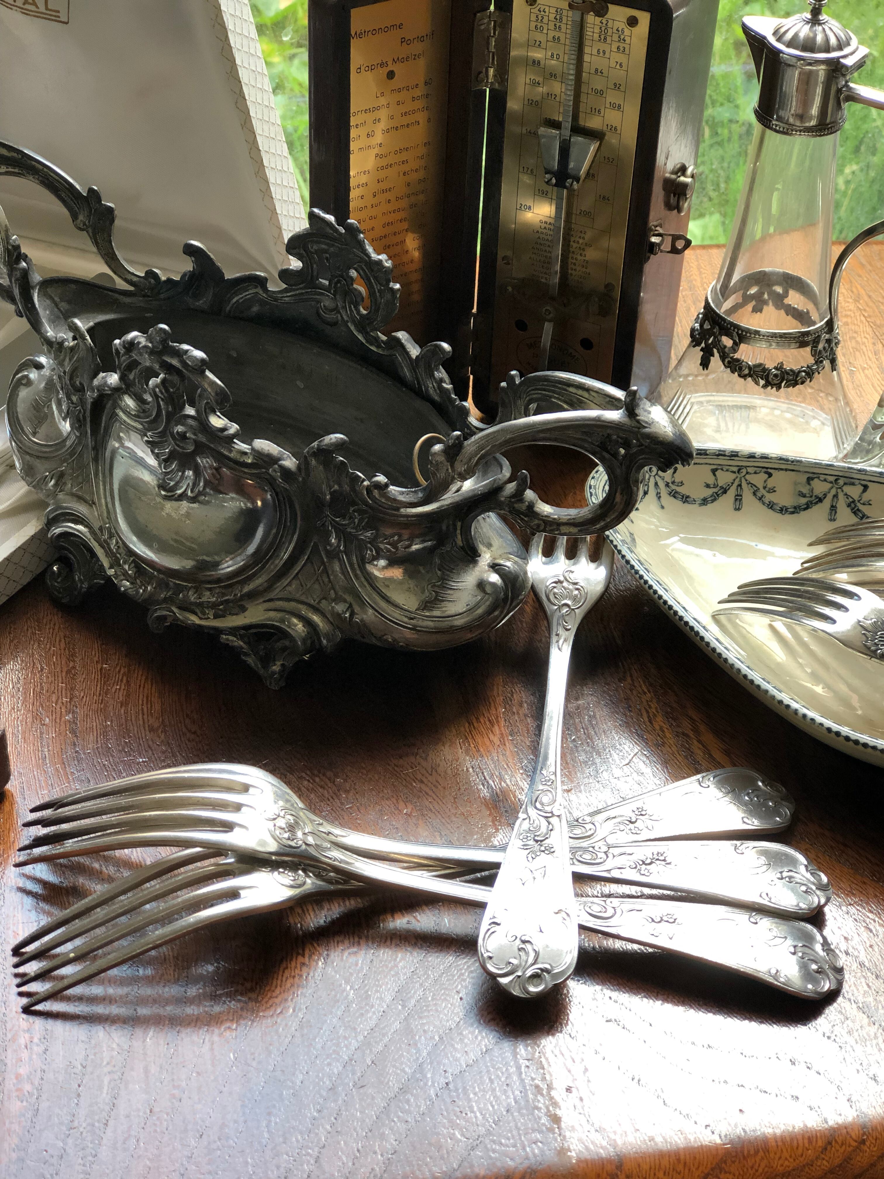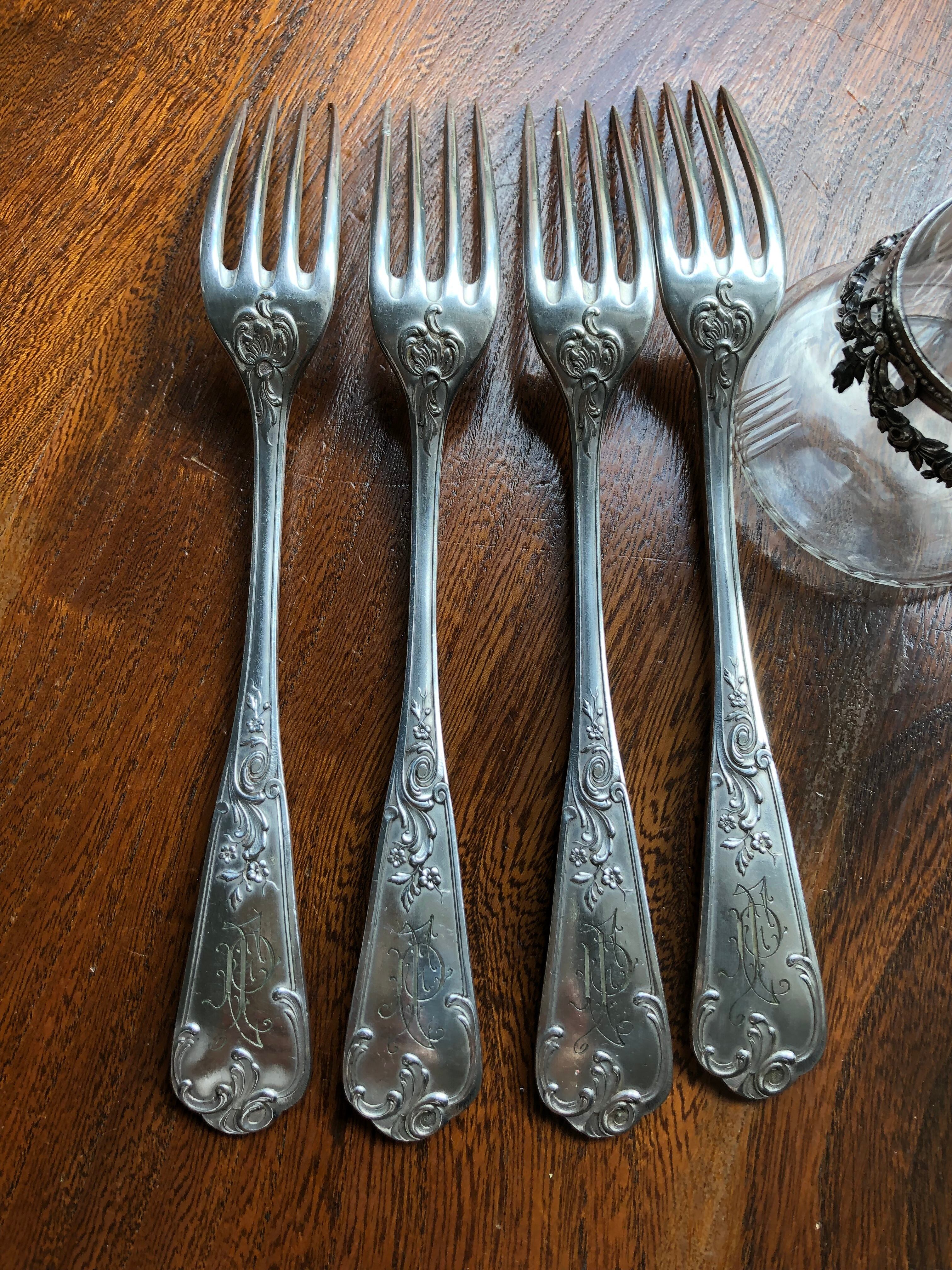 美しいシルバーフォーク イニシャル入り 4本セットです。