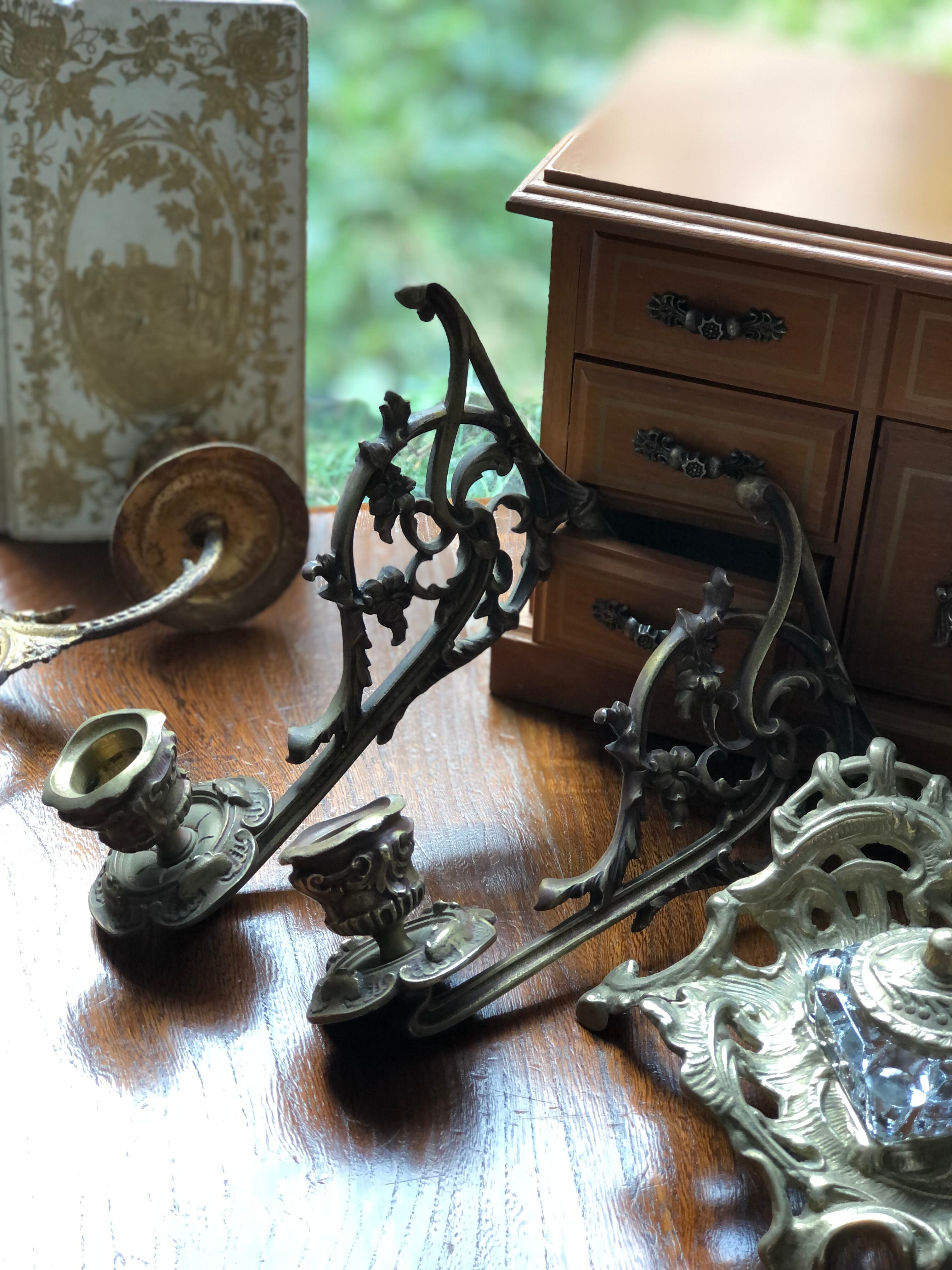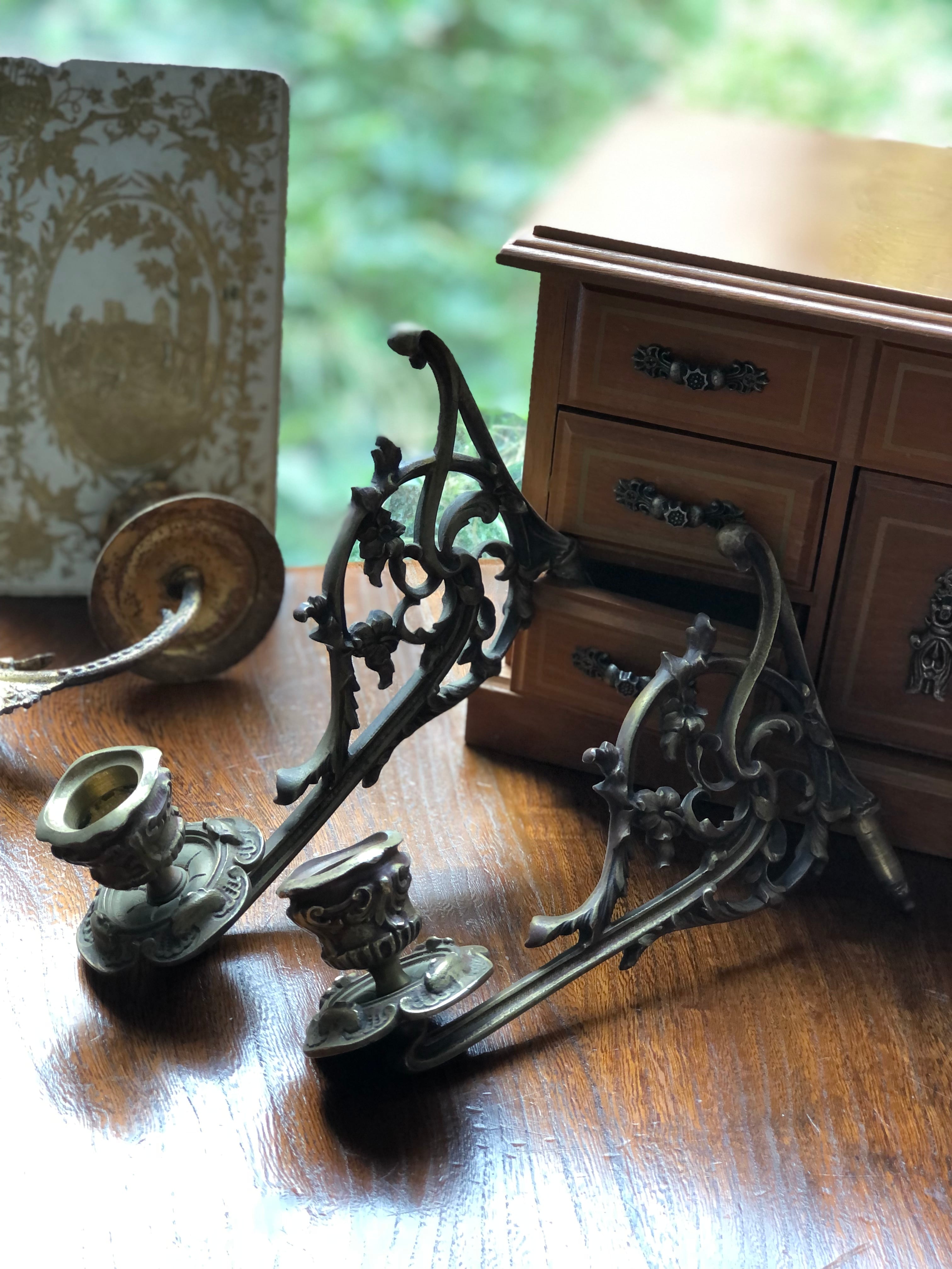 昔のピアノについていた、2灯のアンティークブロンズキャンドルホルダーです。