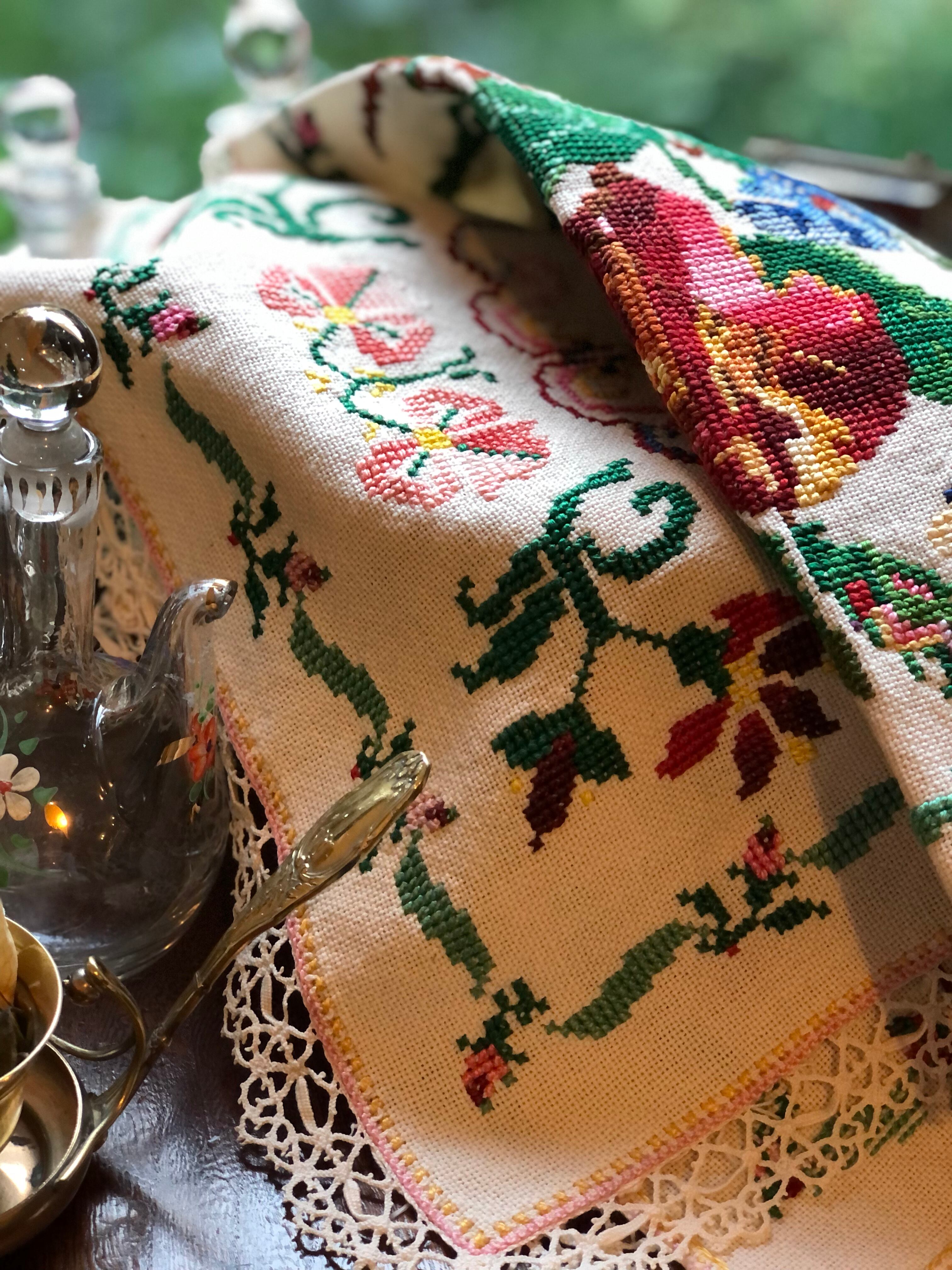 アンティーク・刺繍テーブルセンター