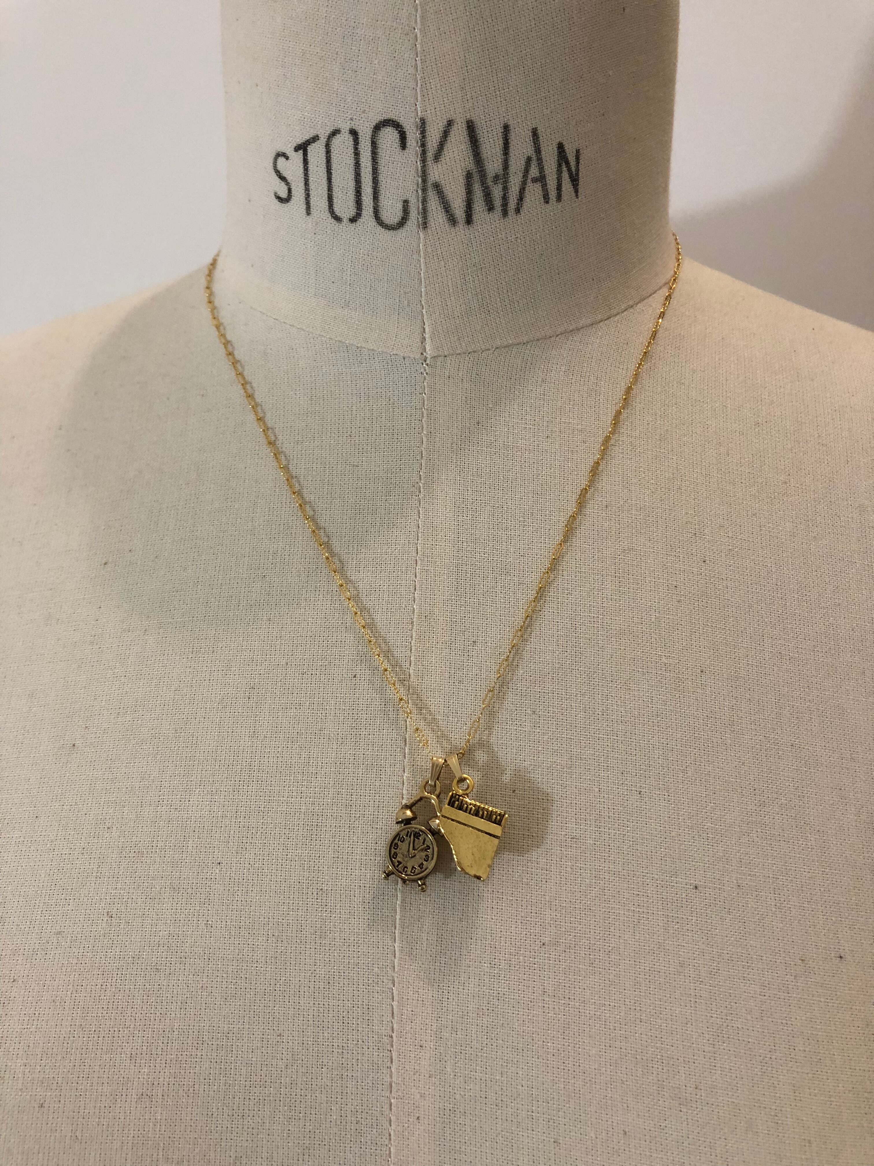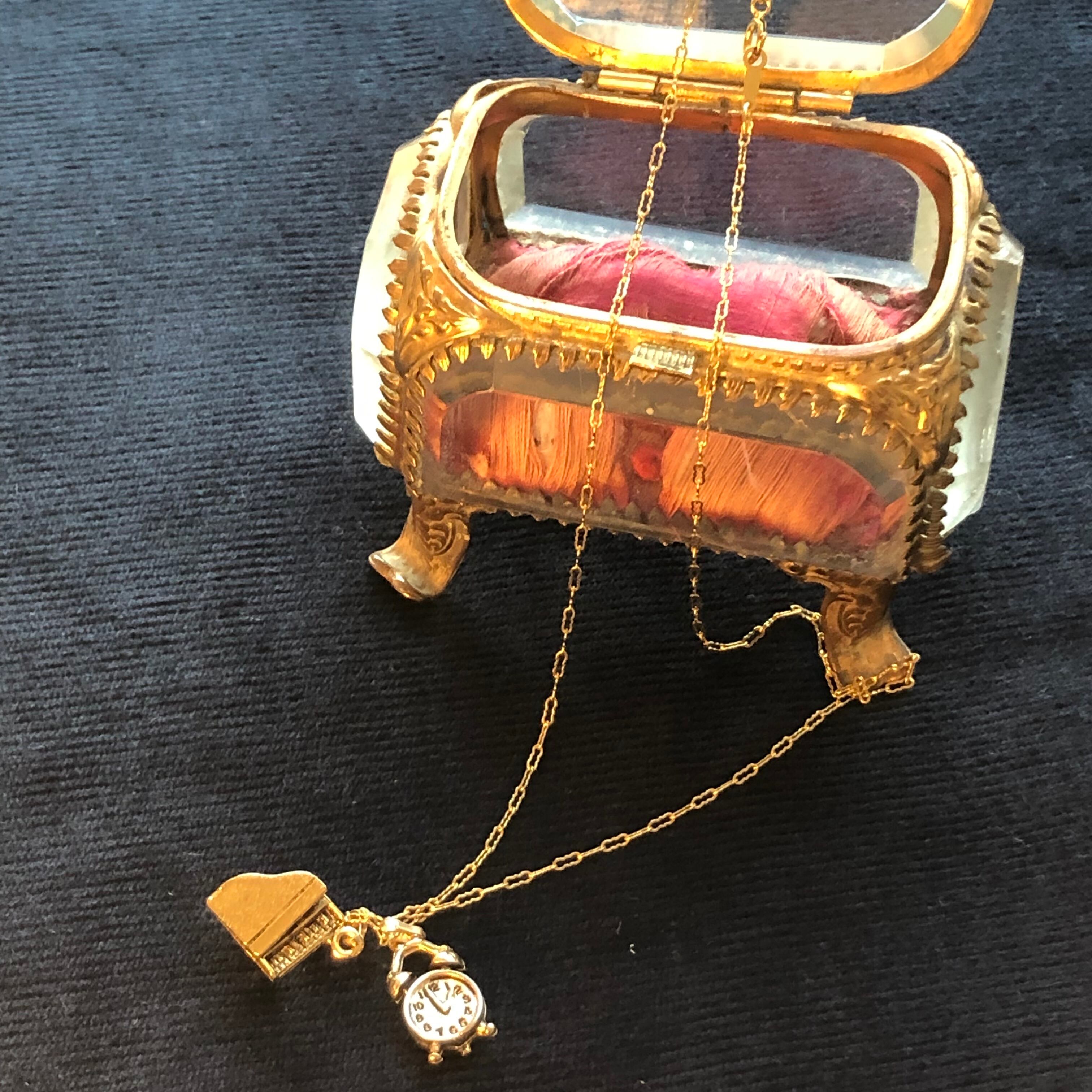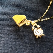 ヴィンテージチャームネックレス・14KGF ピアノと時計