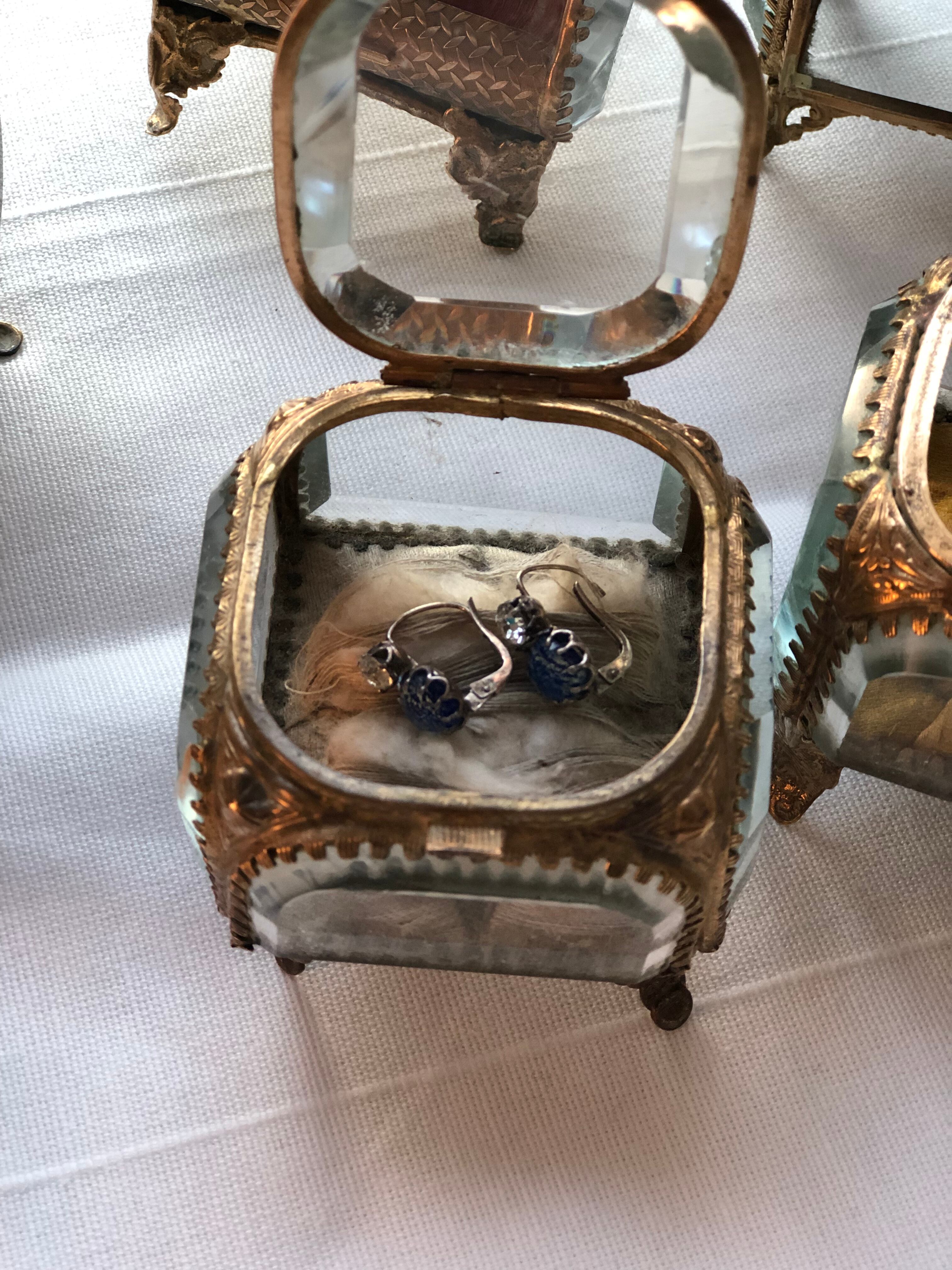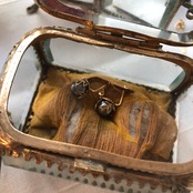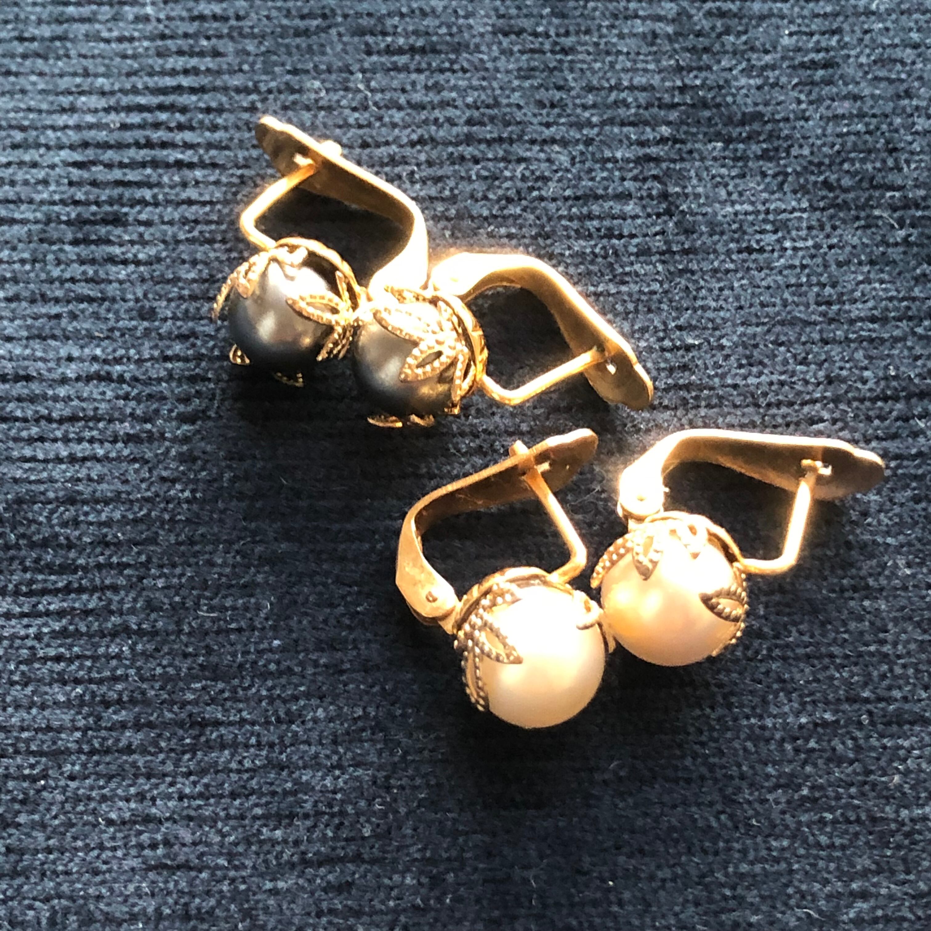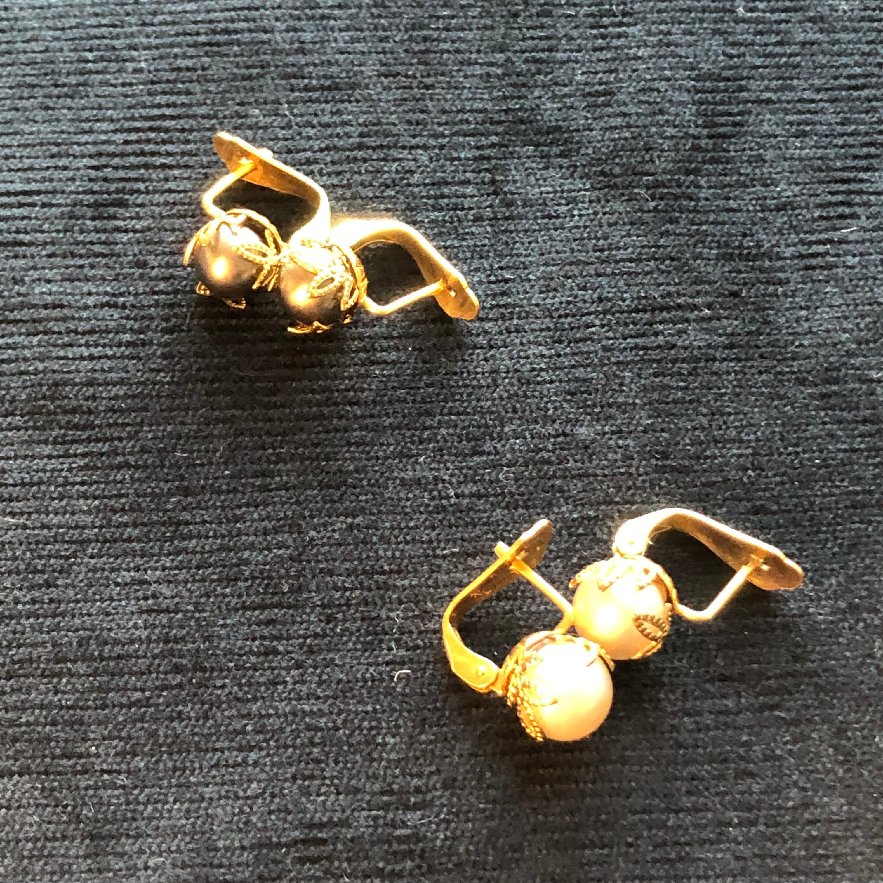 1940年代のフランスヴィンテージガラスパールと1940年台イタリア製の18kゴールドコーティングの金具の美しいピアスです。