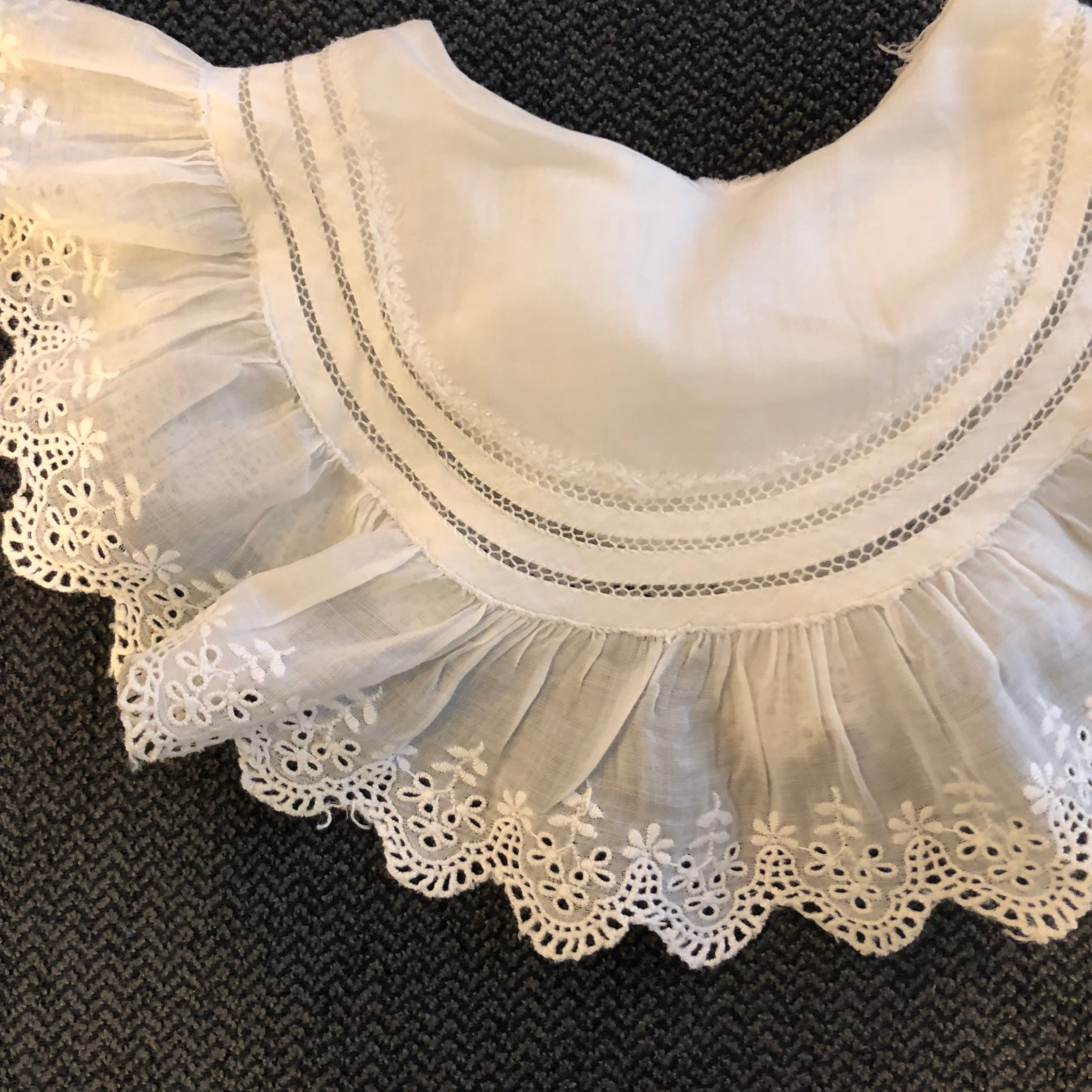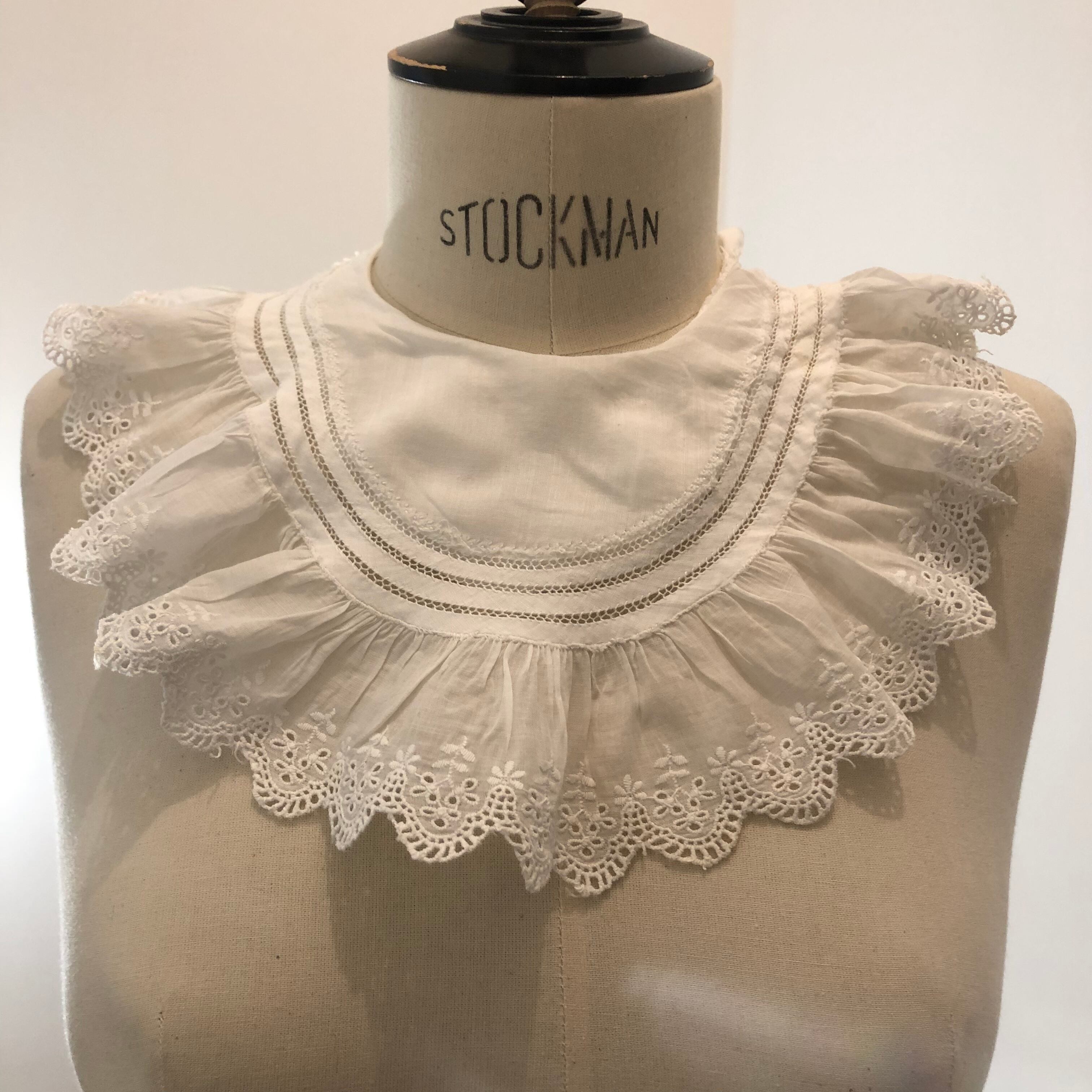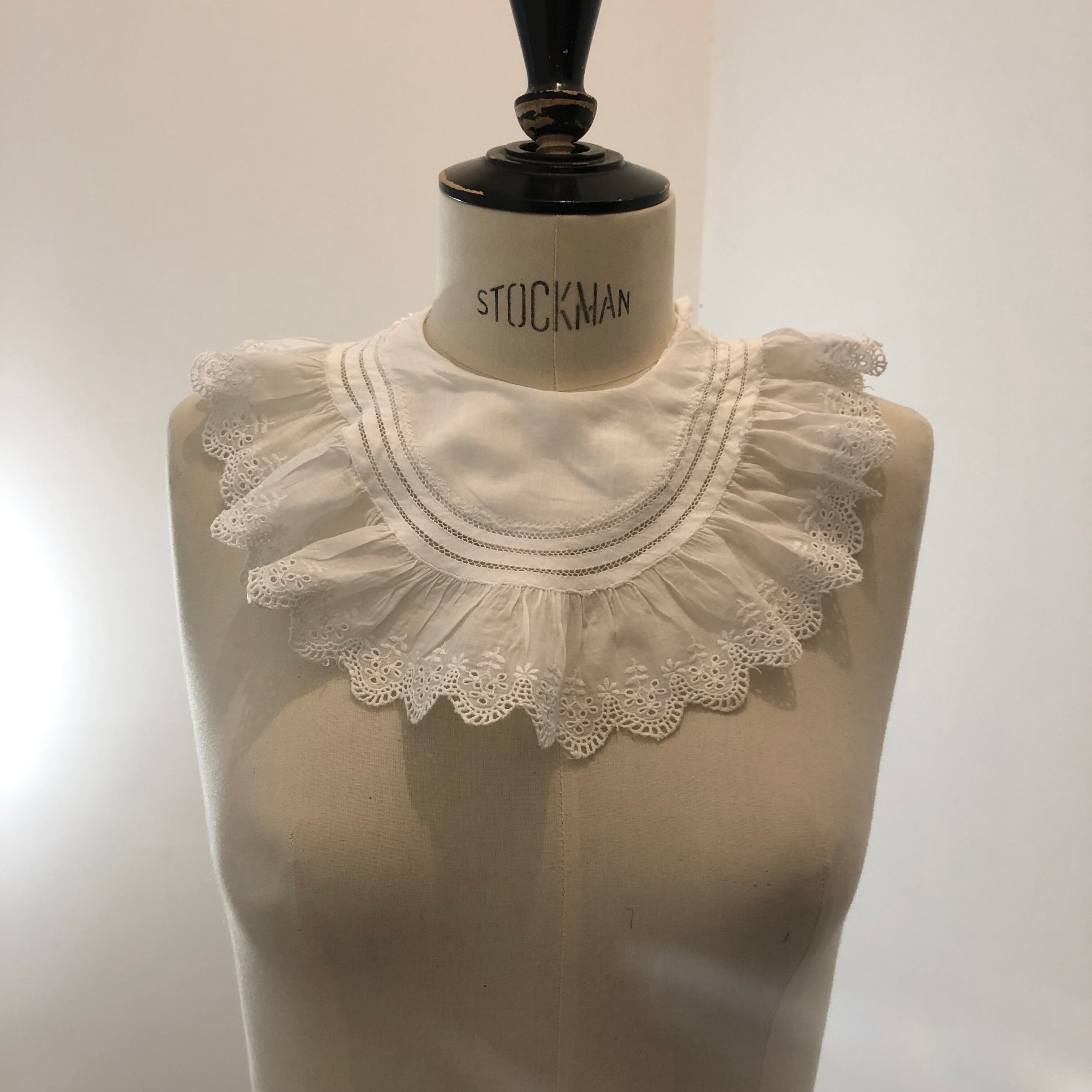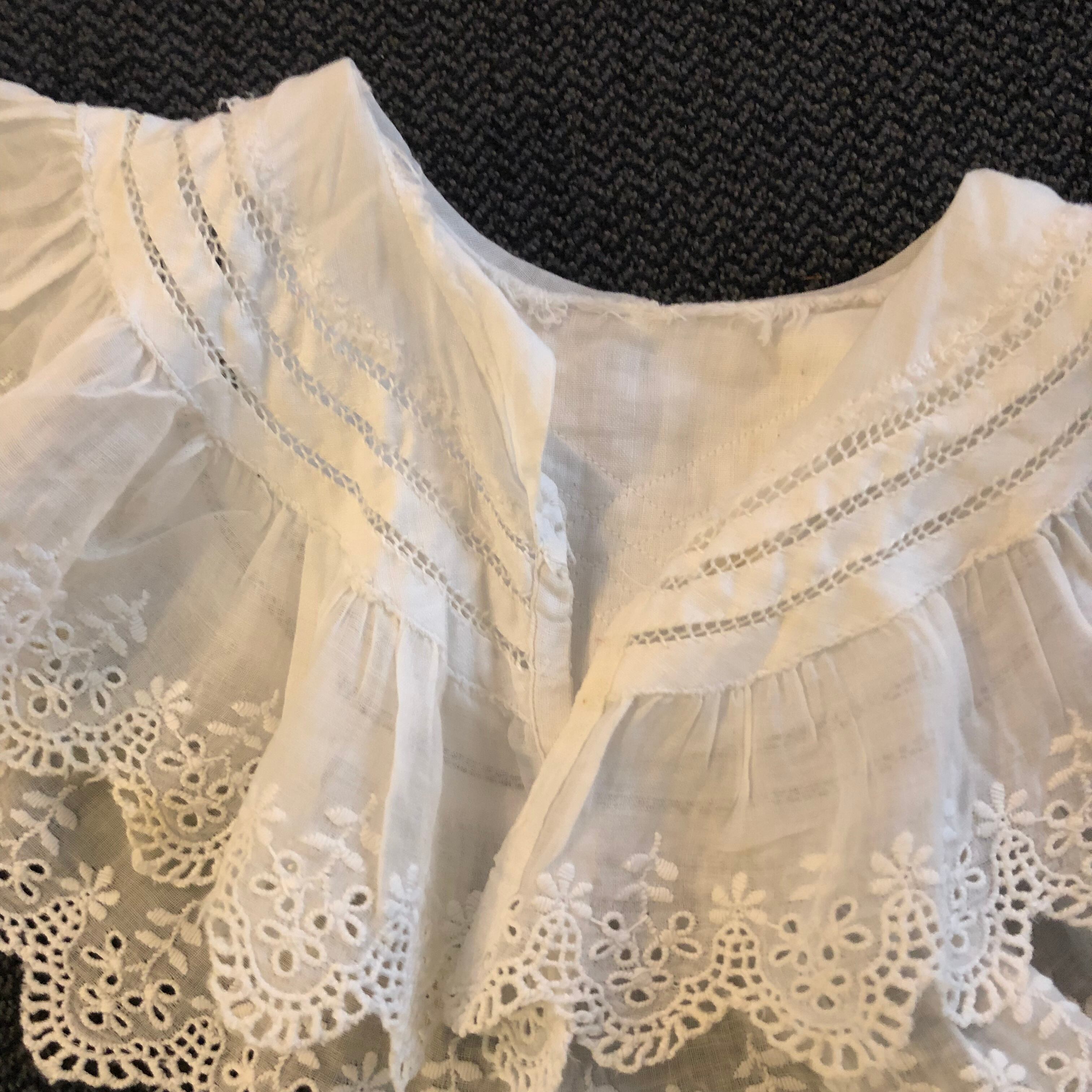 ホワイトカラーです。一部に汚れがございますが、フリルが多いので