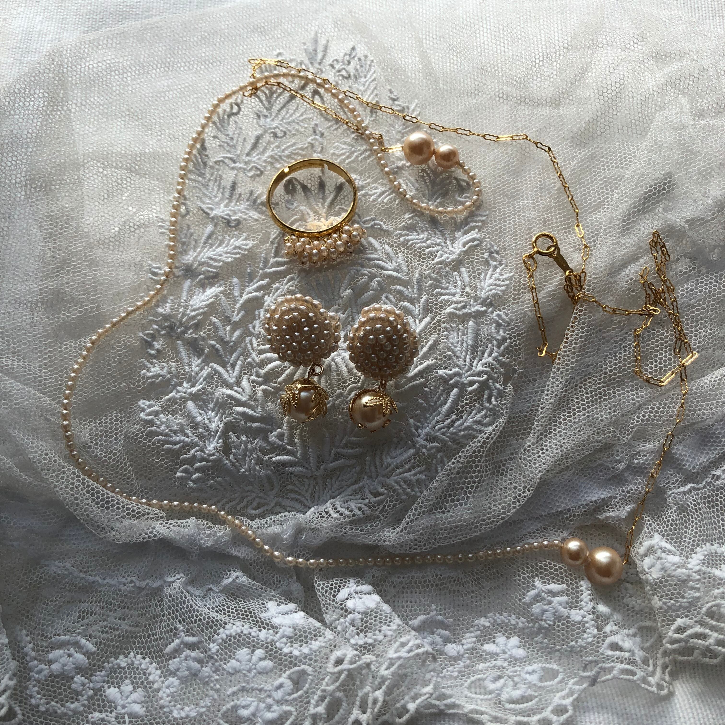 誇張しすぎない、上品なクリームカラーのパールピアスです。