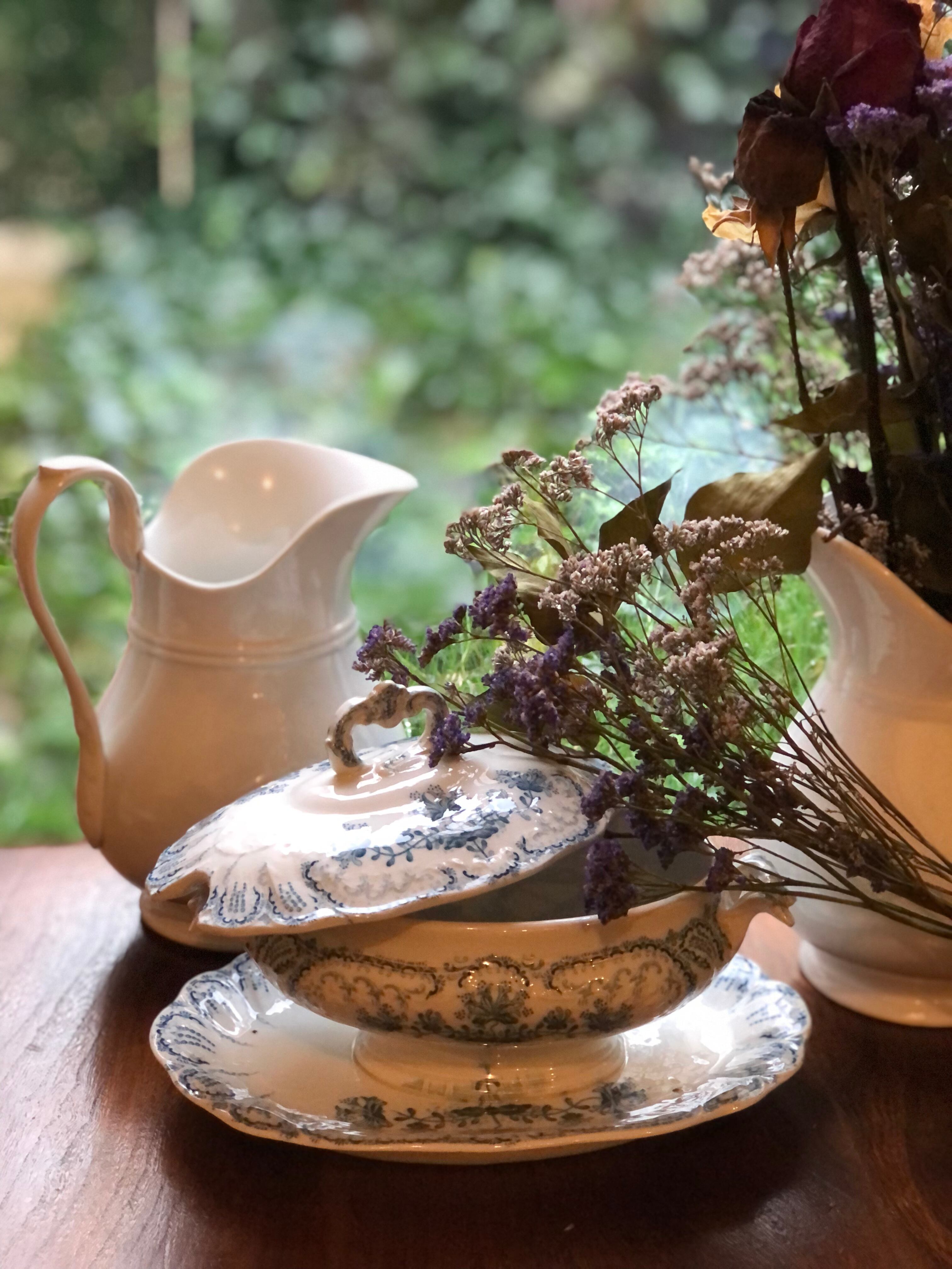 美しい青のデッサンが魅力的です。ブルーのデッサンとホワイトの装飾の