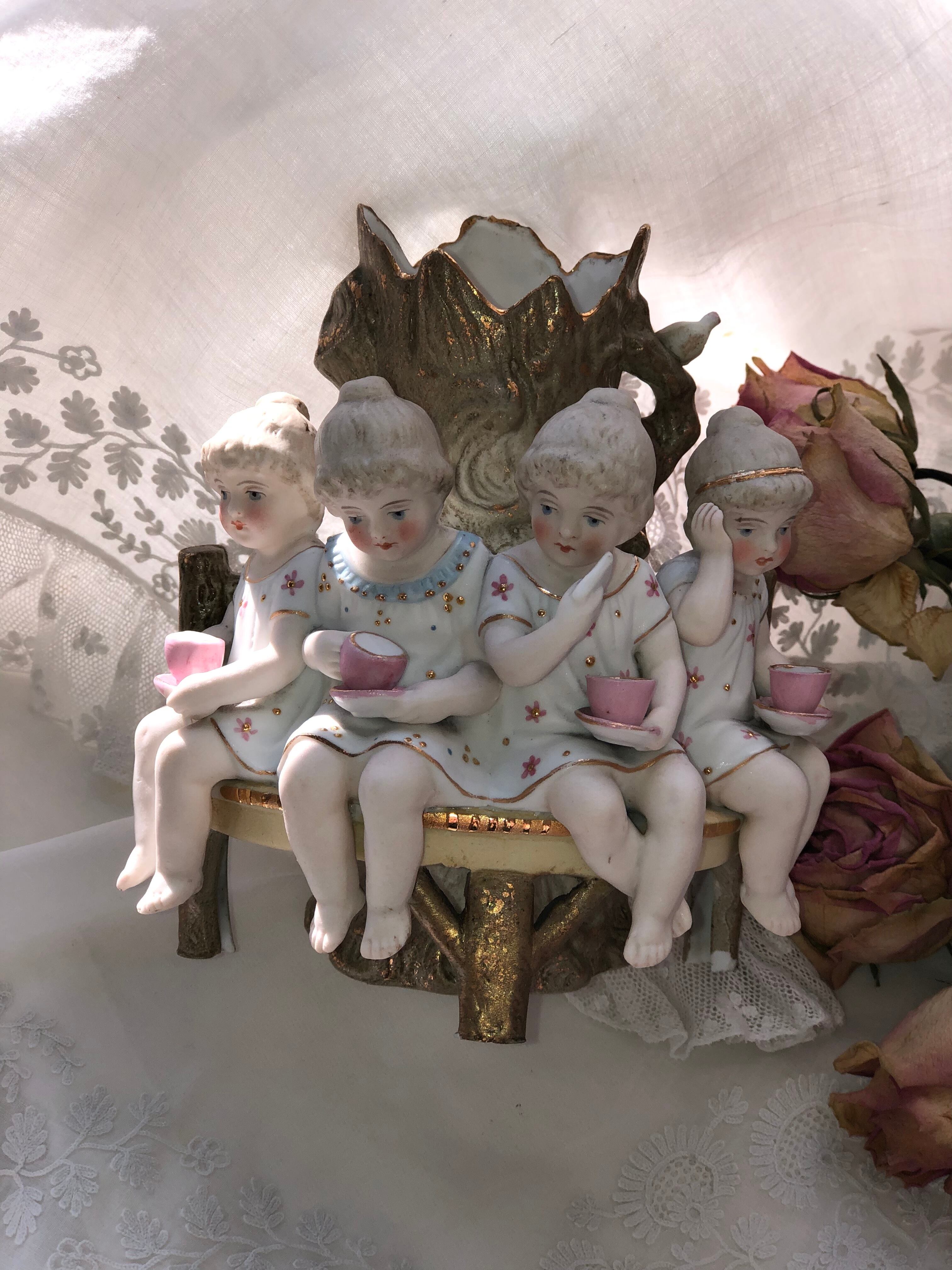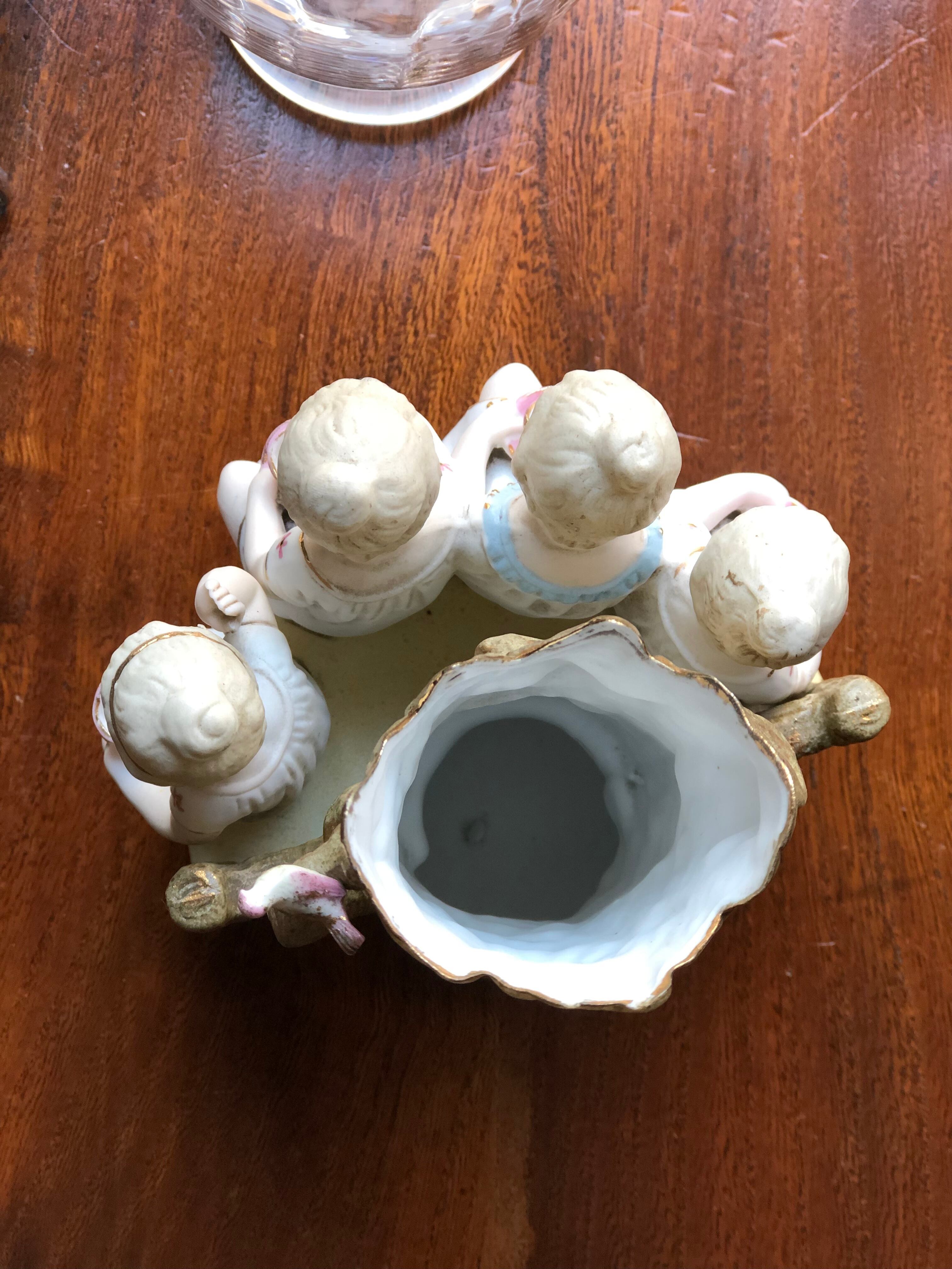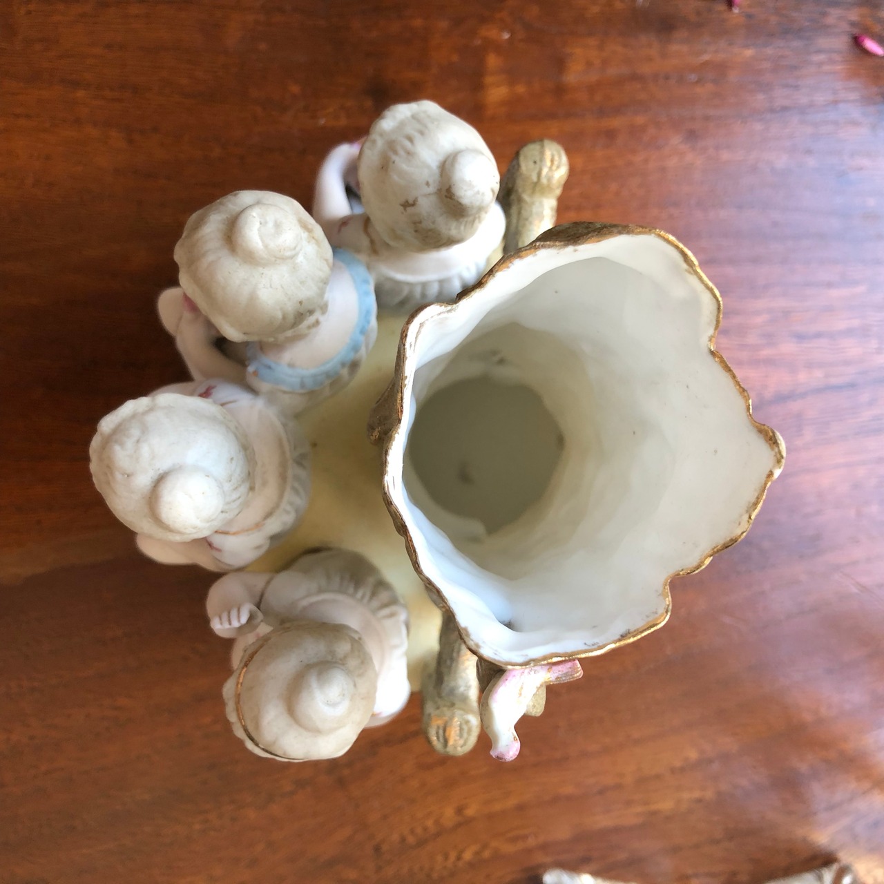 ビスク陶磁器のフラワーベース、天使のように愛らしい4人の女の子たちの