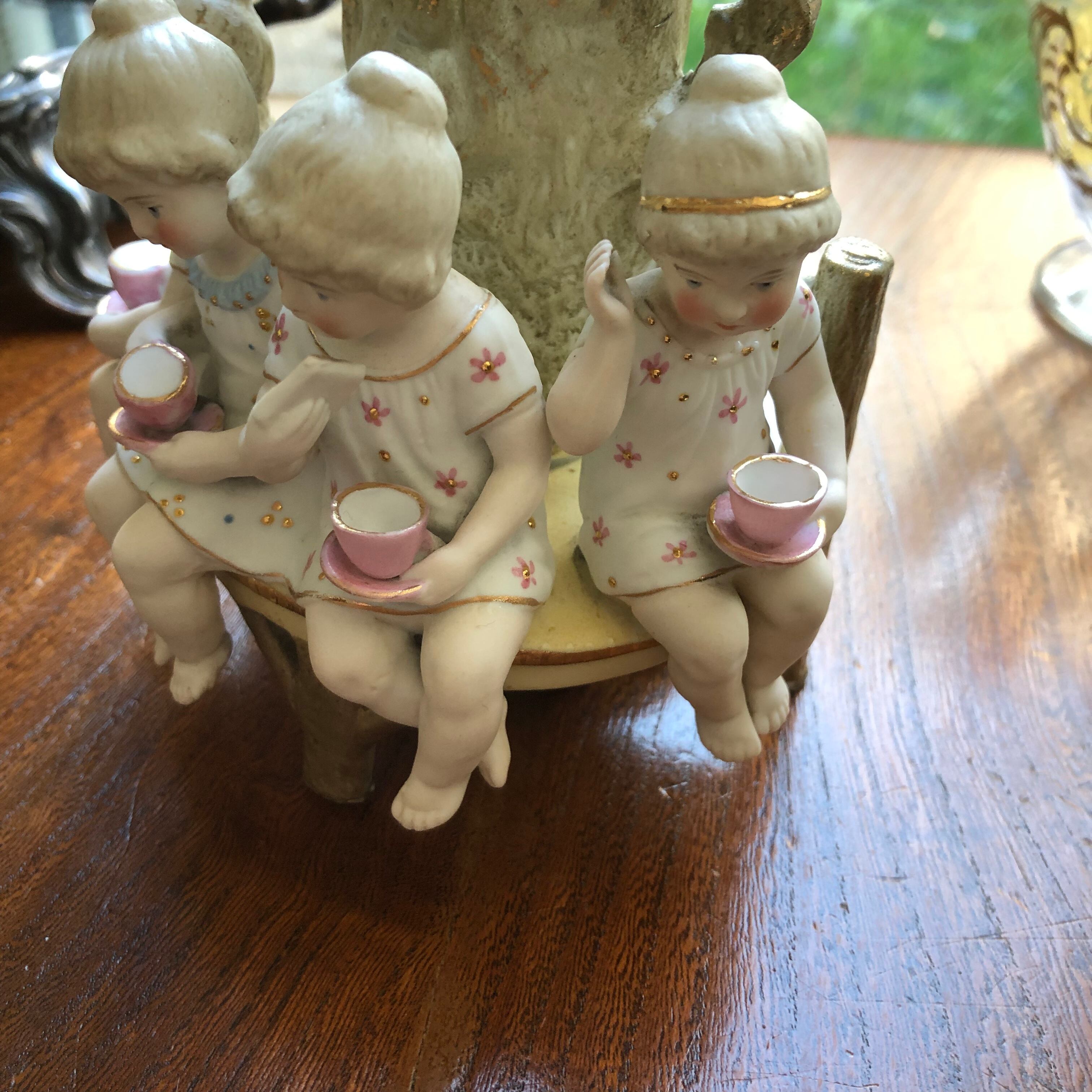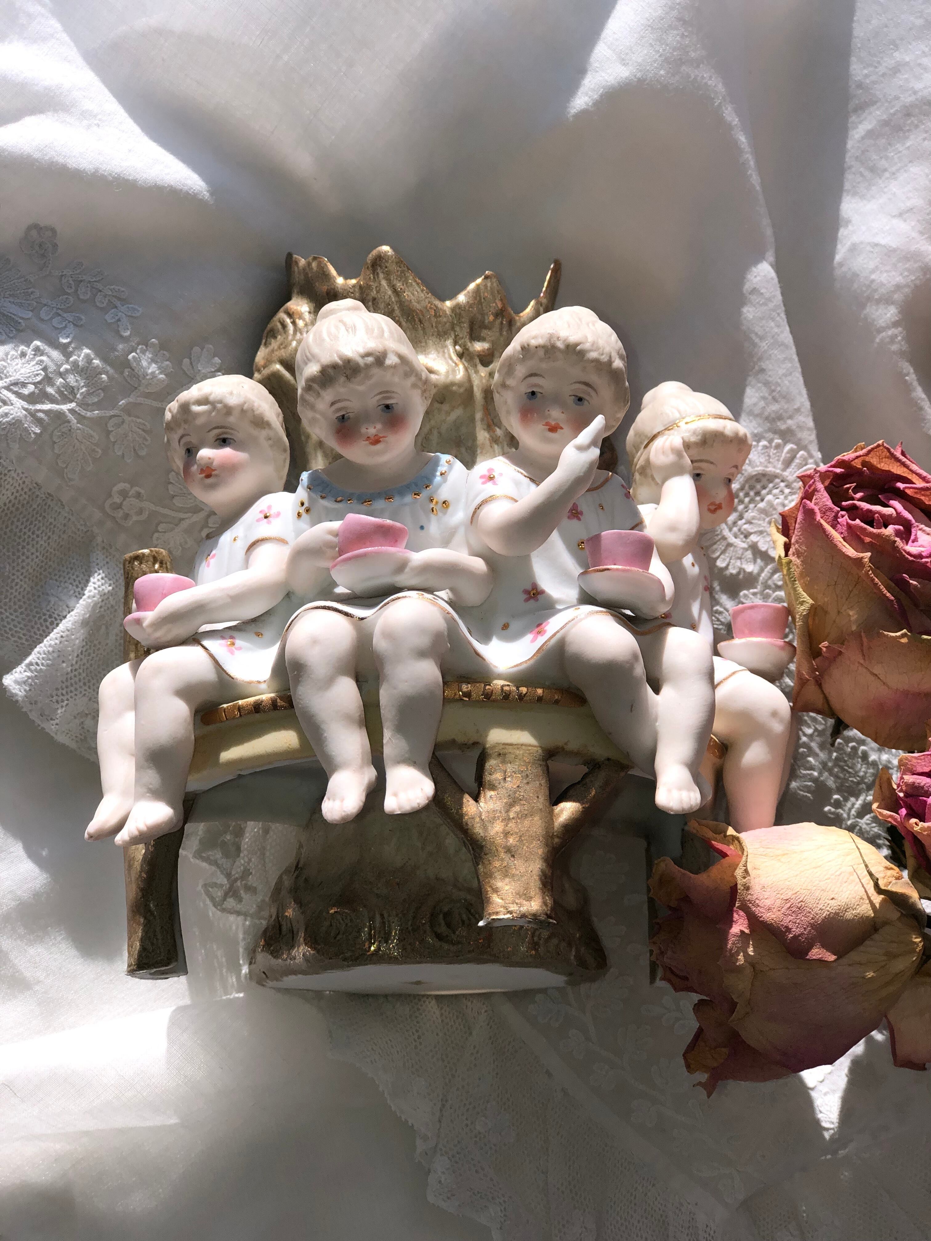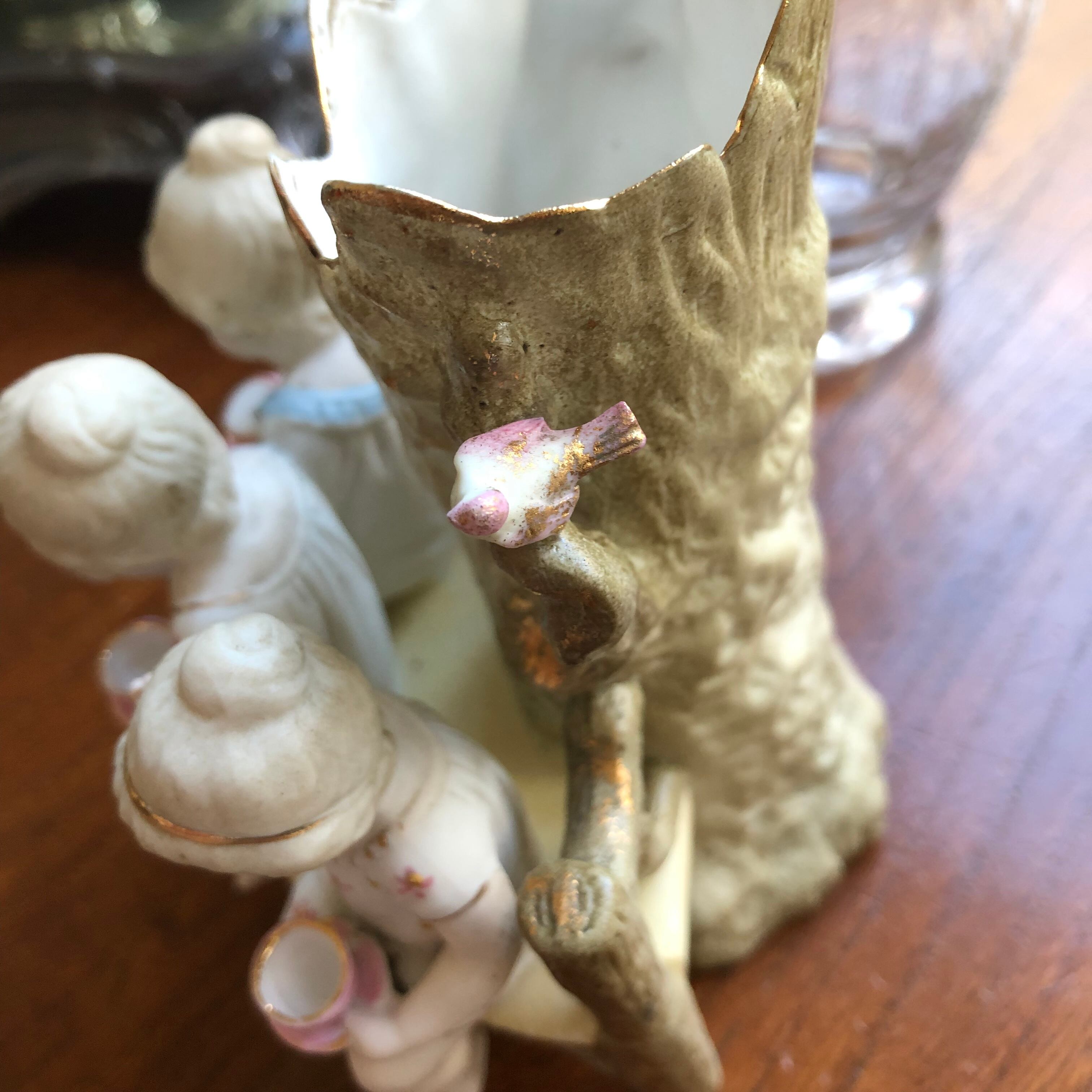 ビスク陶磁器のフラワーベース、天使のように愛らしい4人の女の子たちの