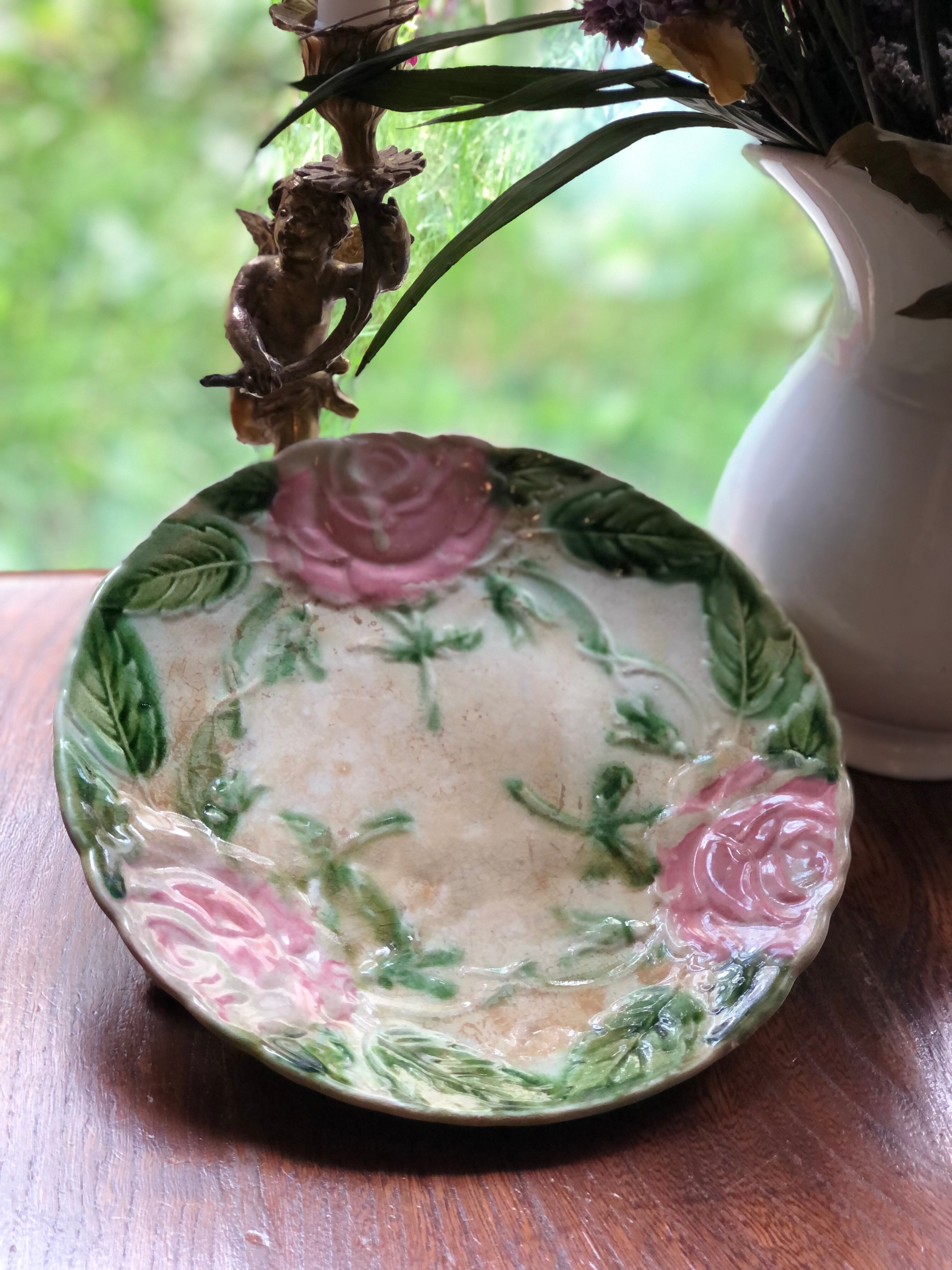 美しい、ローズの絵柄の、柔らかな鮮やかなプレートです。