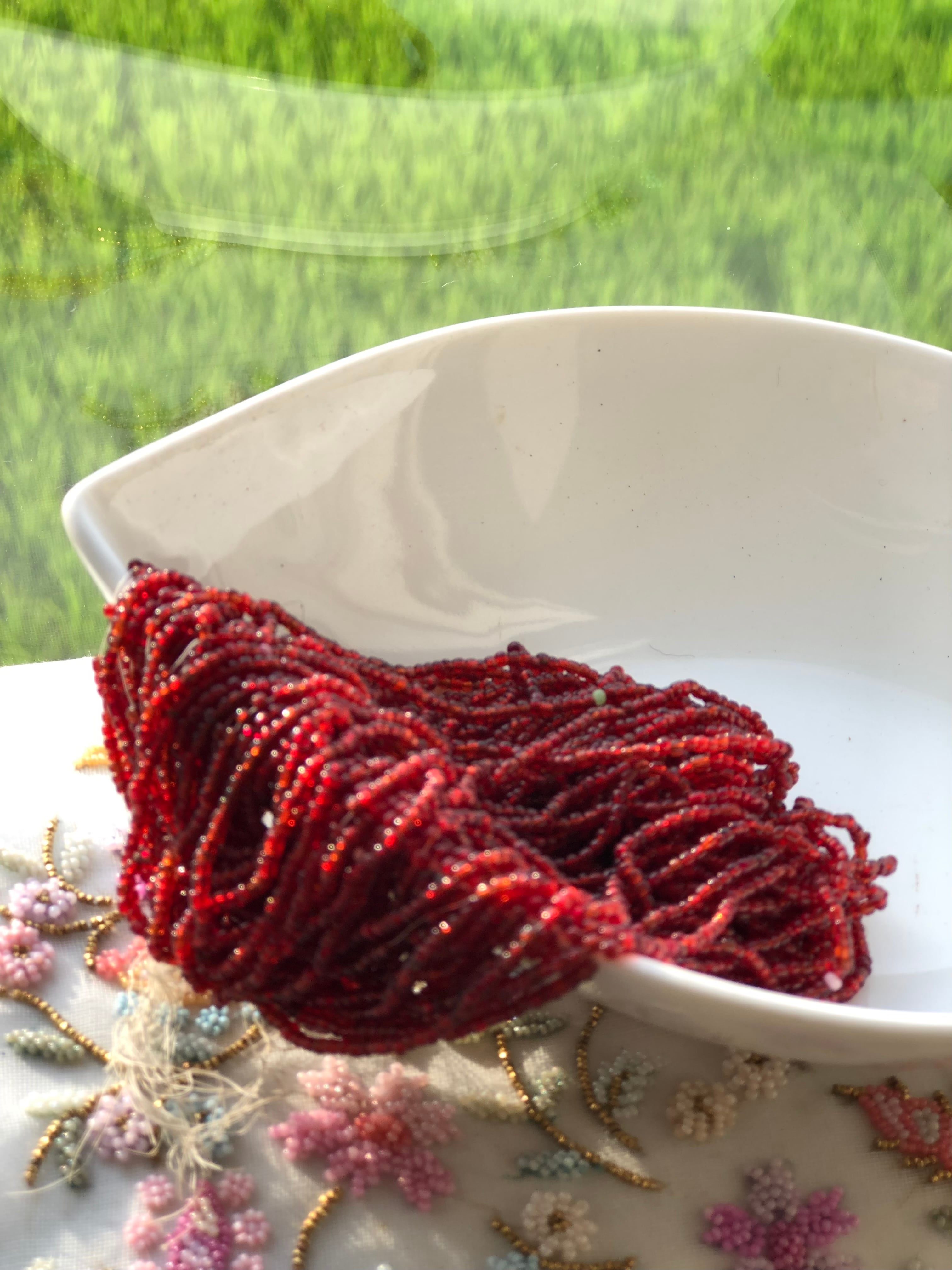 カラー ガーネット【赤ですが、一部黒っぽい赤、明るい赤、など、数色マーブルになっています。アンティークの色合いで、素敵だと思います。】