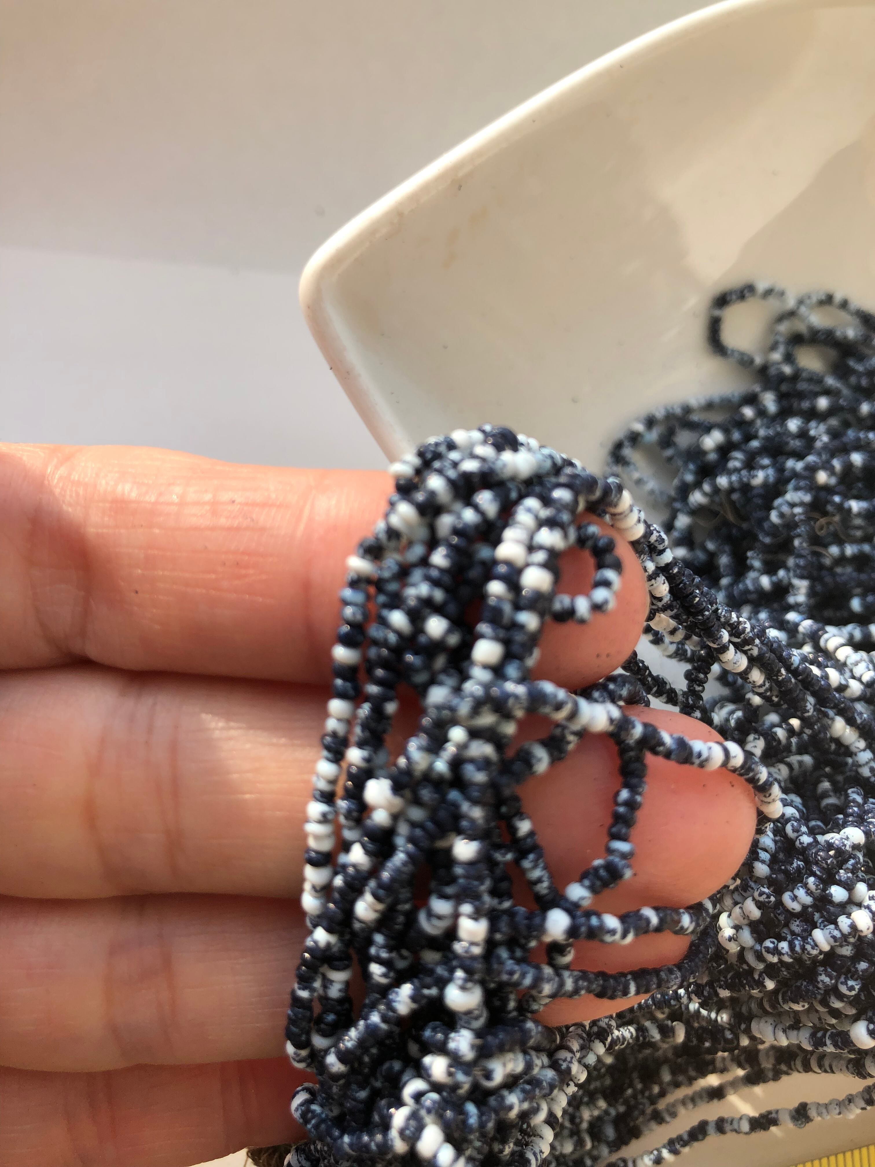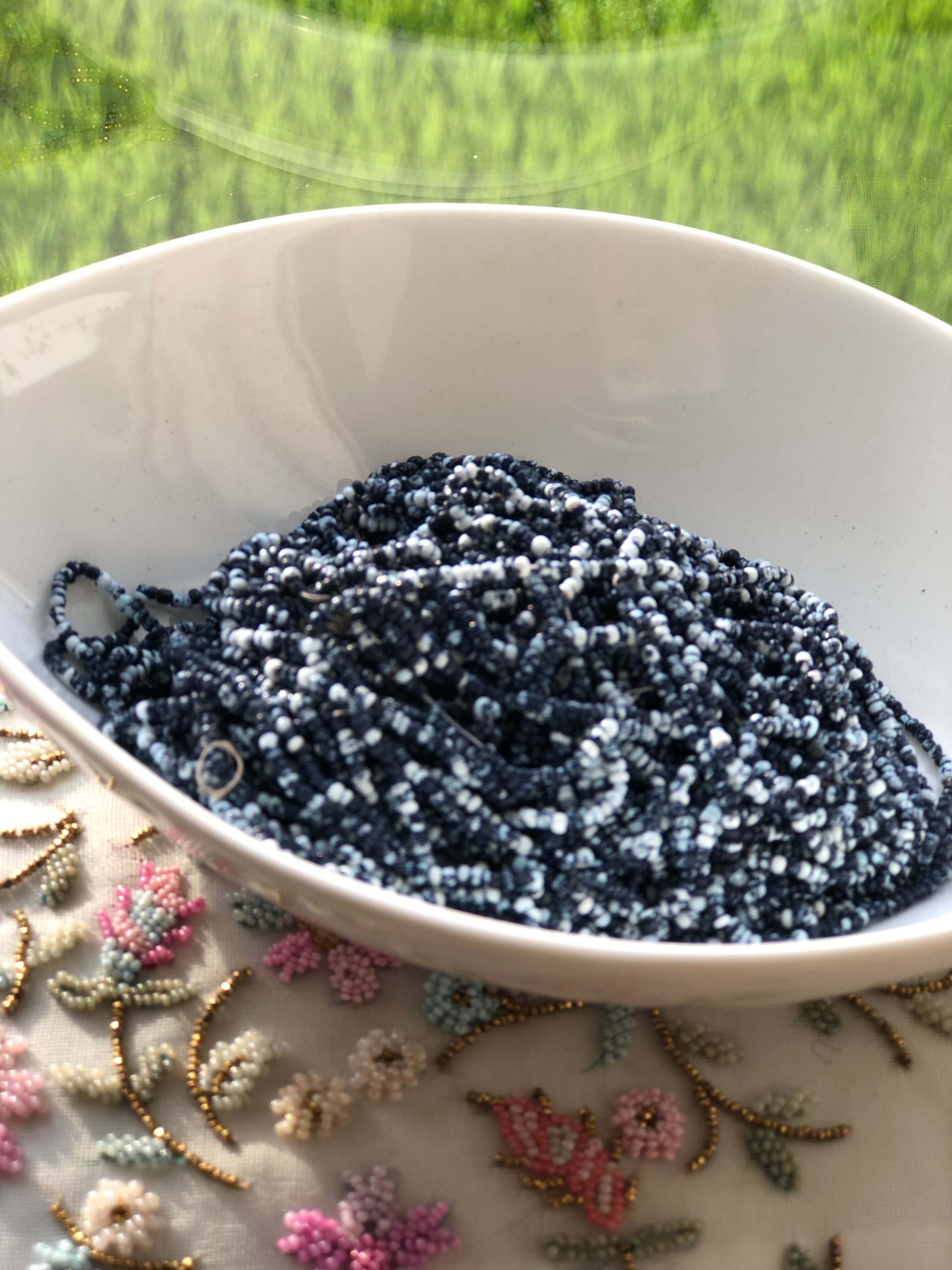 カラー ジーンズのインディゴの様なベースのカラーですが、濃いインディゴ、薄いインディゴ、白っぽい部分など、表情豊かなビーズです】