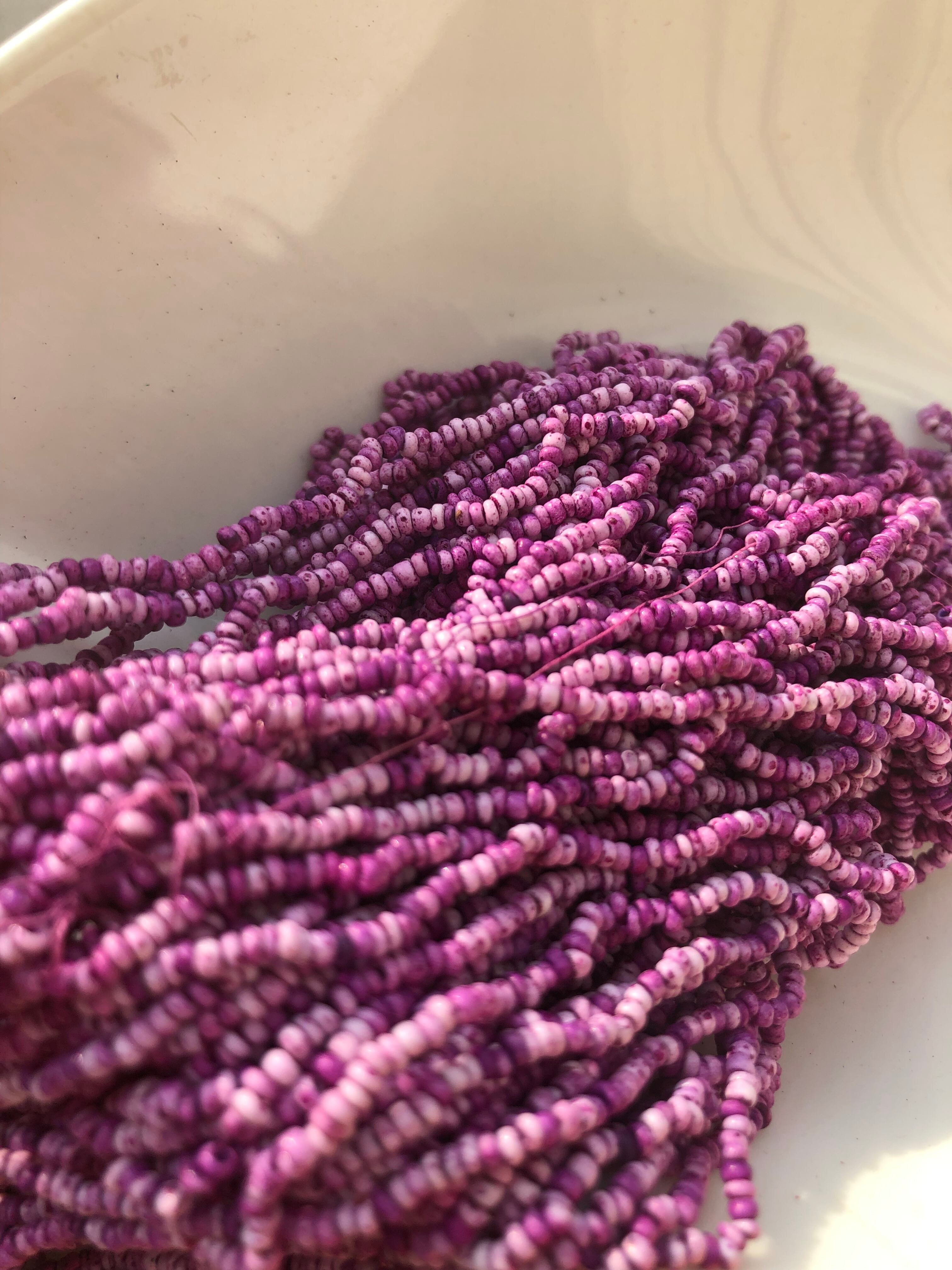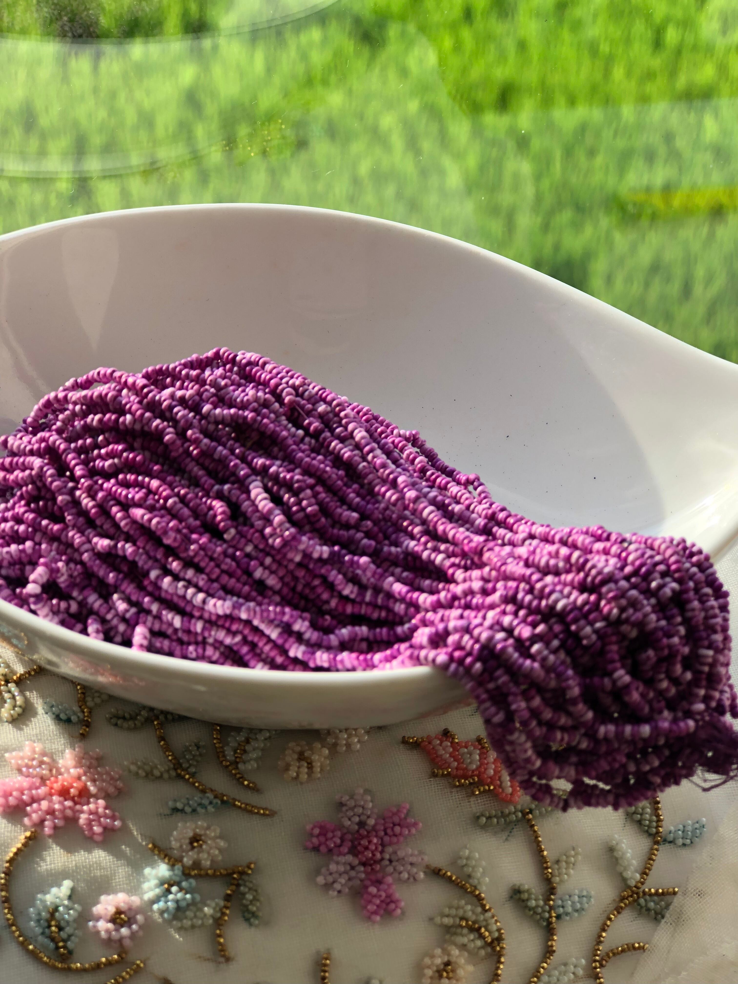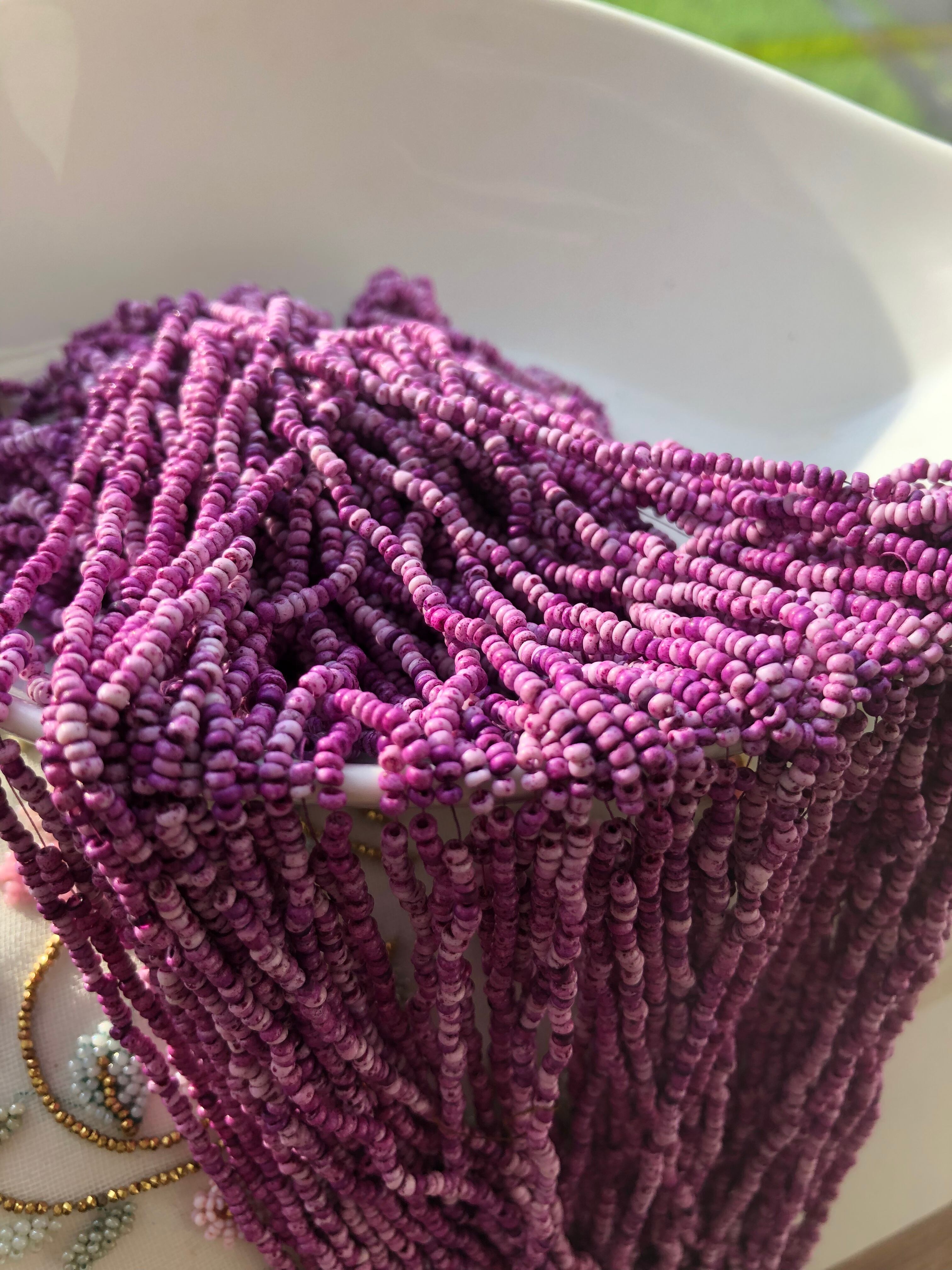 カラー パープルベースのカラーですが、濃いパープル、薄いパープル、白っぽい部分など、表情豊かなビーズです】