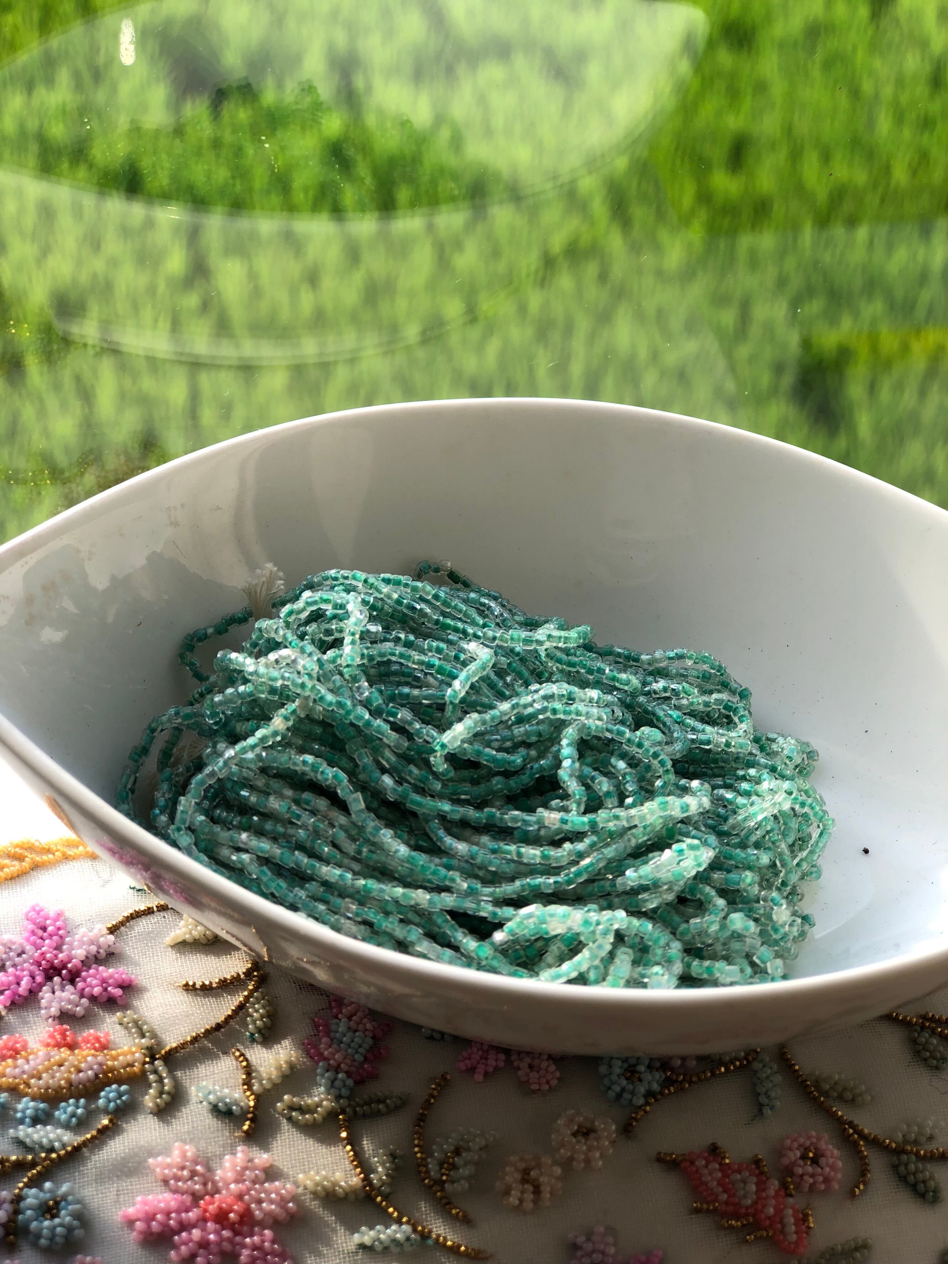 ref : 916 アンティークガラスビース・クリスタルエメラルドマーブル