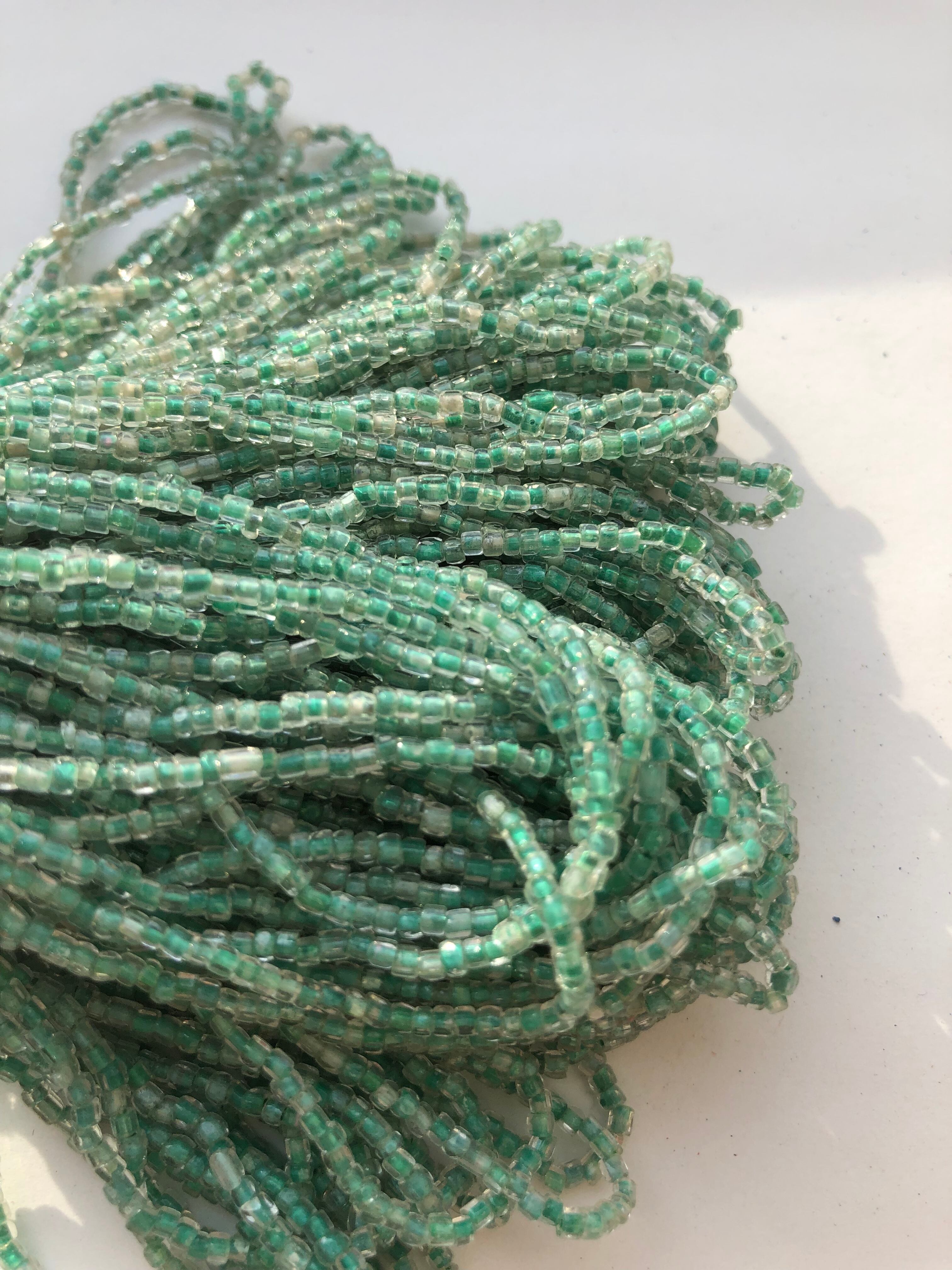 カラー エメラルドグリーンとクリアのマーブル【ゼリーの様に外側は透明で中心がグリーンです。濃いグリーン、薄いグリーン、のミックスになっており、表情豊かなビーズです】