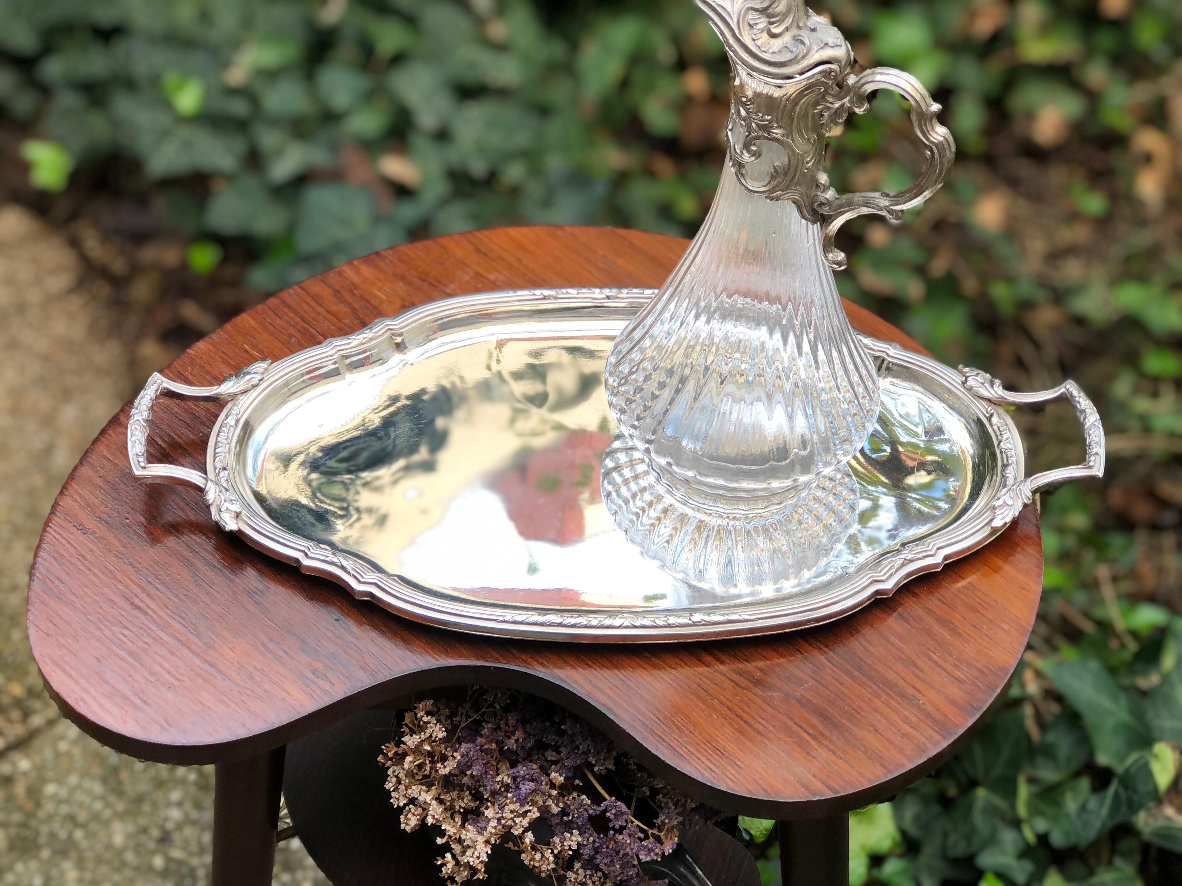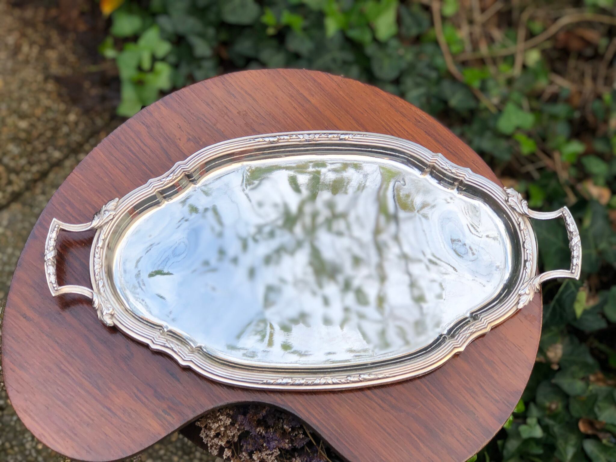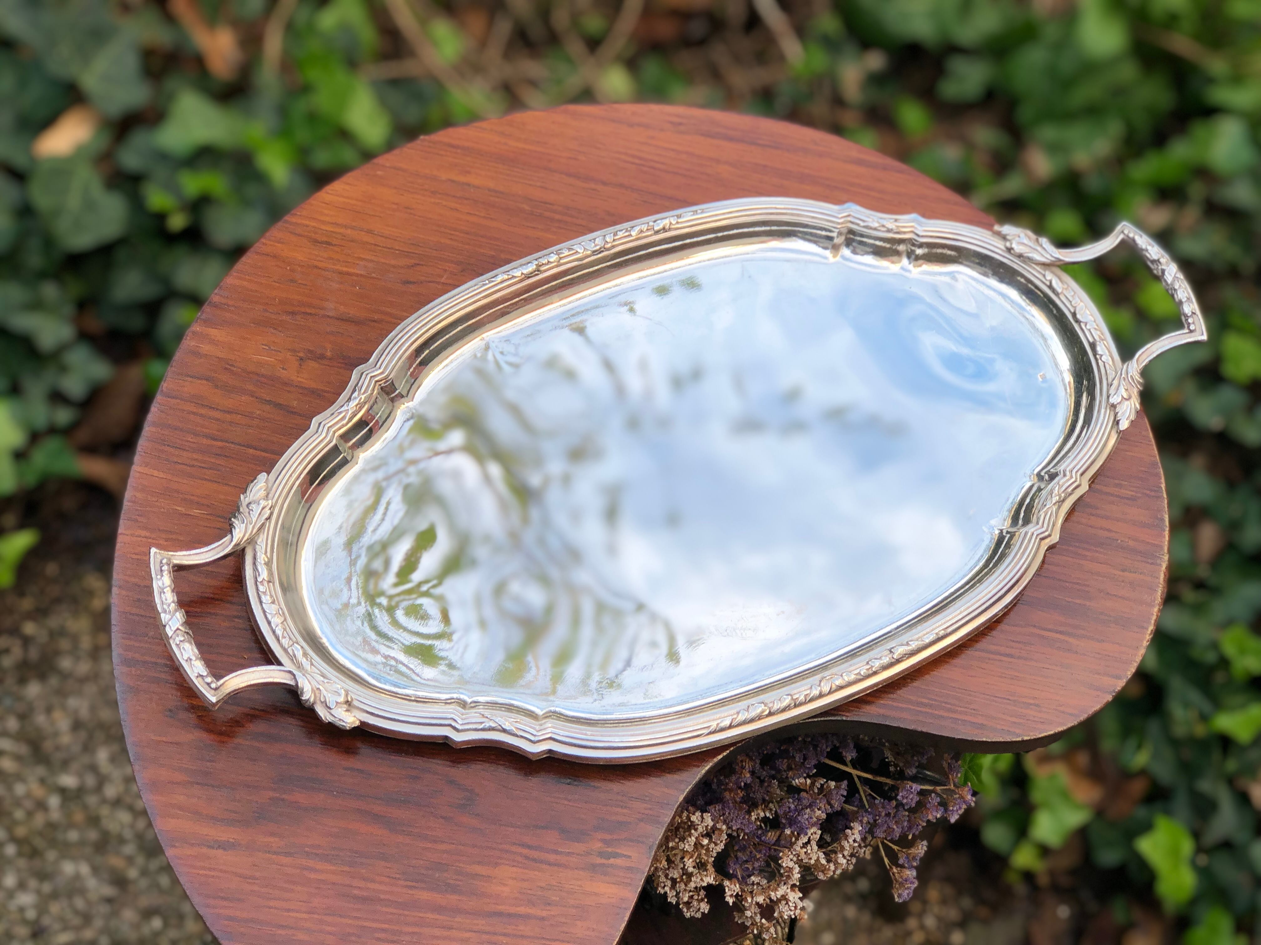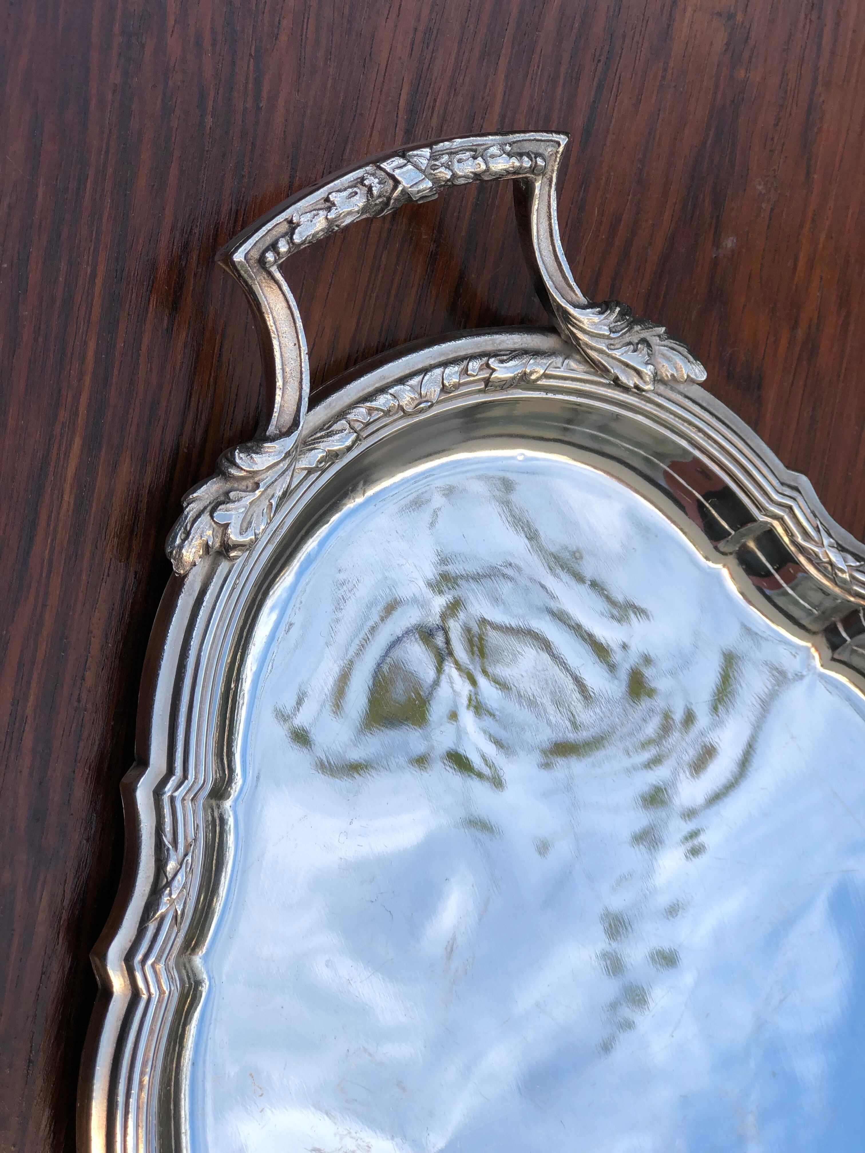 サイドの持ち手のリーフ装飾の素晴らしいシルバーのプレートです。