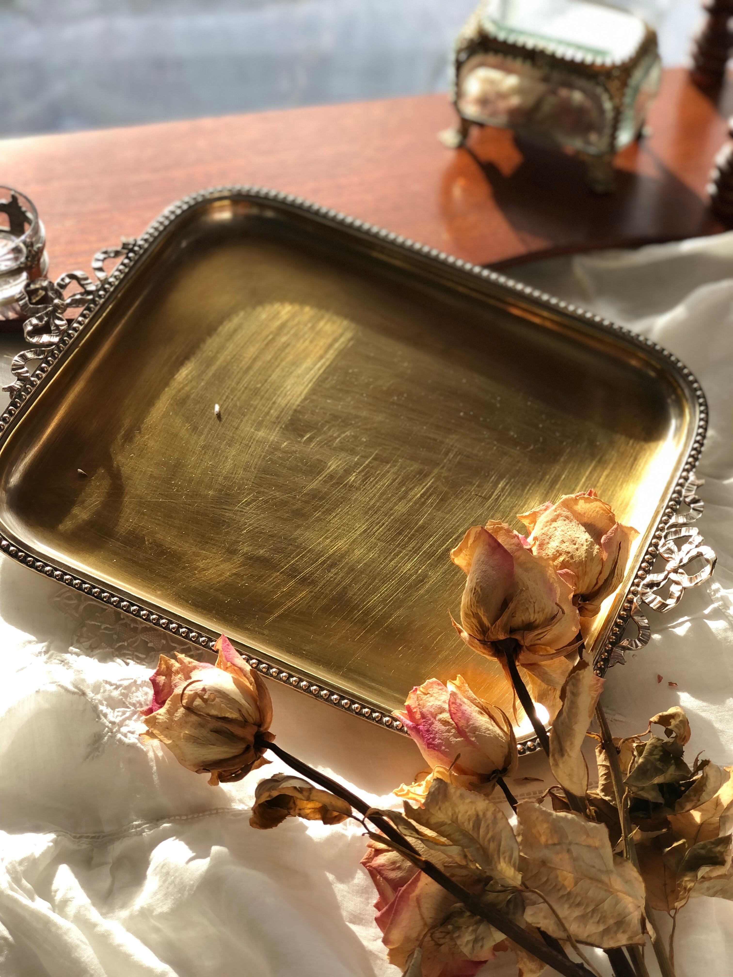 ref : 1067 アンティークプレート ・リボンガーランドゴールド