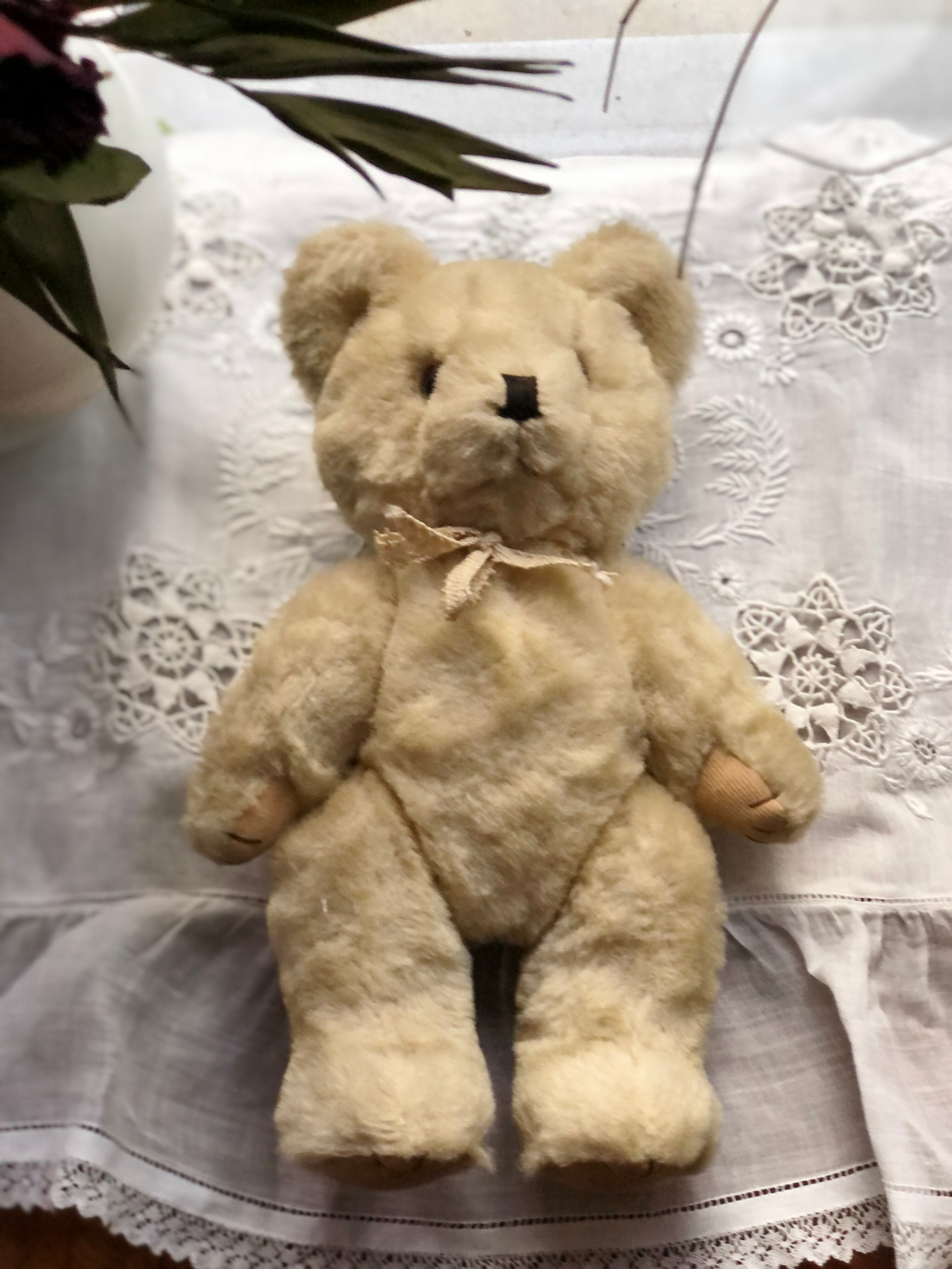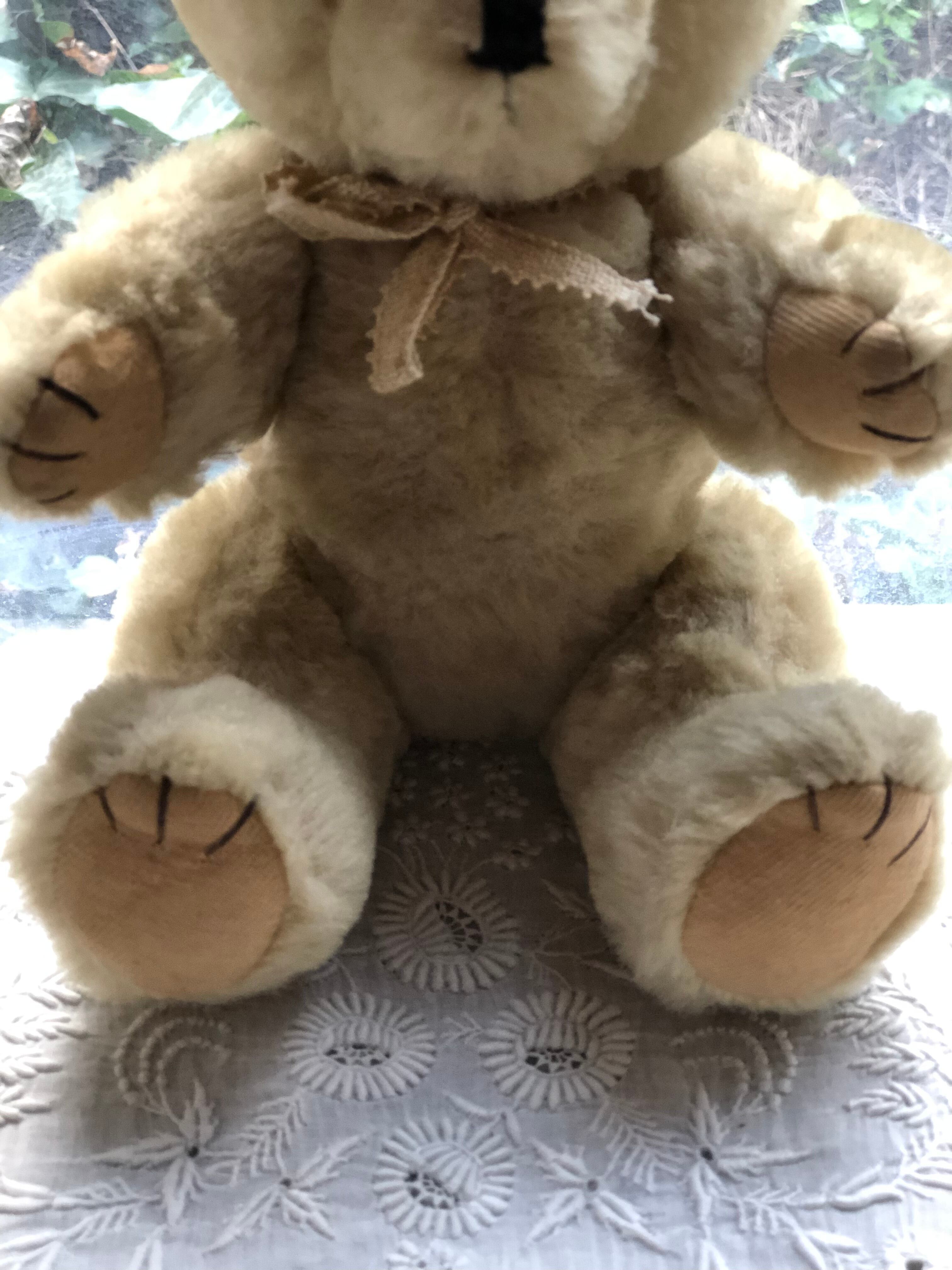 アンティークベアーの特長である硬いボディーで、目は