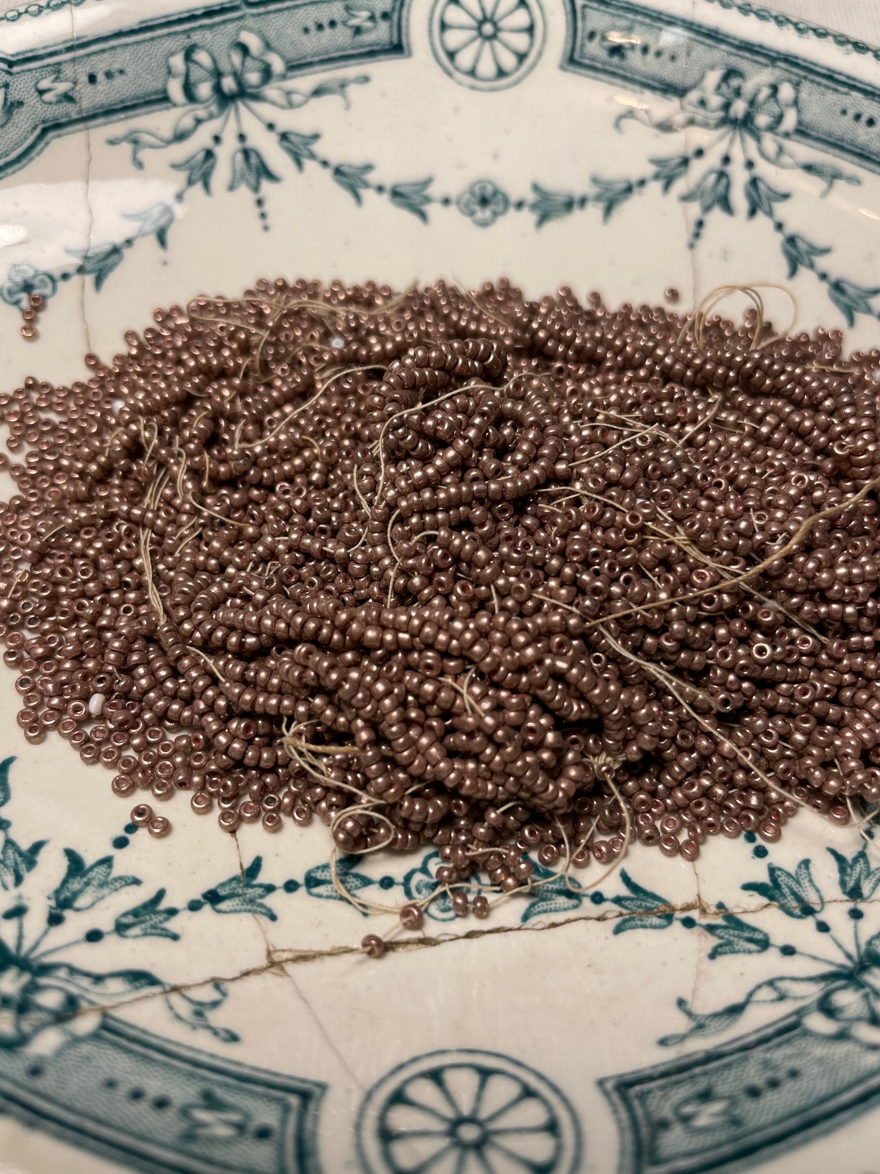 ref : 1217 アンティークガラスビース・メタリックピンクゴールド