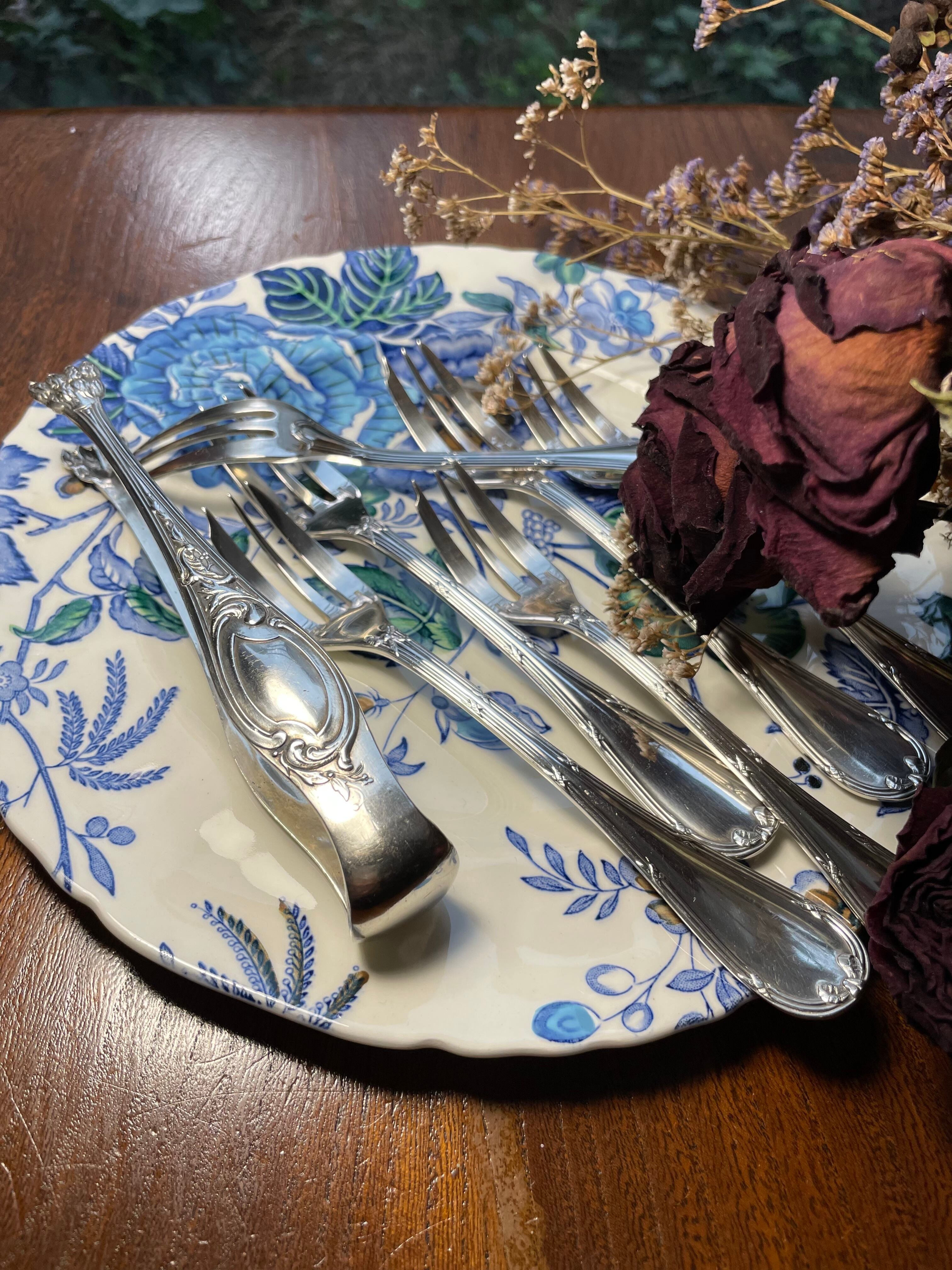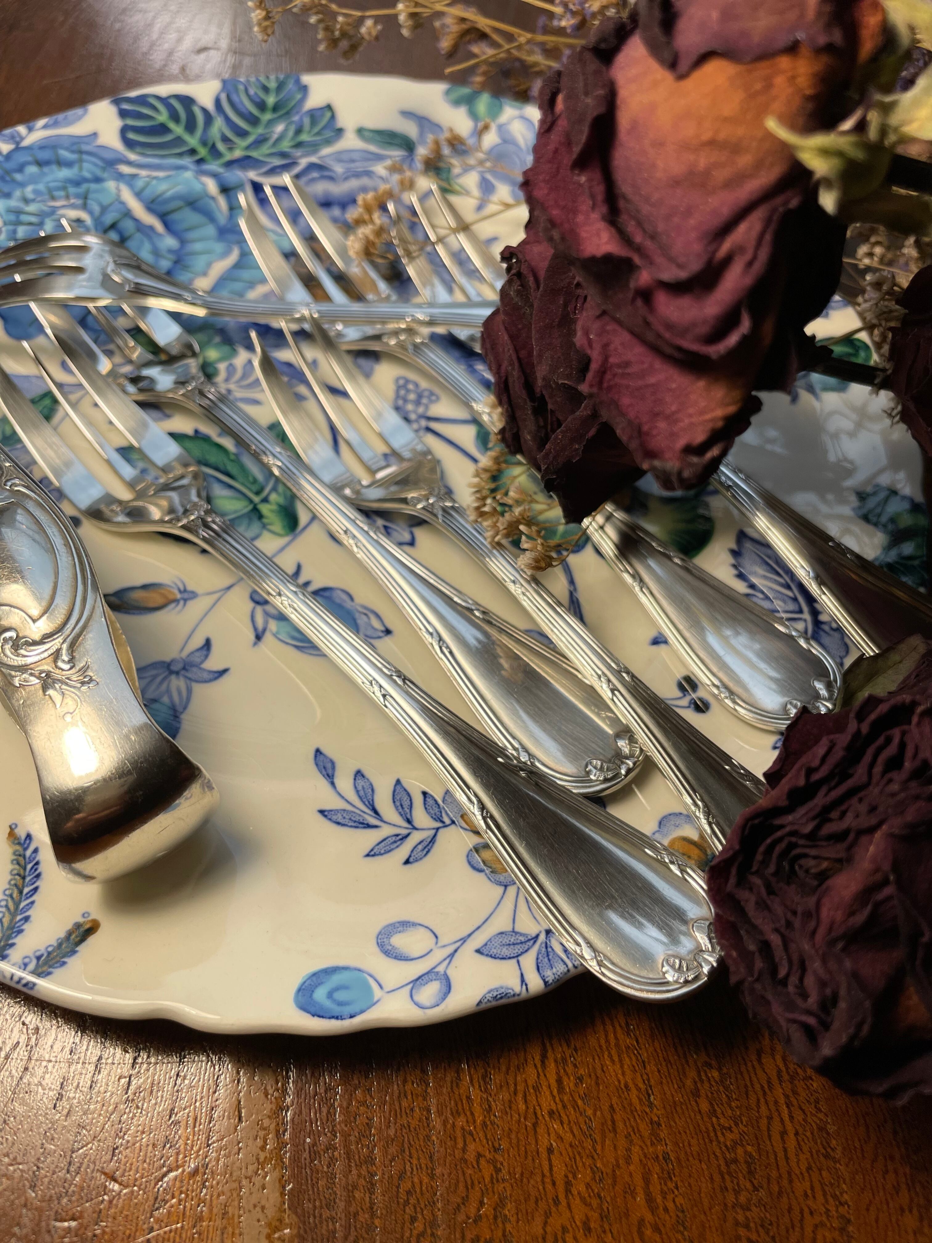 古いカトラリーですが、使用感もキズもほとんどありません。あまり使用されずに眠っていたものと思われます。入念に磨き上げました。シルバープレートの摩滅なども見られません。