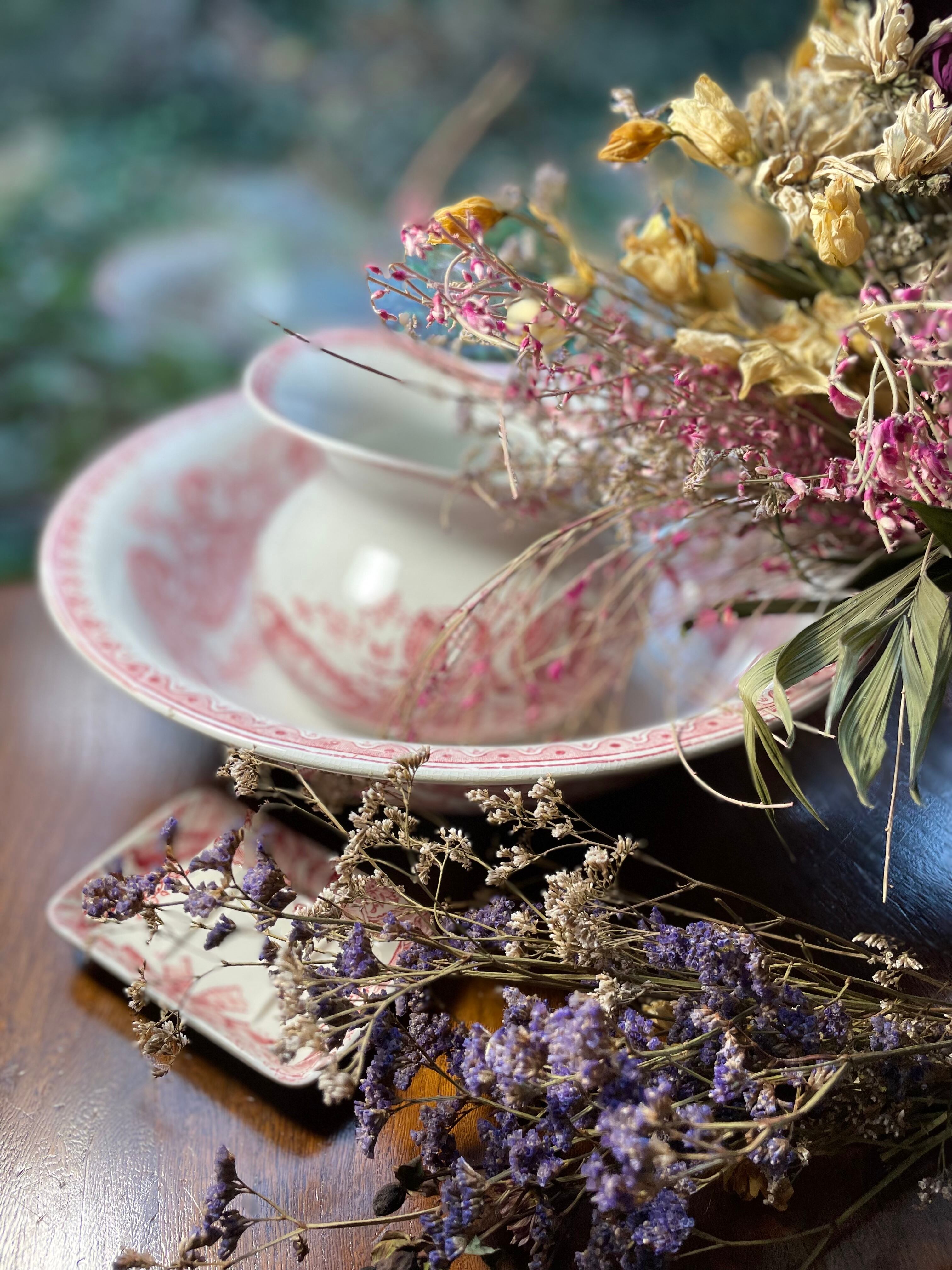 ベイスンには、内側にも外側にもリボンが描かれており、