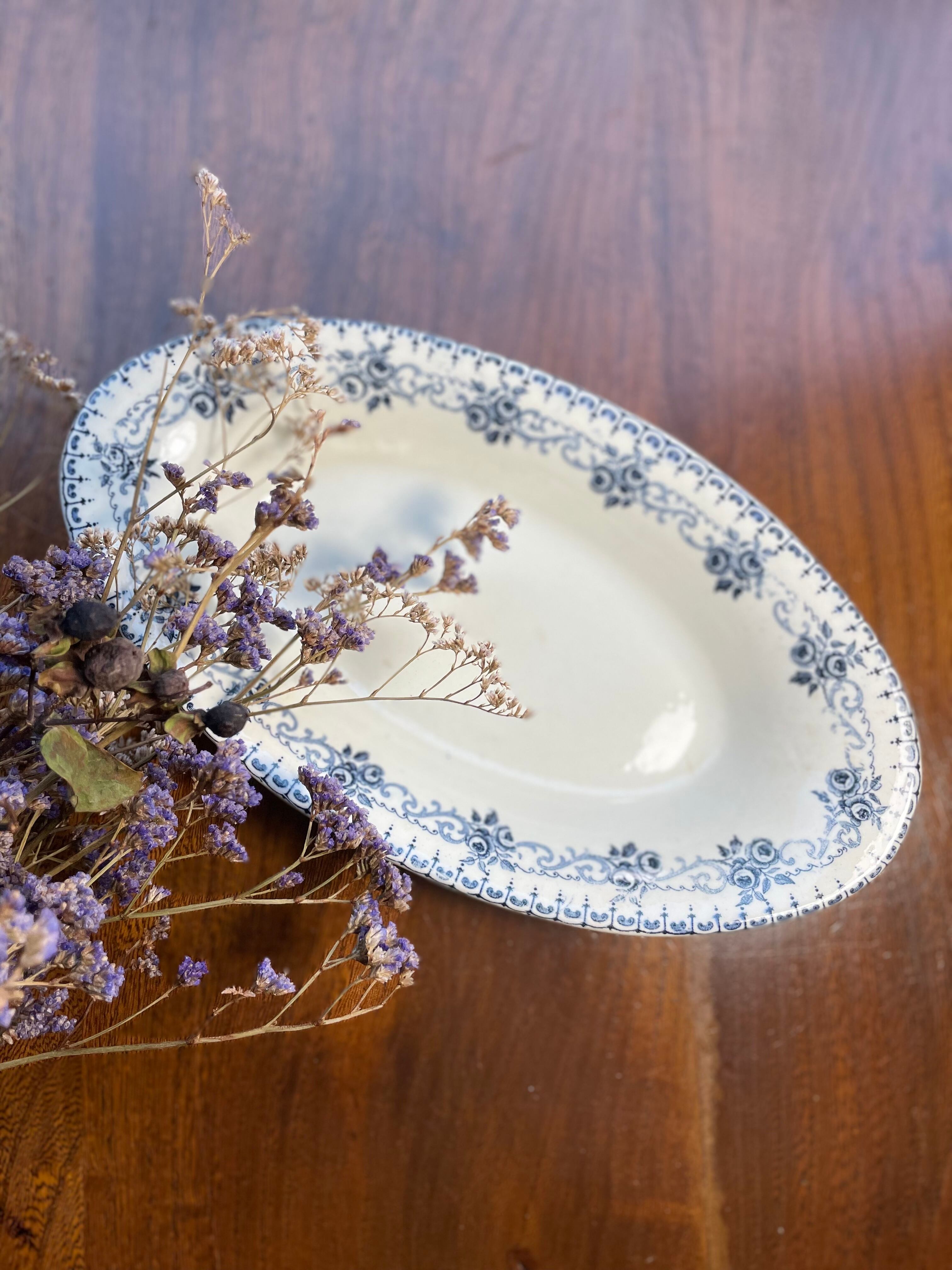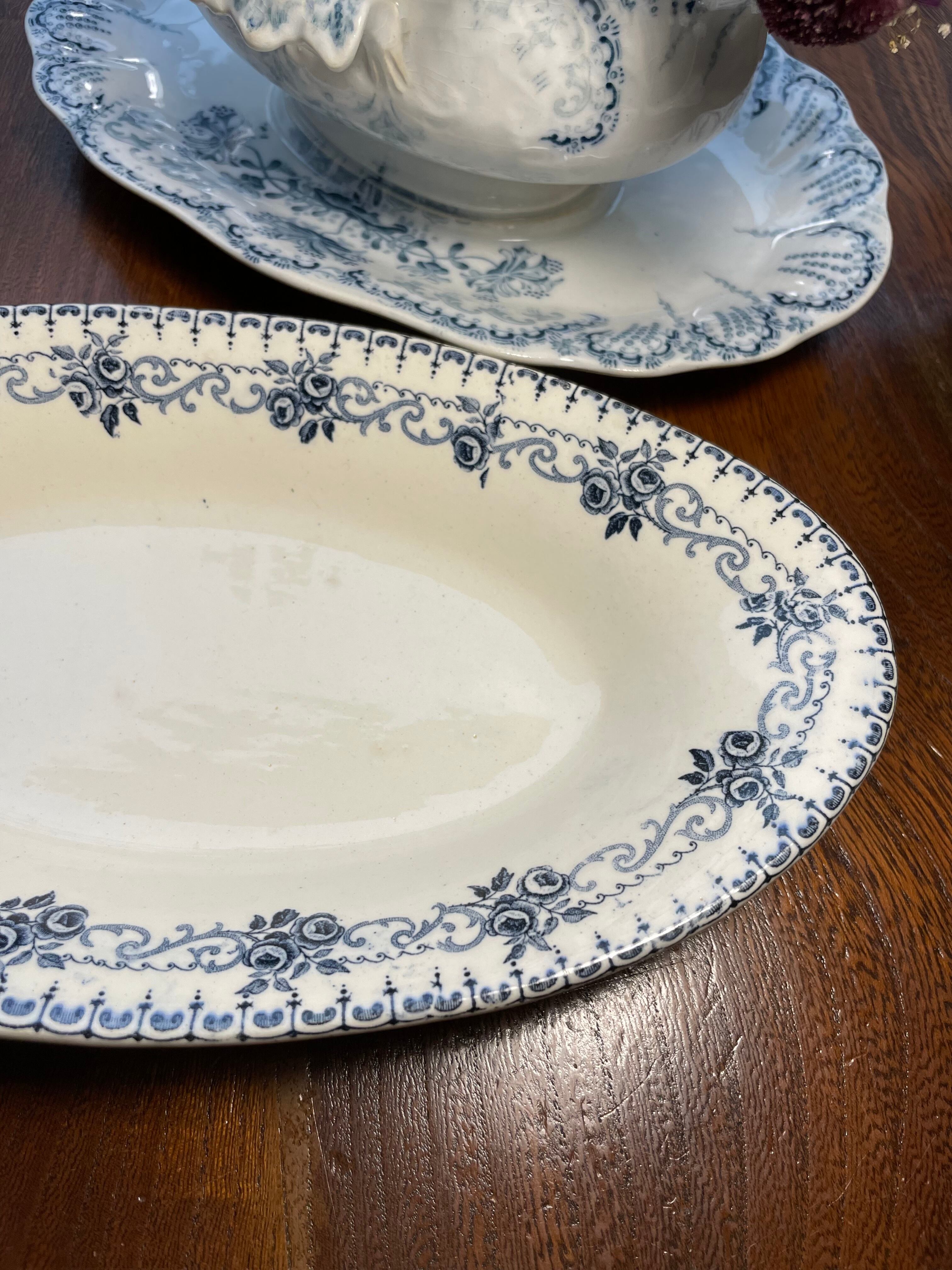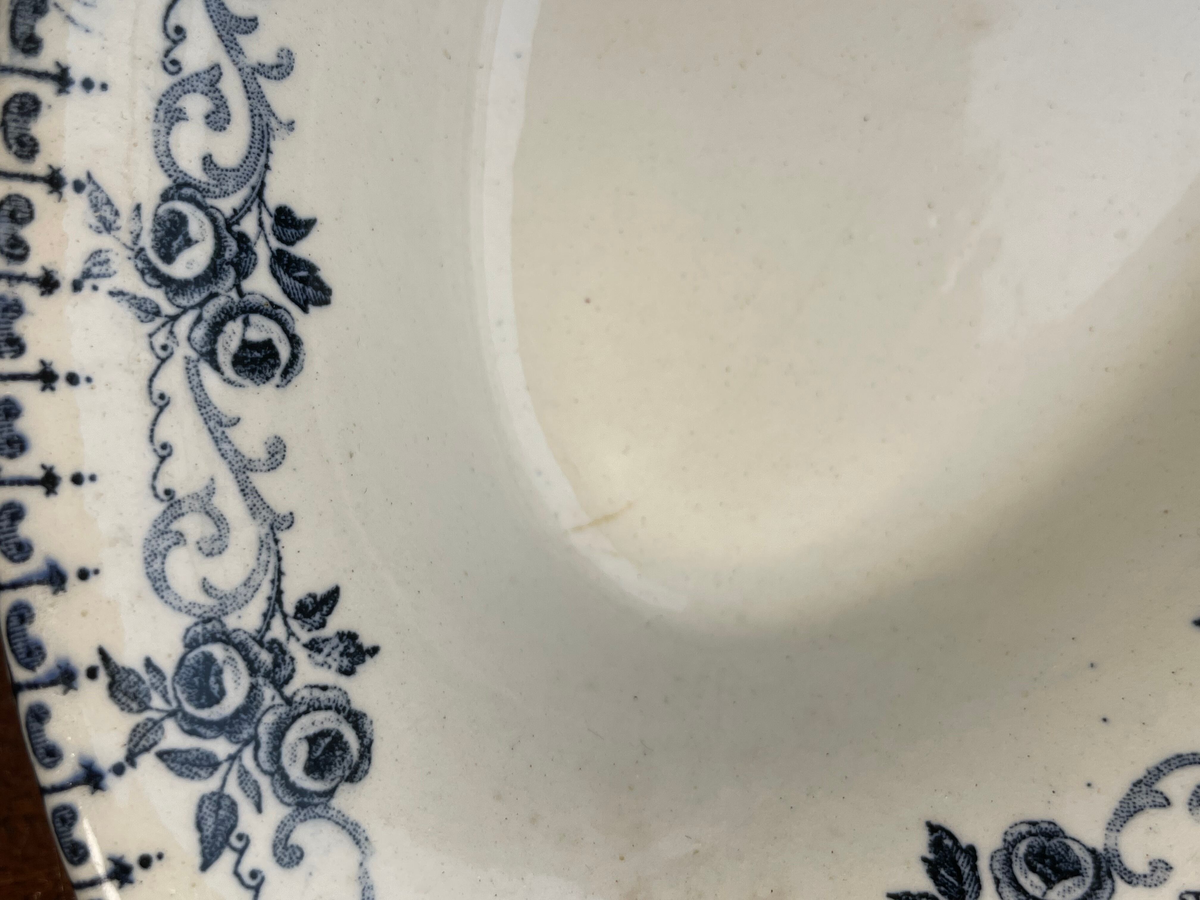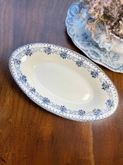 小さなバラの模様が藍色で描かれた美しい作品です。