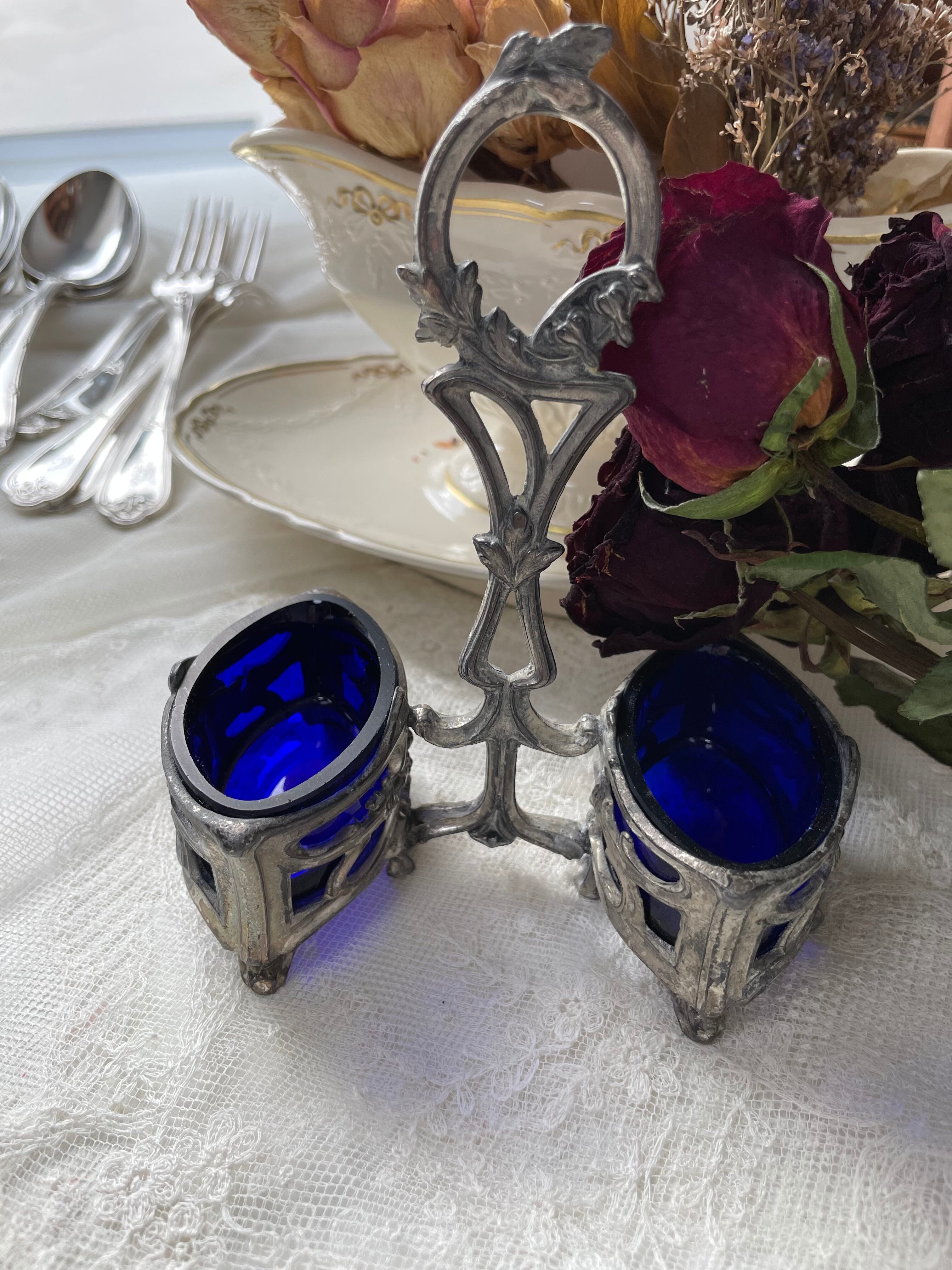 ref : 1435 アンティーク・ブルーガラスのソルト&ペッパーセット