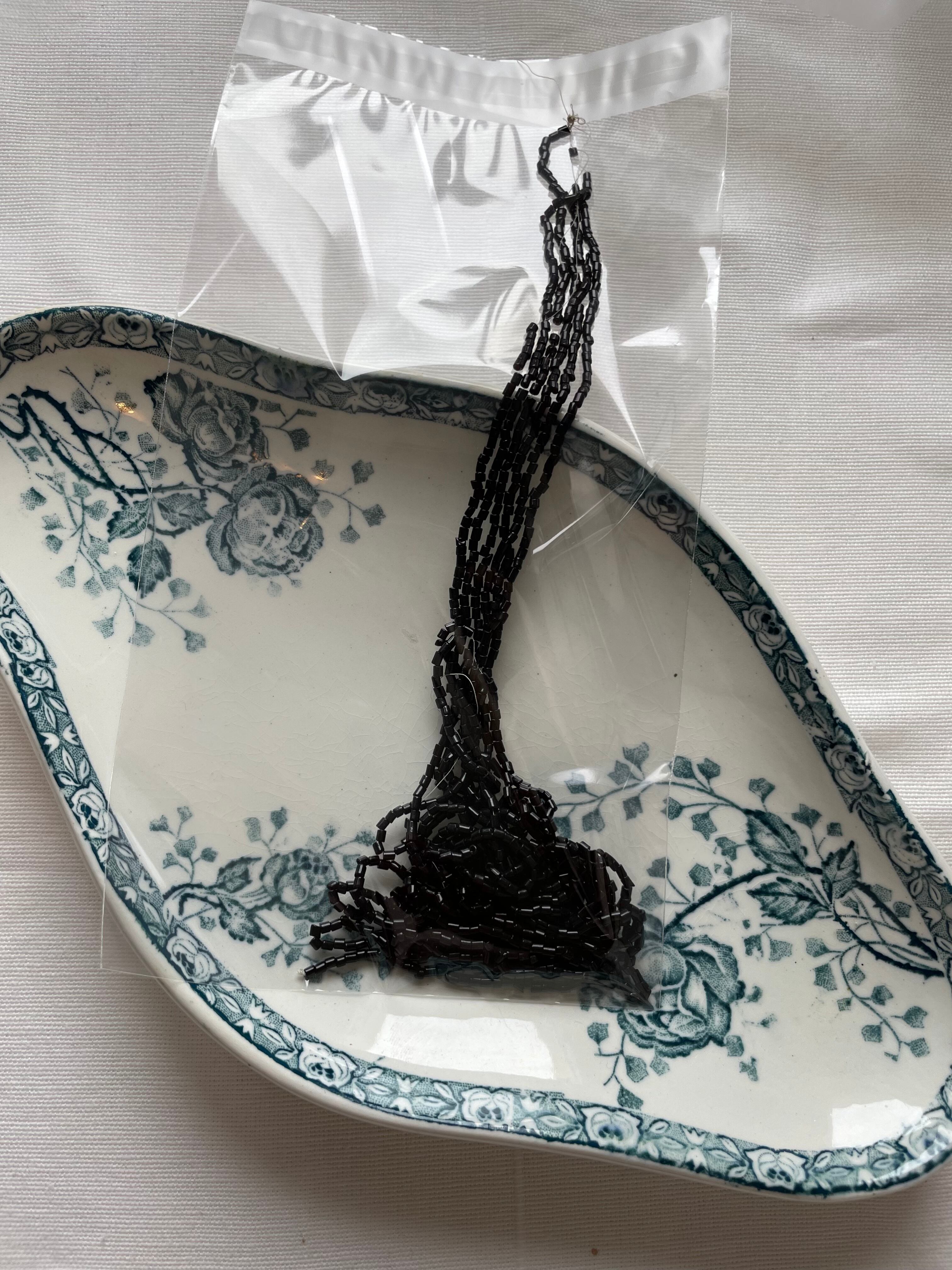 このコレクターさんは、当時、そのルサージュ刺繍の先生からアンティークビーズを購入されて、一部を、数十年間、そのまま持っていたとの事です。