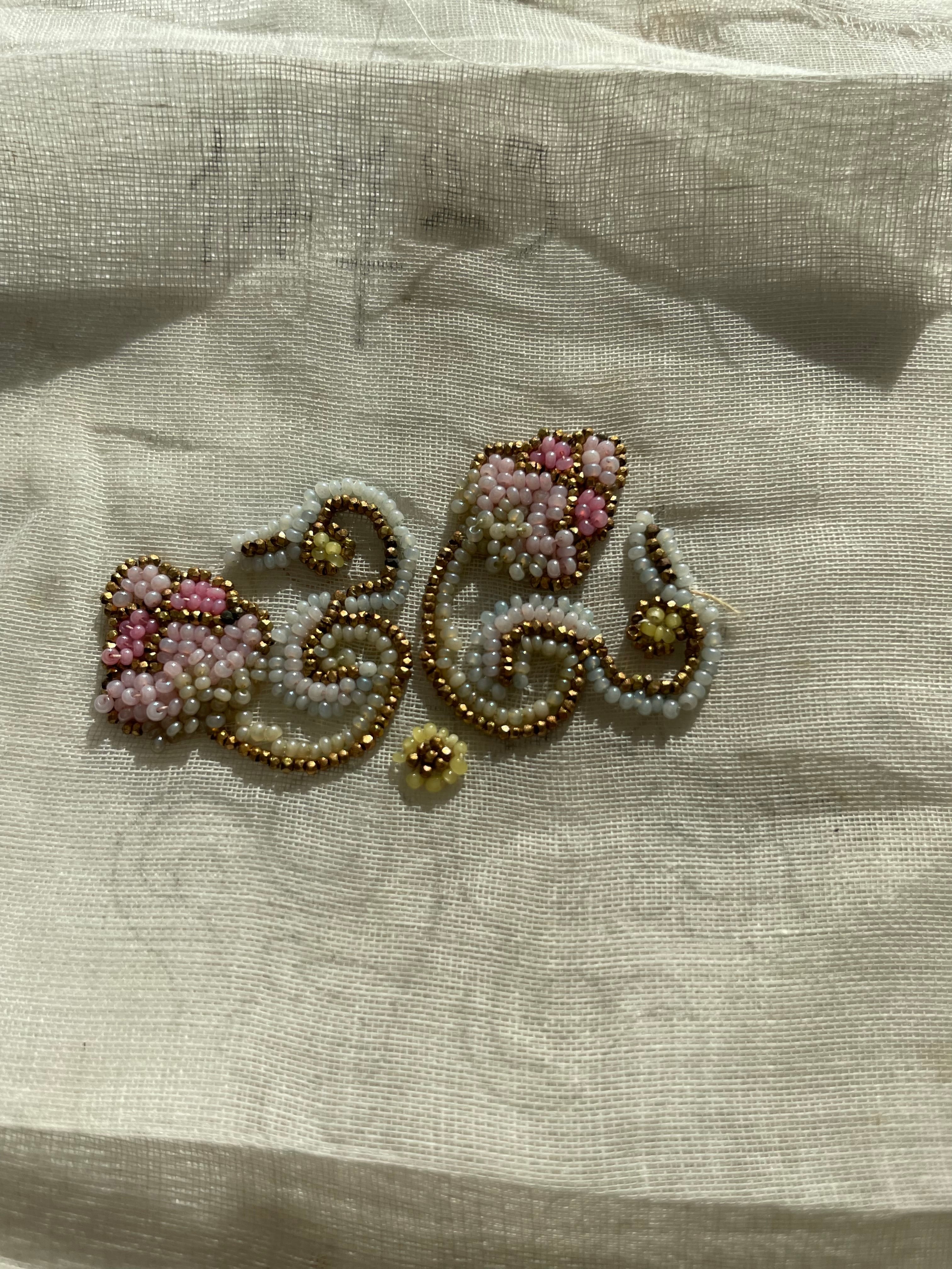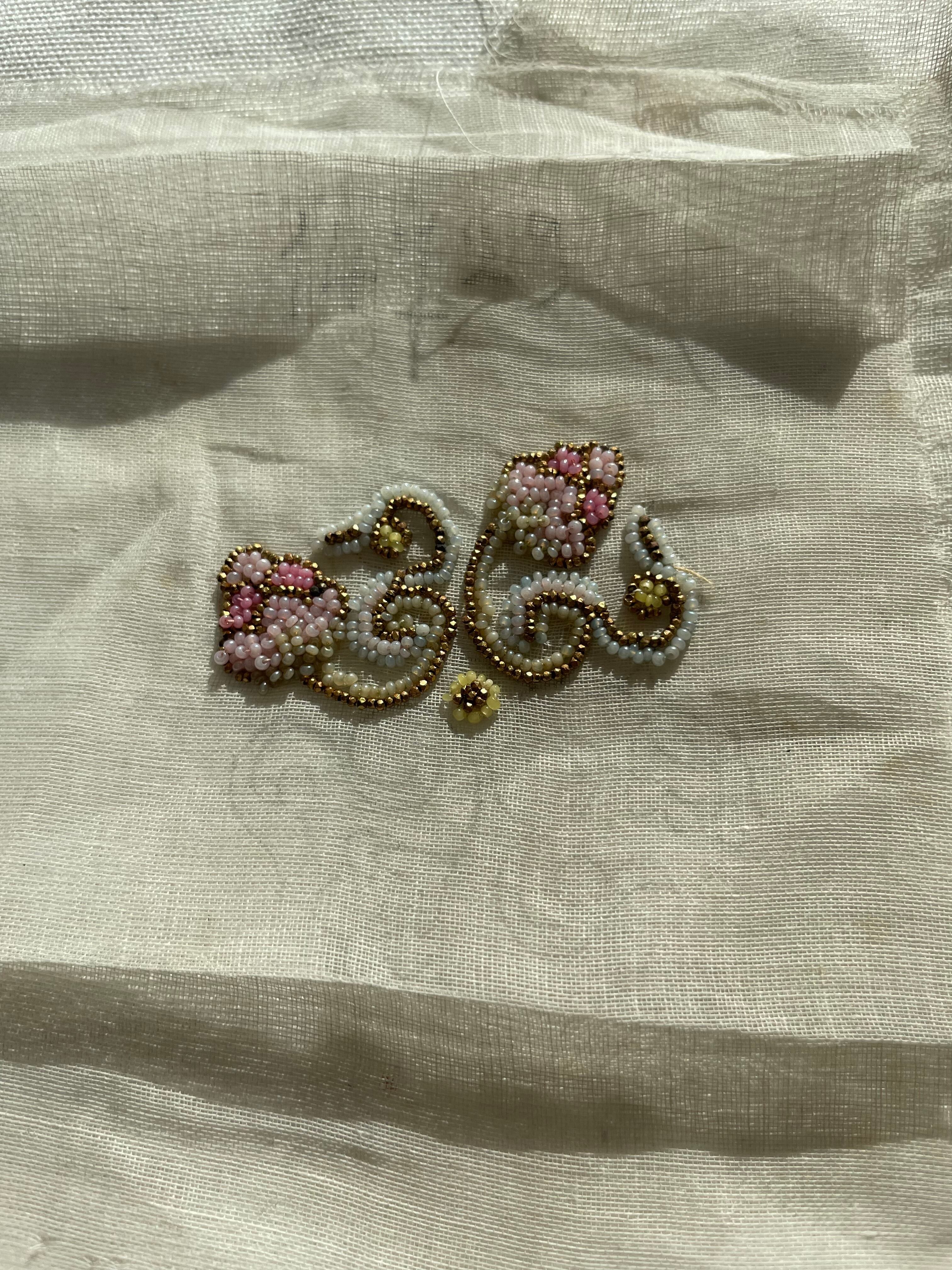 ref : 1457 アンティークメタルビーズ&ガラスビーズの刺繍サンプルセット