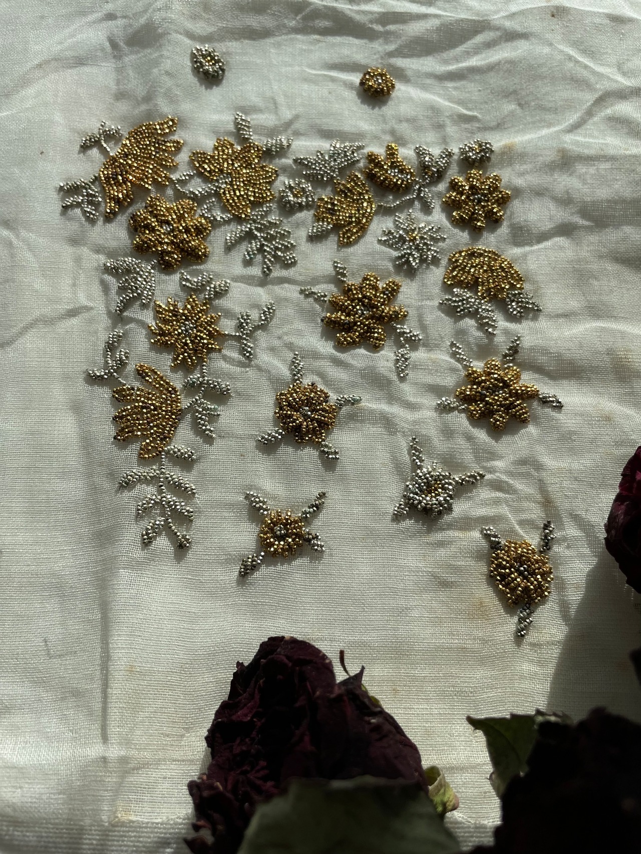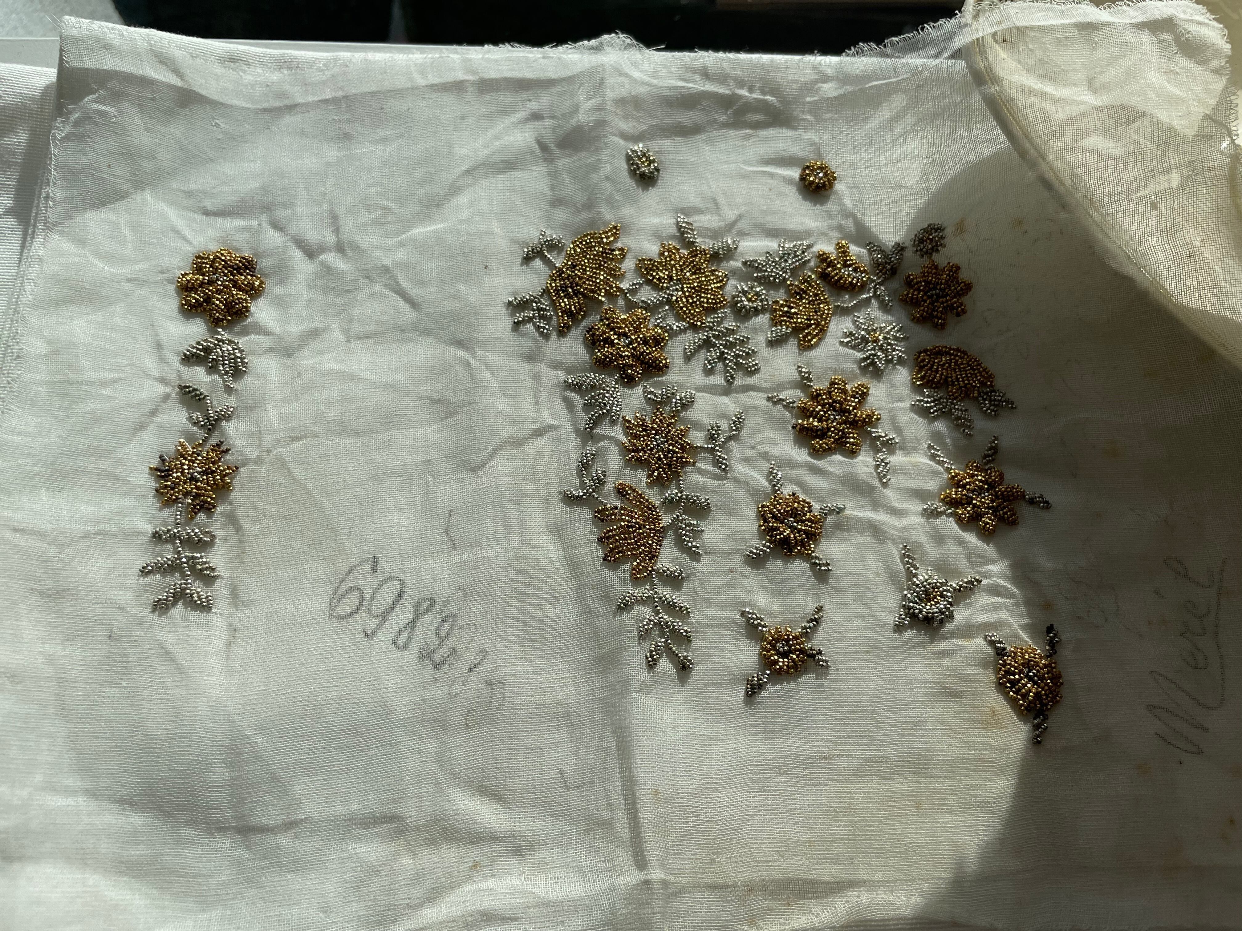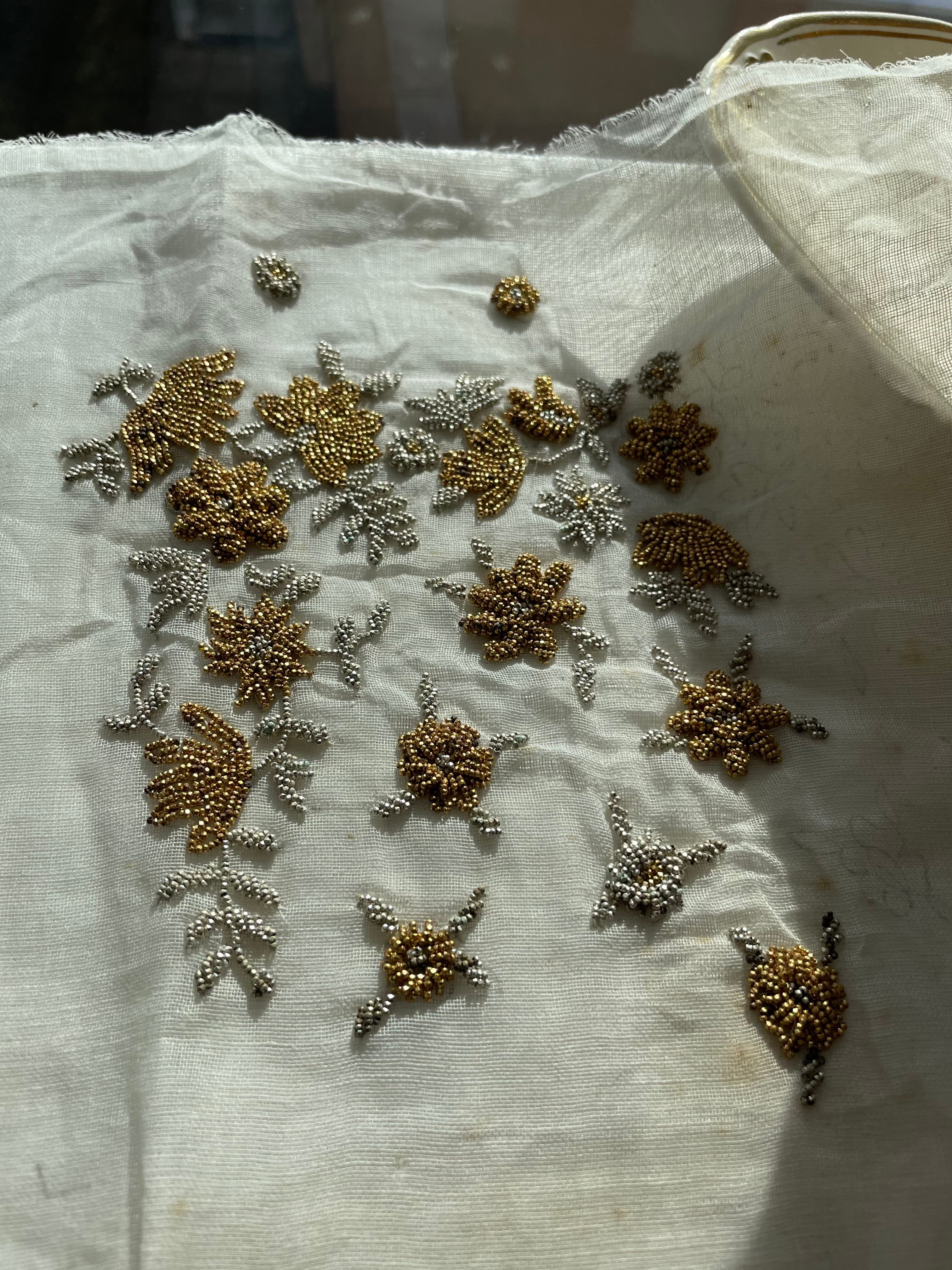 ref : 970 アンティークマイクロメタルビーズ刺繍サンプル