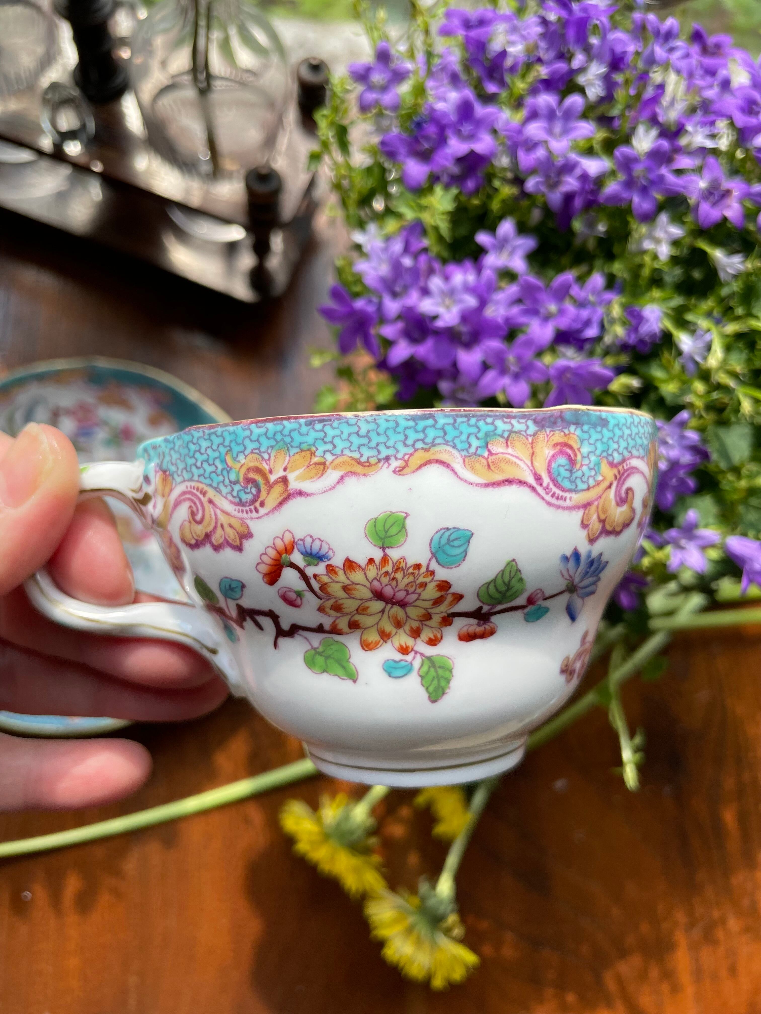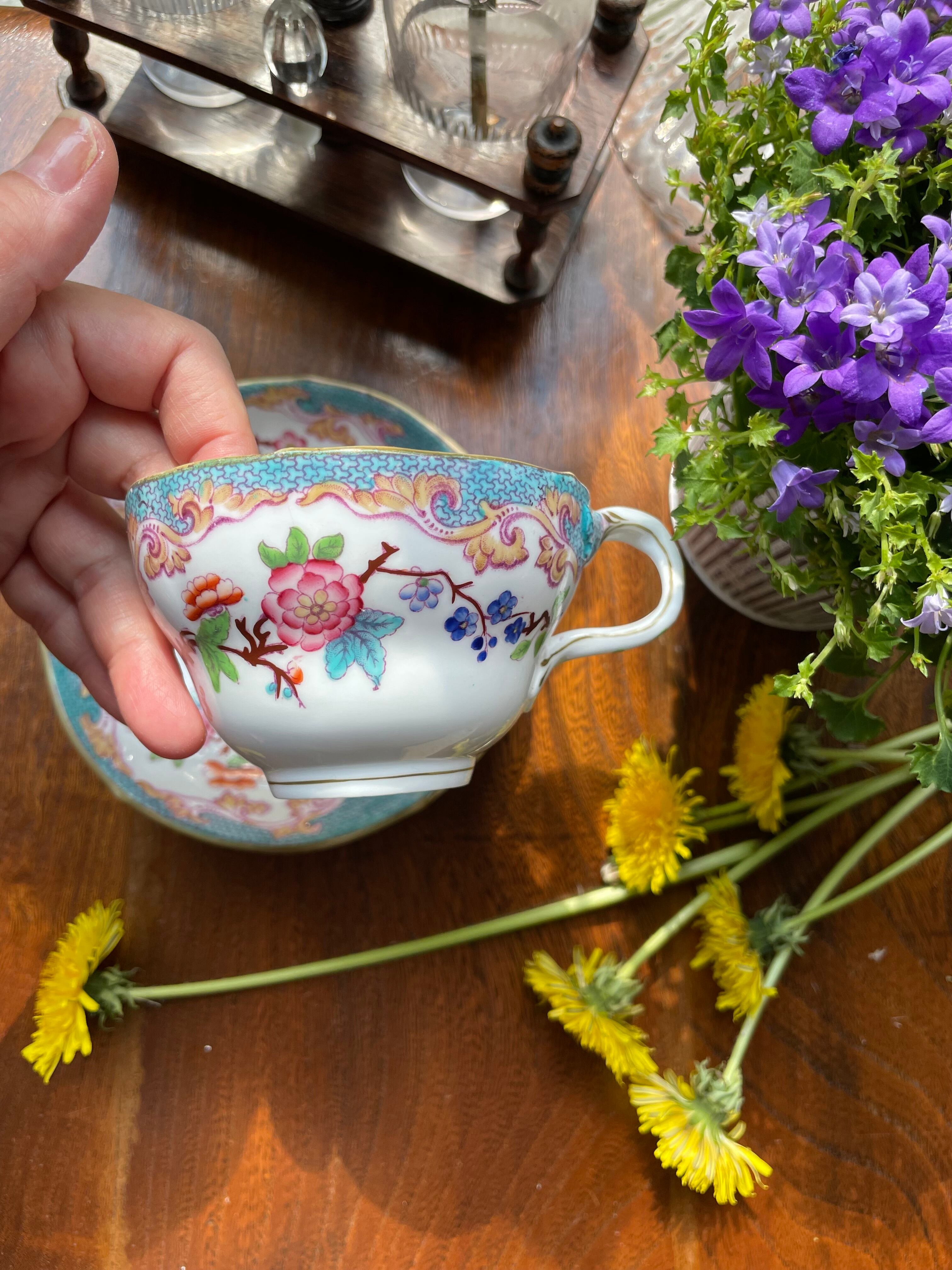 ref : 1482 アンティークティーカップ ・Minton & Hollins - English Porcelain - N° 3908・水色