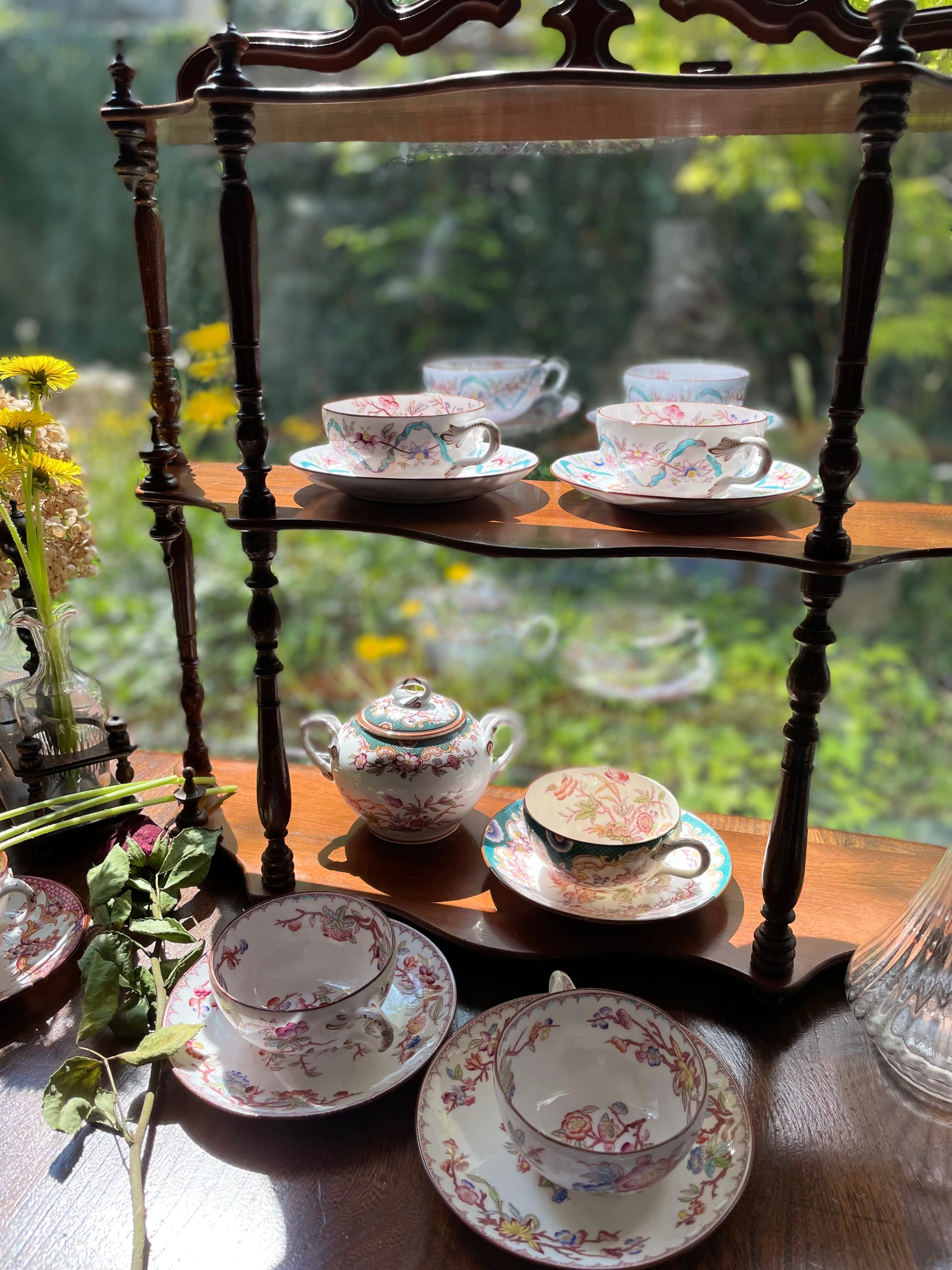 サルグミン製陶所による "ミントン "柄の美しい手描きのファイアンス製ティーカップです。