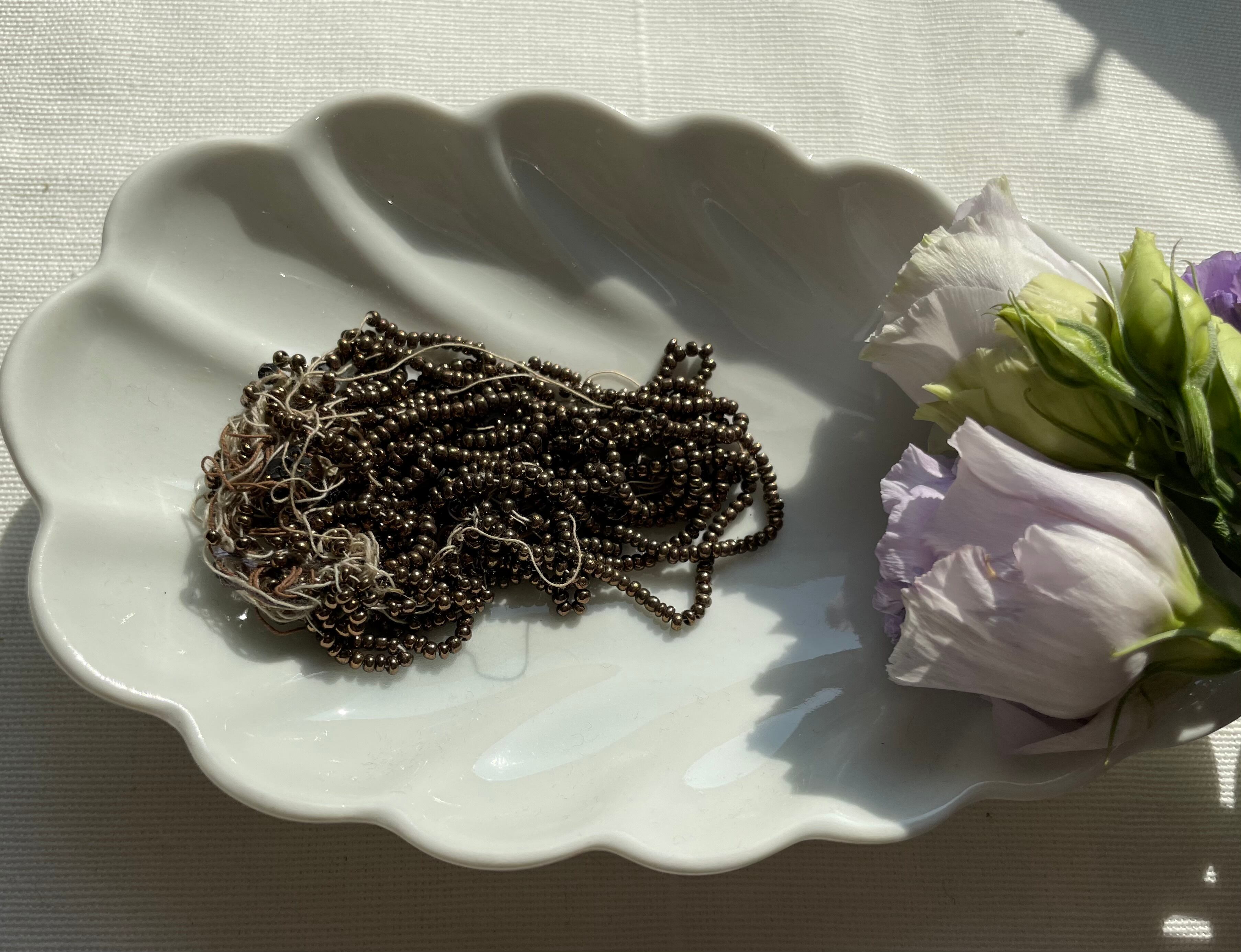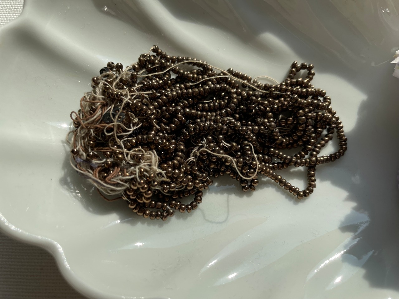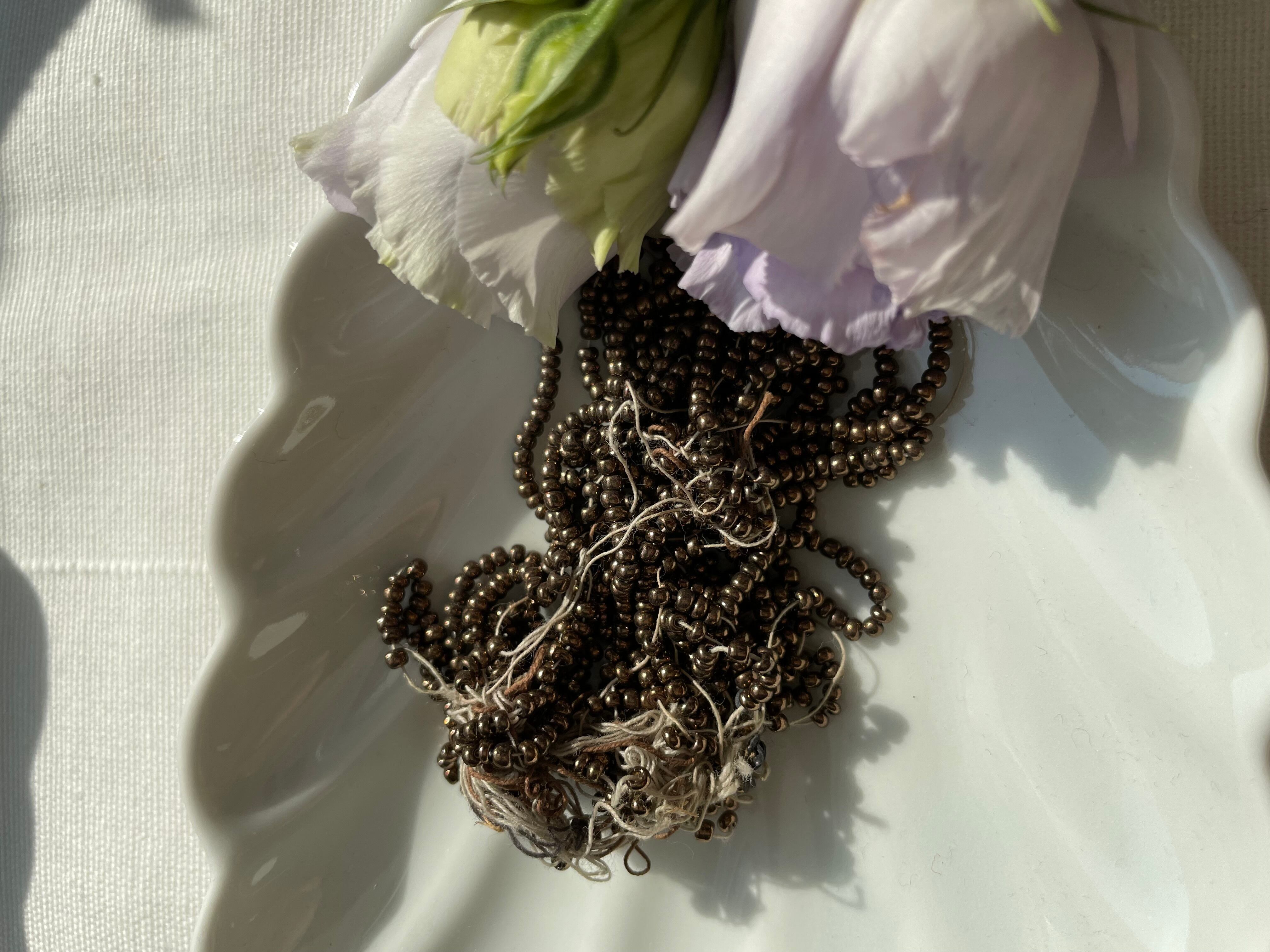 当時の刺繍のアトリエから、アンティークビーズを発見することが稀にあります。