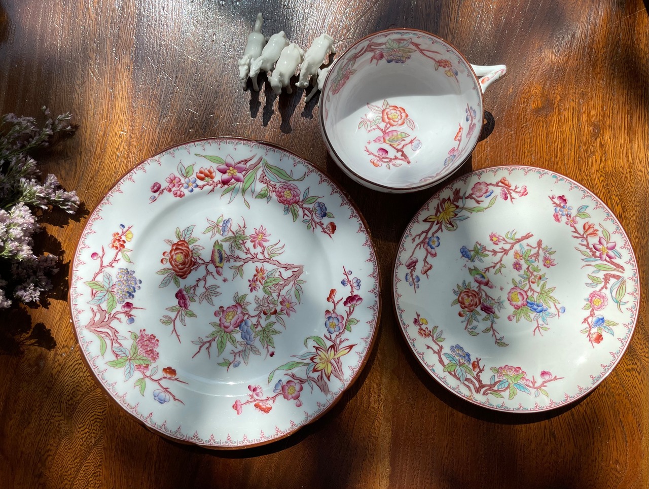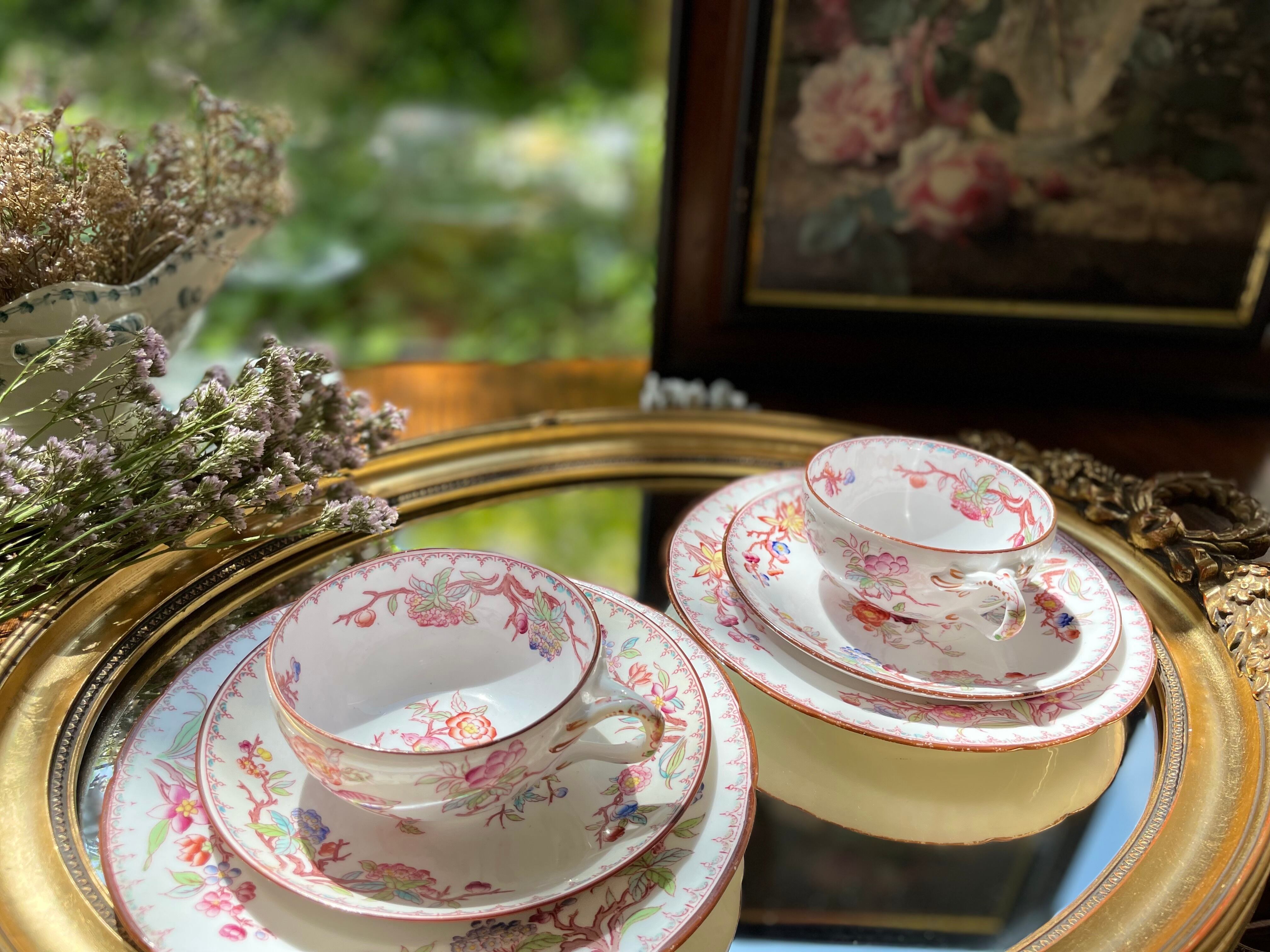ref : 1528 アンティークティーカップトリオ ・Sarreguemine 252/ Minton ・白B
