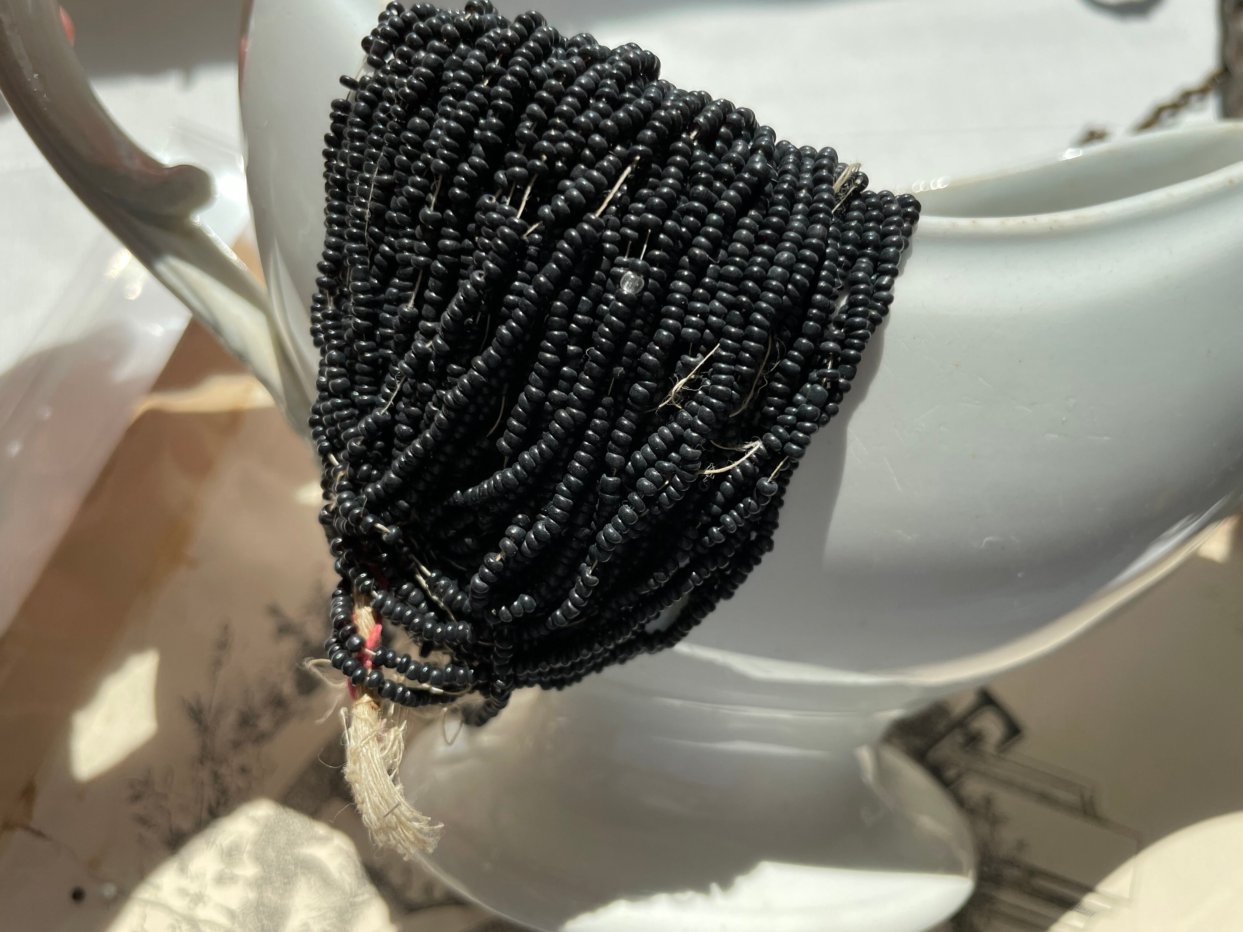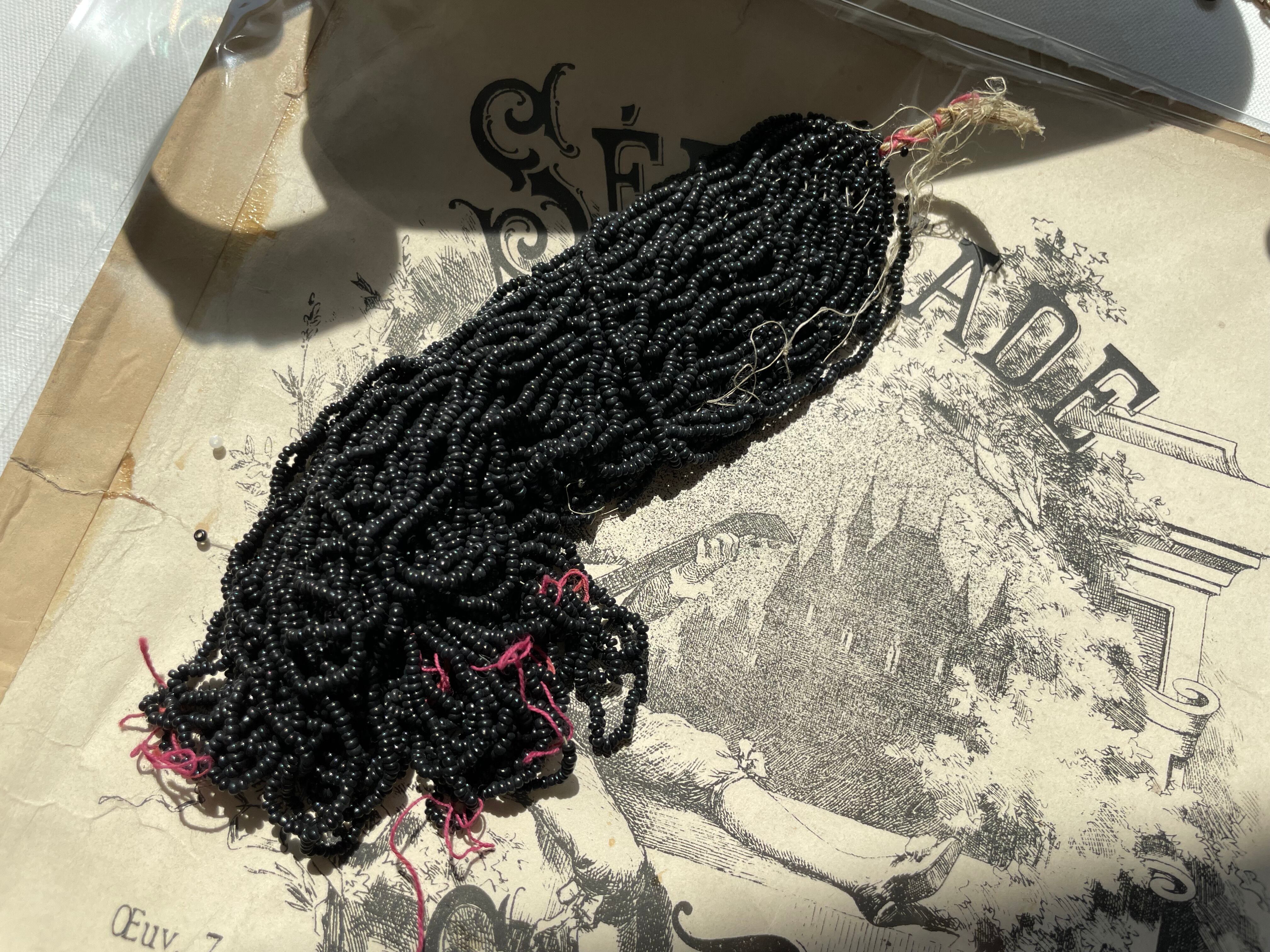 詳細は不明。。。とのことですが、質感やビーズに通してある糸の感じからすると、いつも見ているアンティークビーズ1900年代初期のものと思われます。