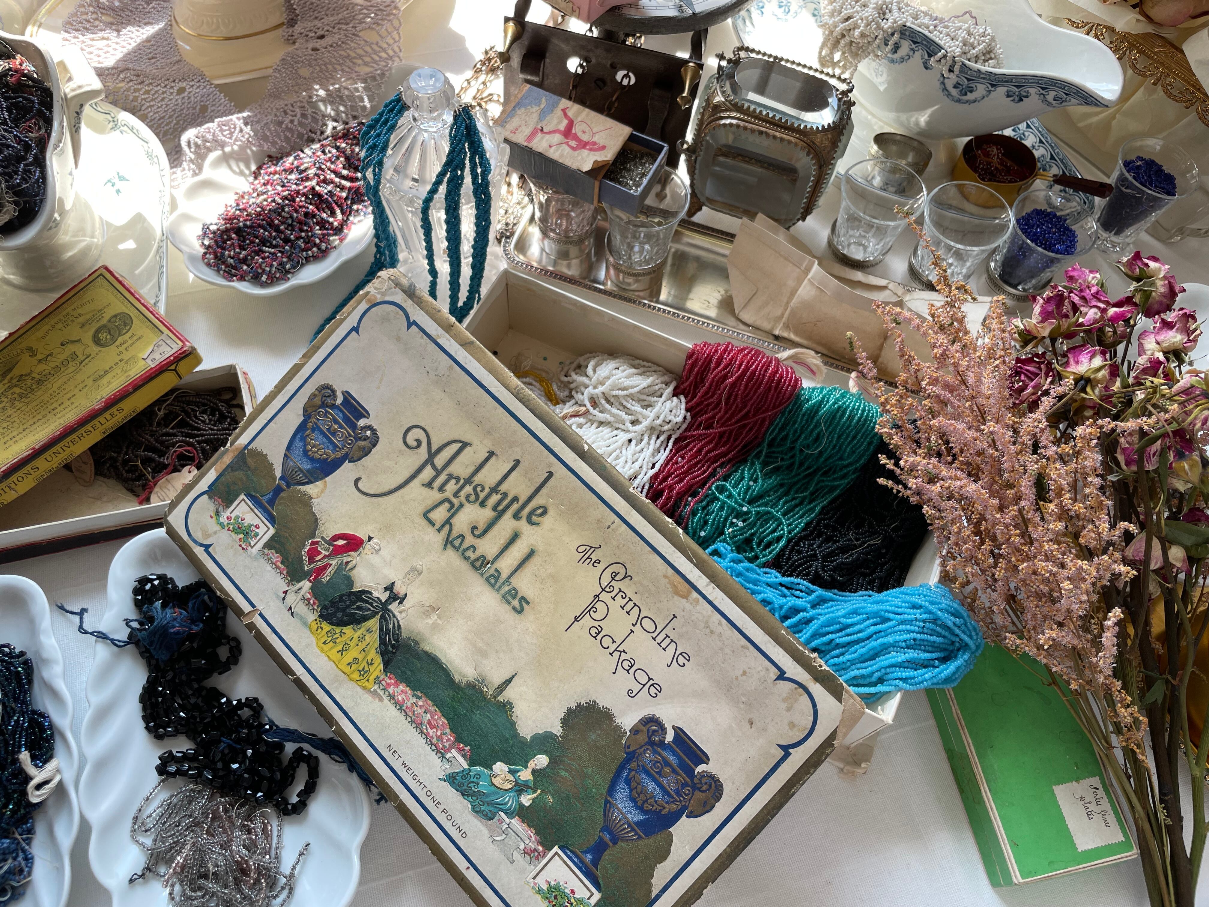 チョコレート箱に入っていたビーズが、アメリカの古いお屋敷から