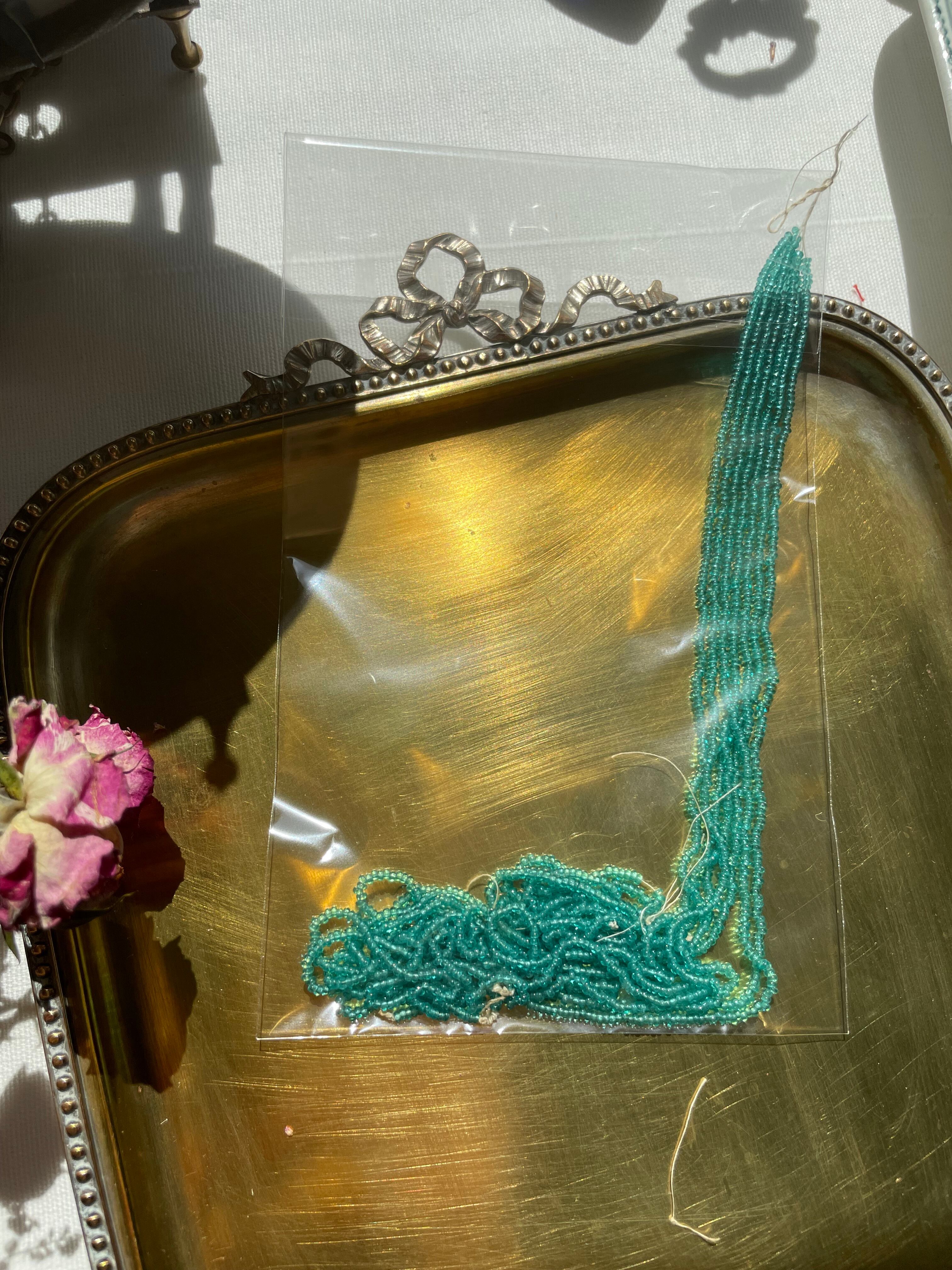 詳細は不明。。。とのことですが、質感やビーズに通してある糸の感じからすると、いつも見ているアンティークビーズ1900年代初期のものと思われます。