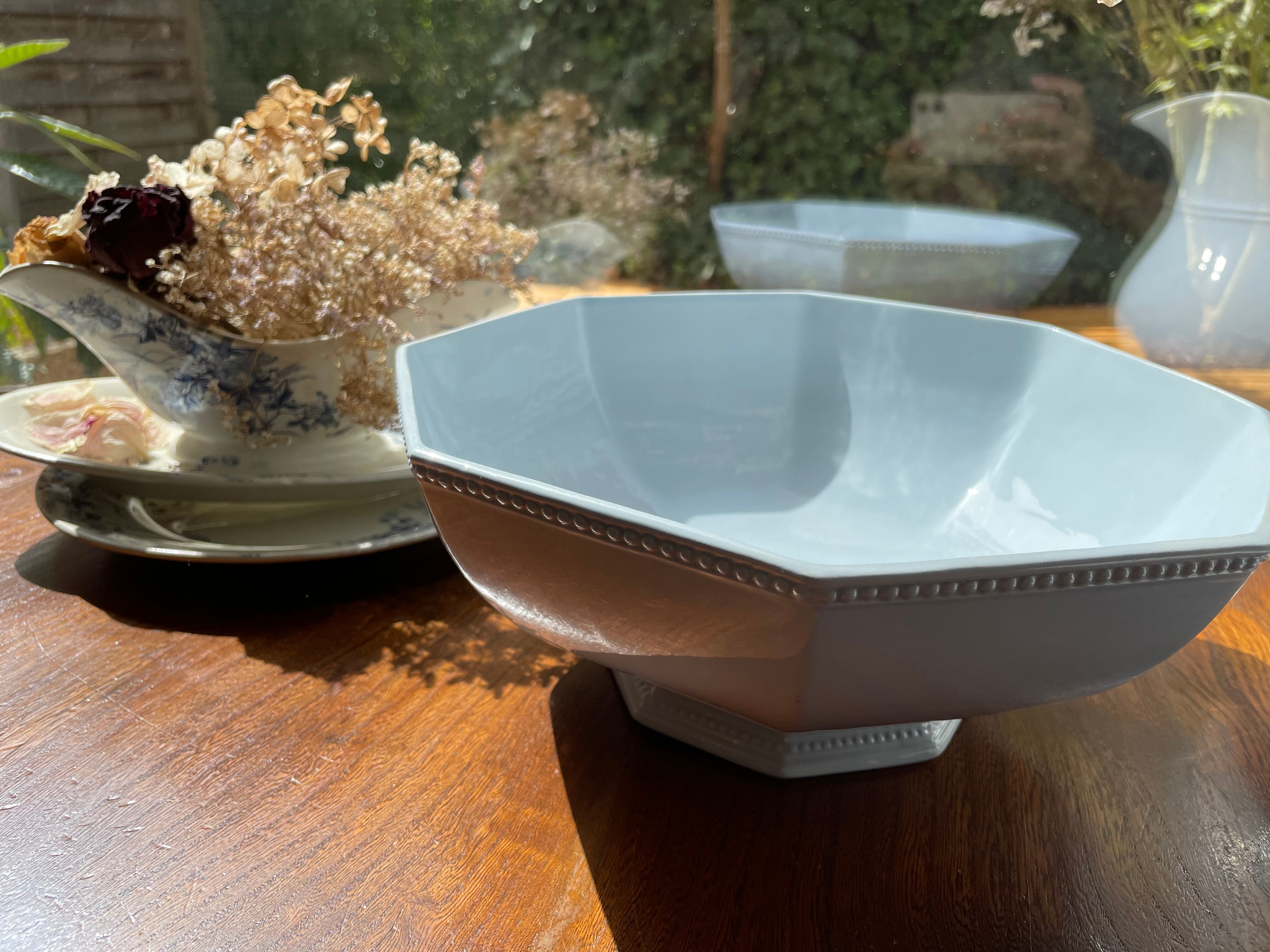 ref: 1702 アンティーク・オクトゴナルボウル・淡いブルー・Creil et Montereau