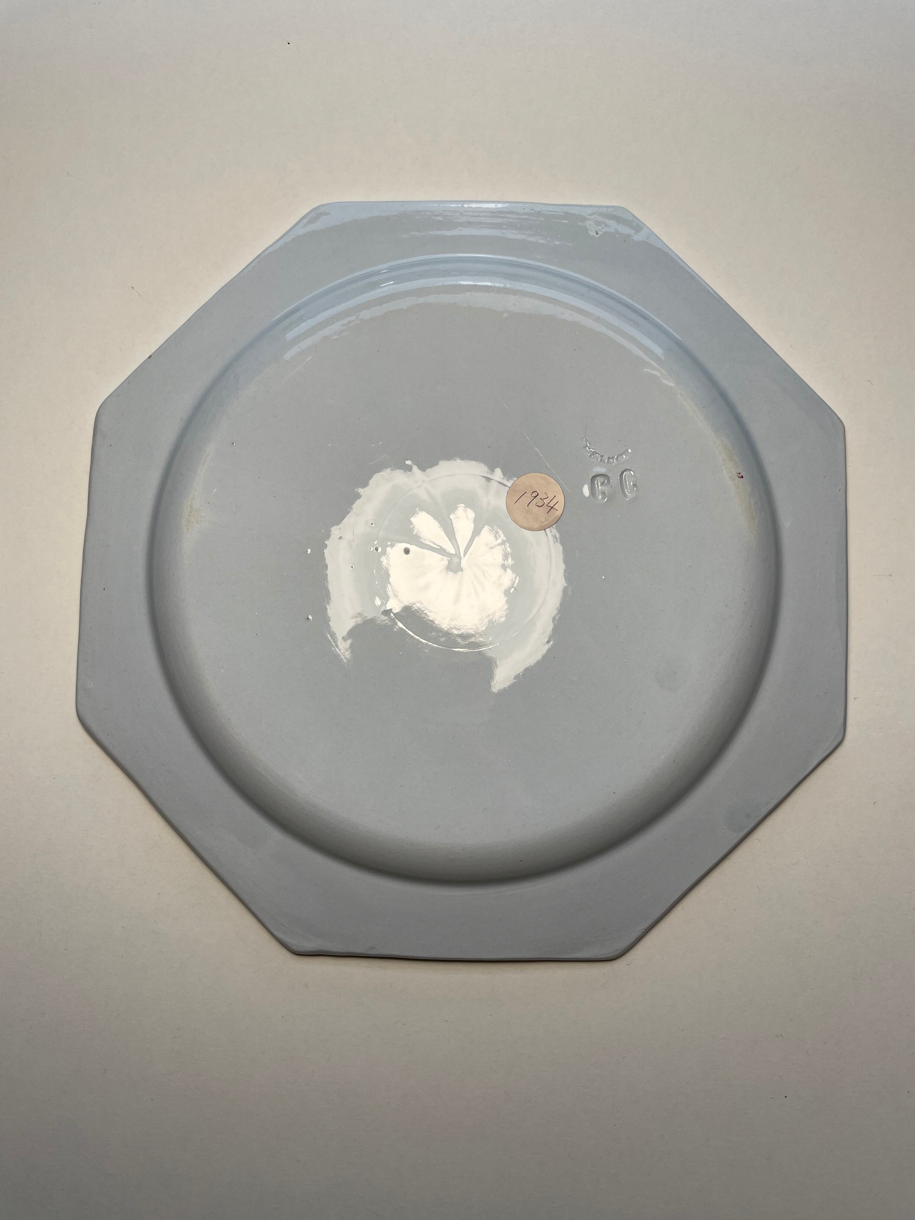 ref: 1934 アンティーク・オクトゴナル・Creil et Montereau デセール・淡いブルー・20,2cm