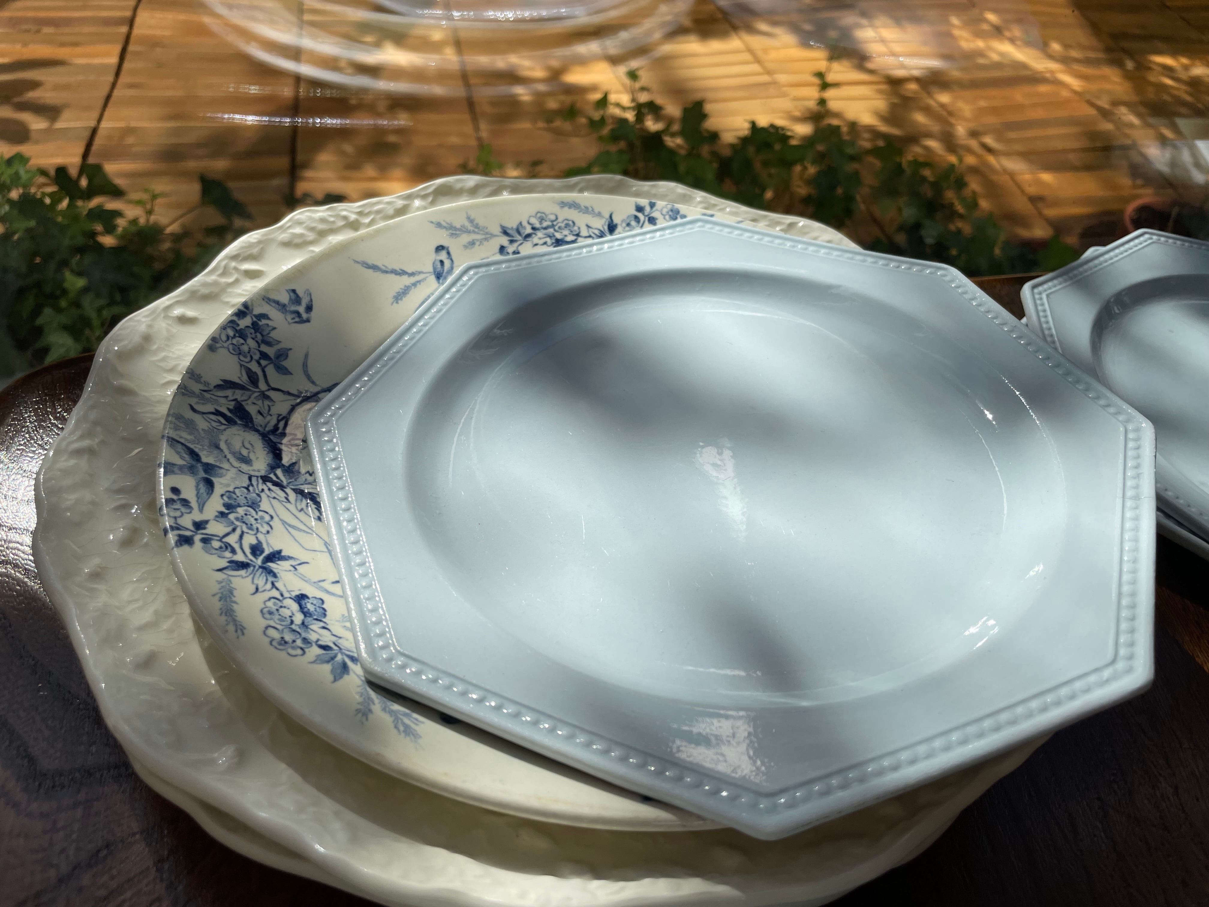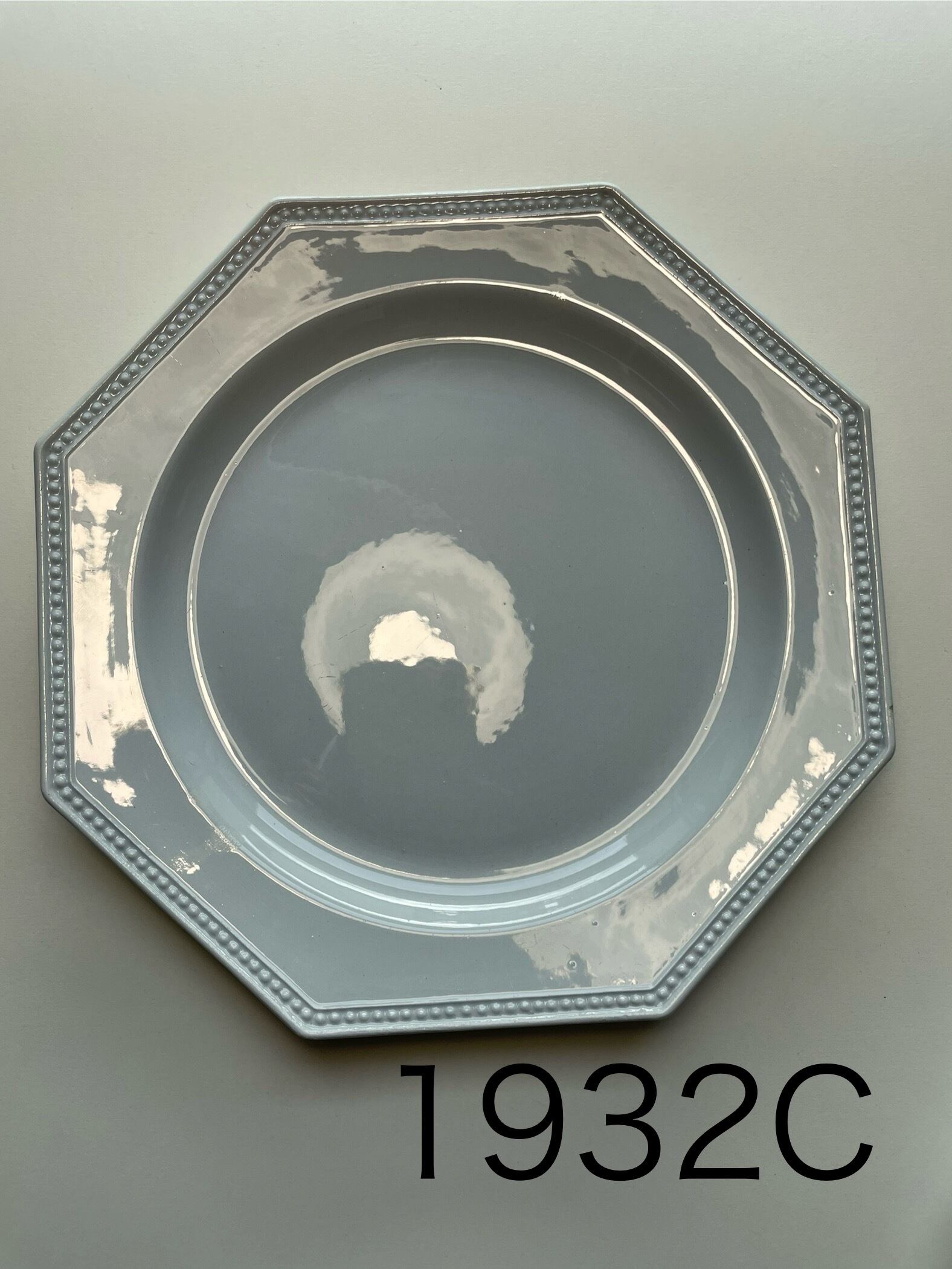 ref: 1932 アンティーク・オクトゴナル・Creil et Montereau ディナー・淡いブルー・24,3cm