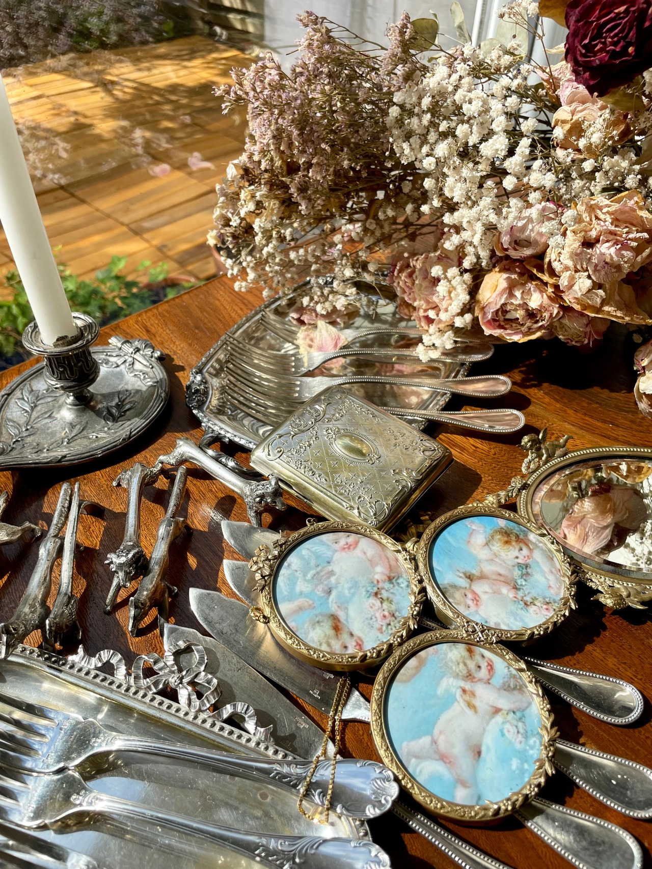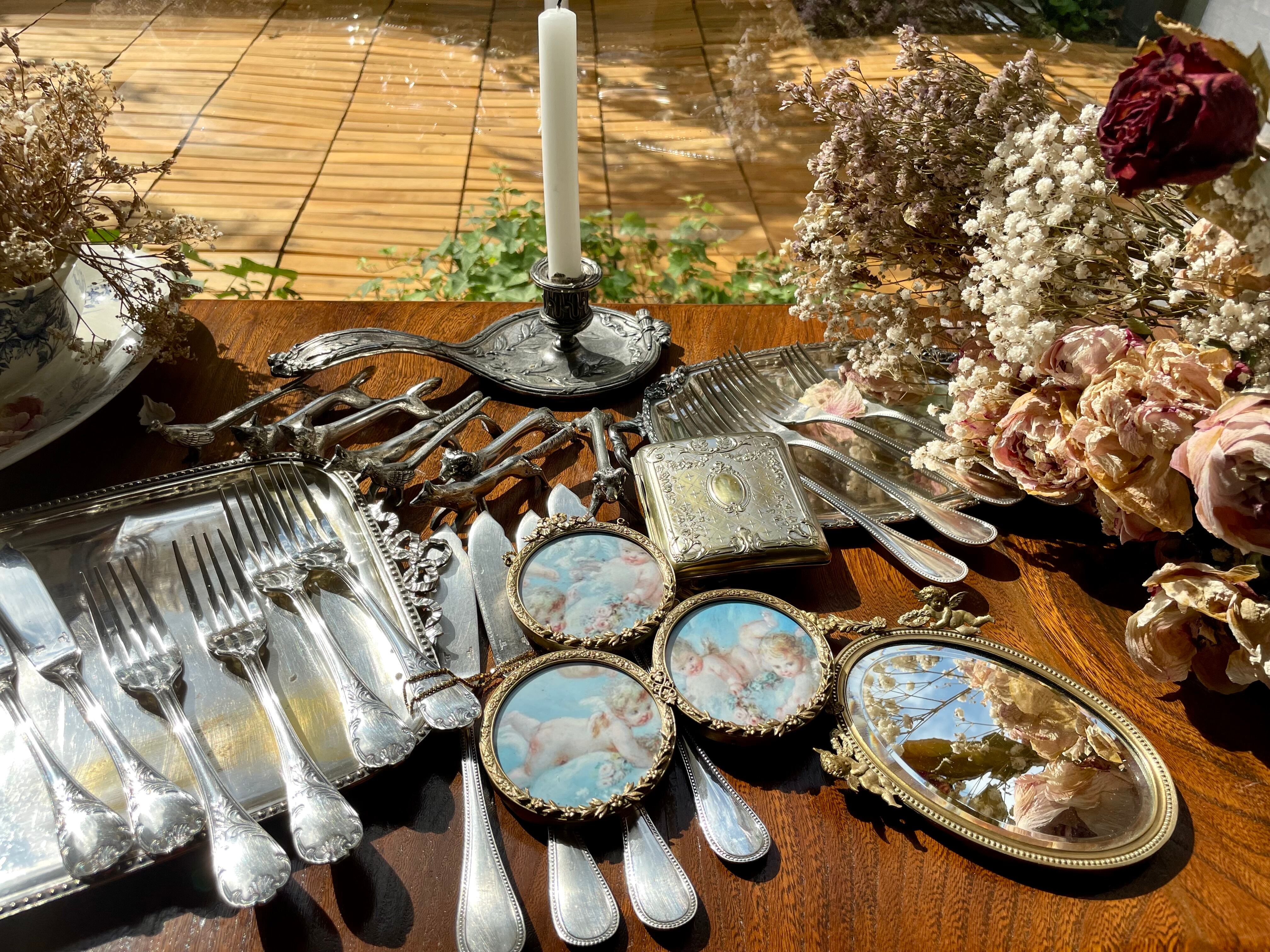 アンティークカトラリーレスト、カトラリーと合わせて、