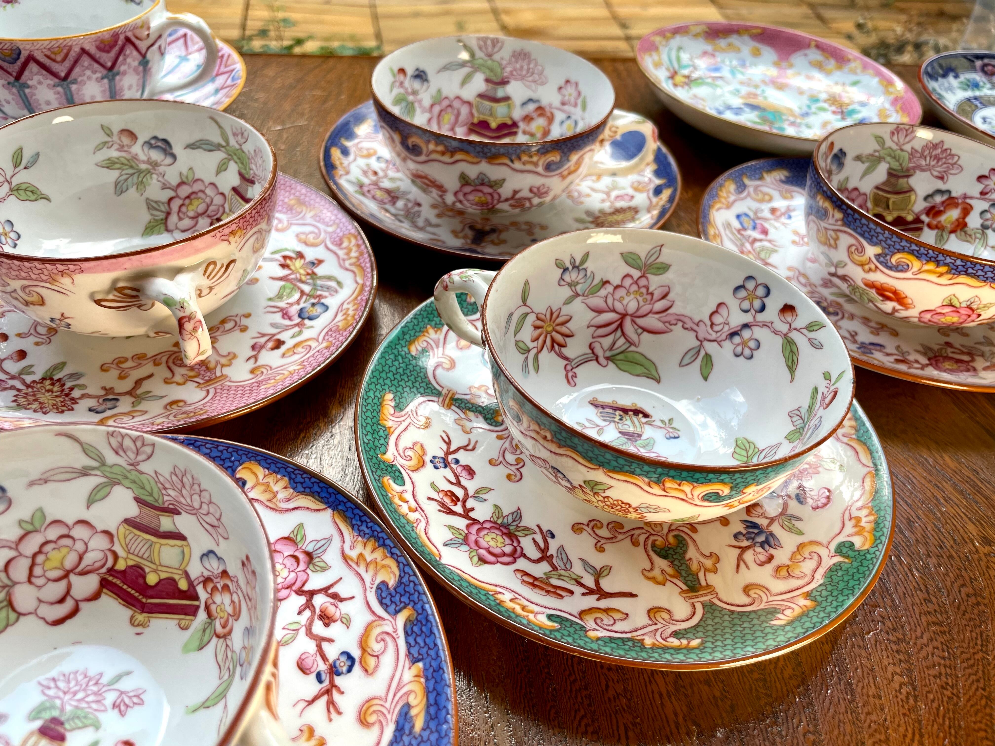 サレグミン製陶所による "ミントン "柄の美しい手描きのファイアンス製ティーカップ です。