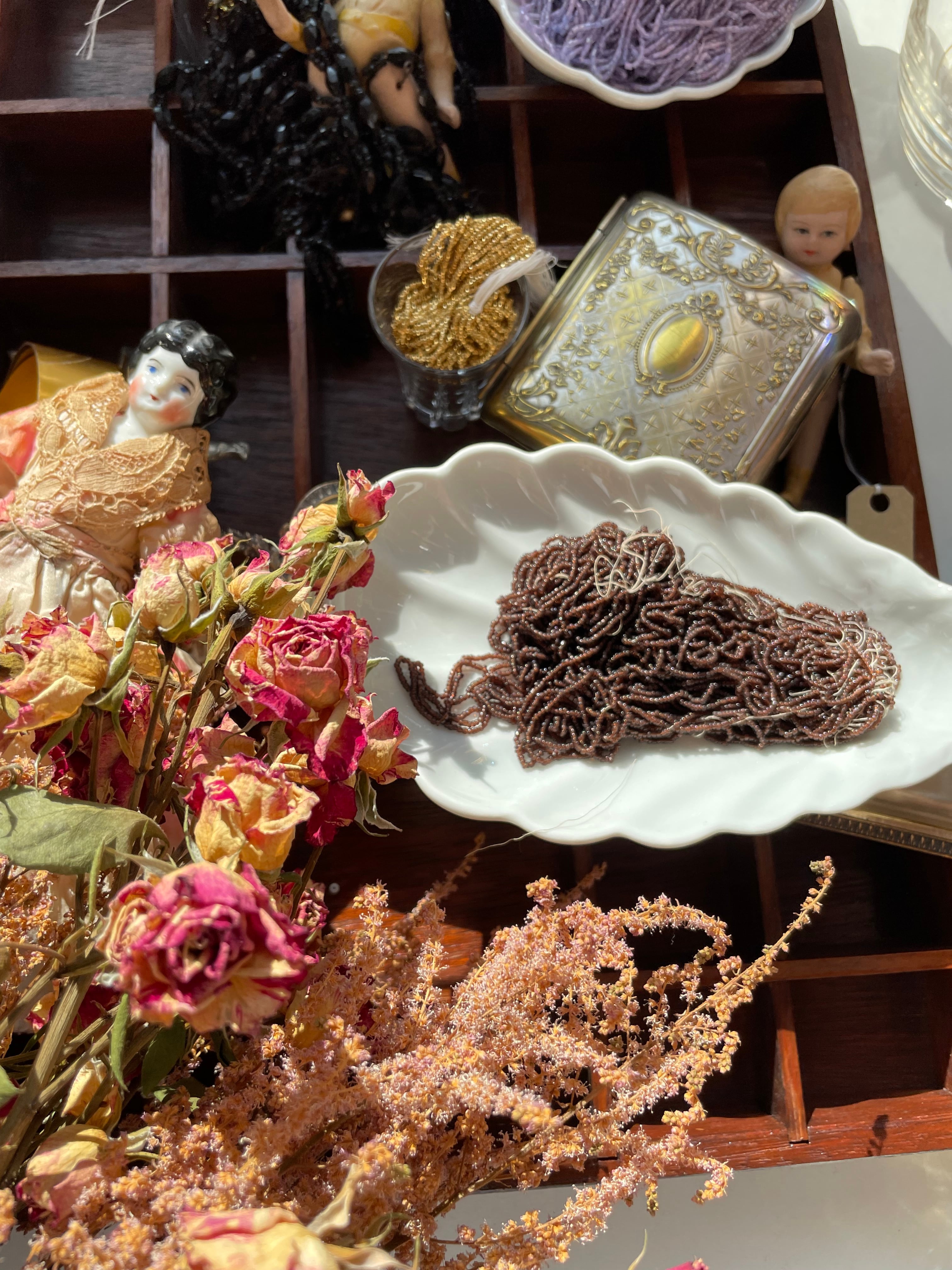 今回は、その昔、フランスオートクチュール刺繍学校の名門 ルサージュにて刺繍を学ばれていたコレクターさんからアンティークビーズを購入できるという幸運に恵まれました。