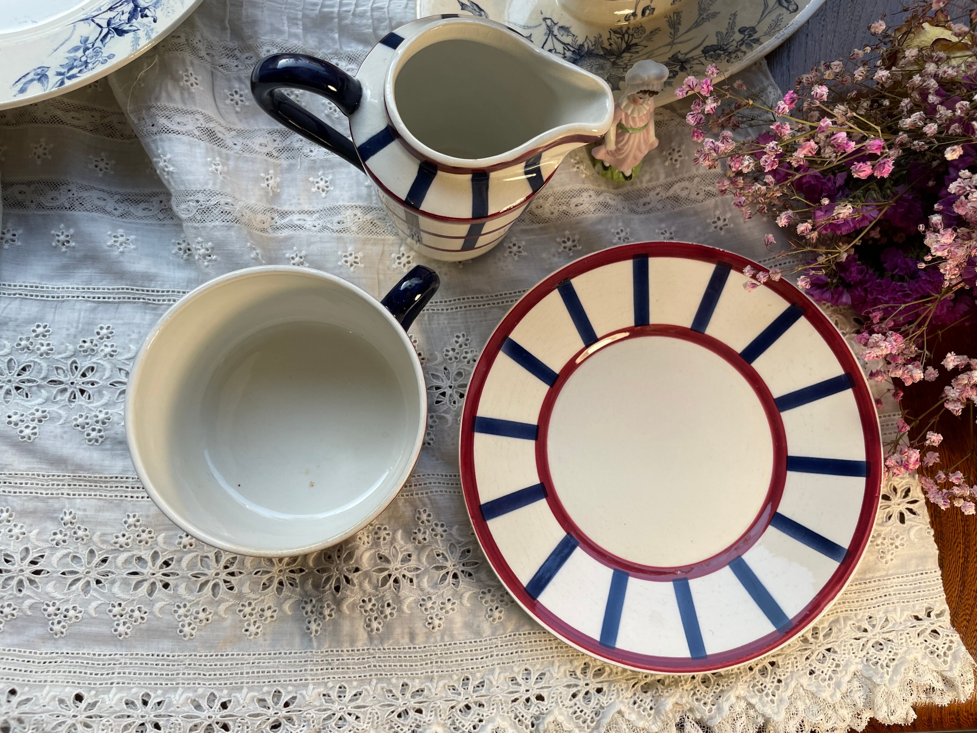 1900年初頭当時、流行の兆しがあったアール·デコ様式の印象を与えるそのデザインが、たくさんの人々を魅了しBéarnシリーズのブームに火が付きました。Béarnシリーズの絵柄は、フランスバスク地方に点在するネオバスク建築様式の家がモチーフとされているようです。 赤✕濃いブルーで描かれたバスク模様がとても魅力的な逸品です。
