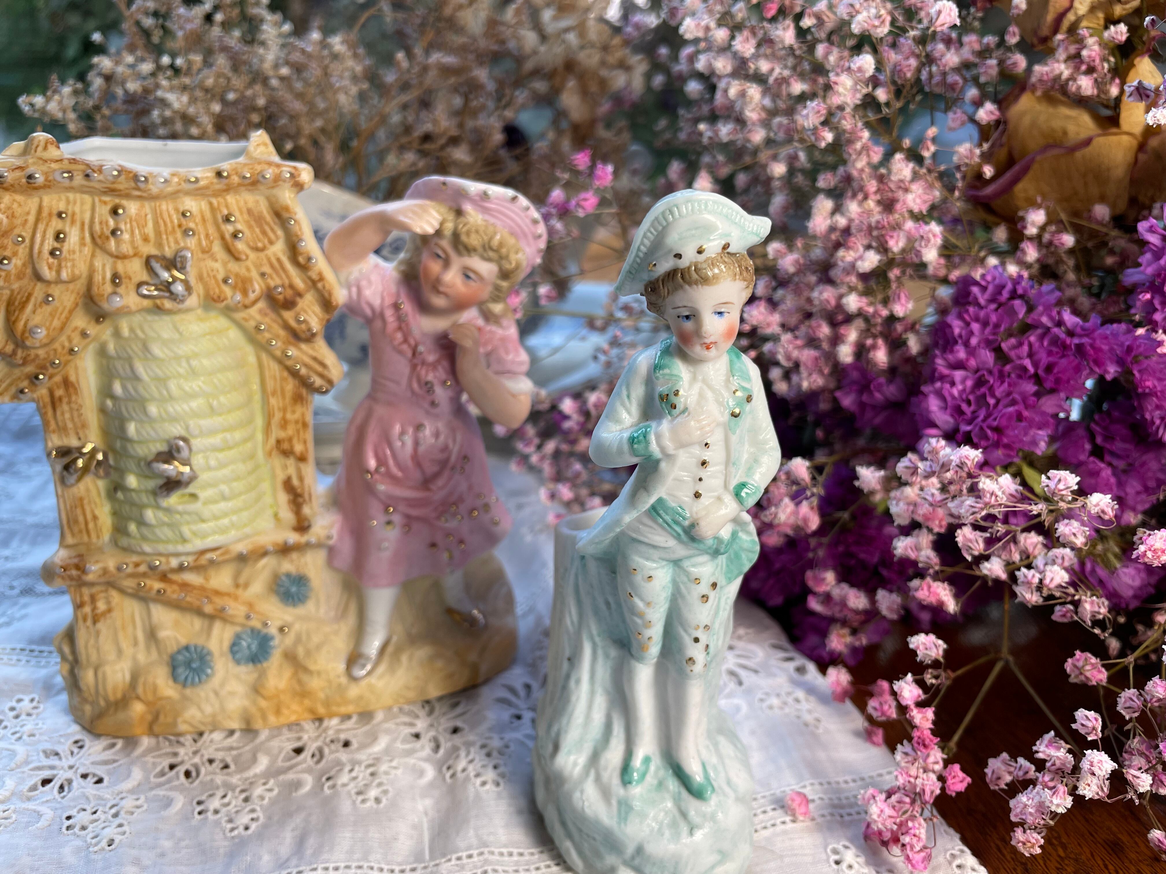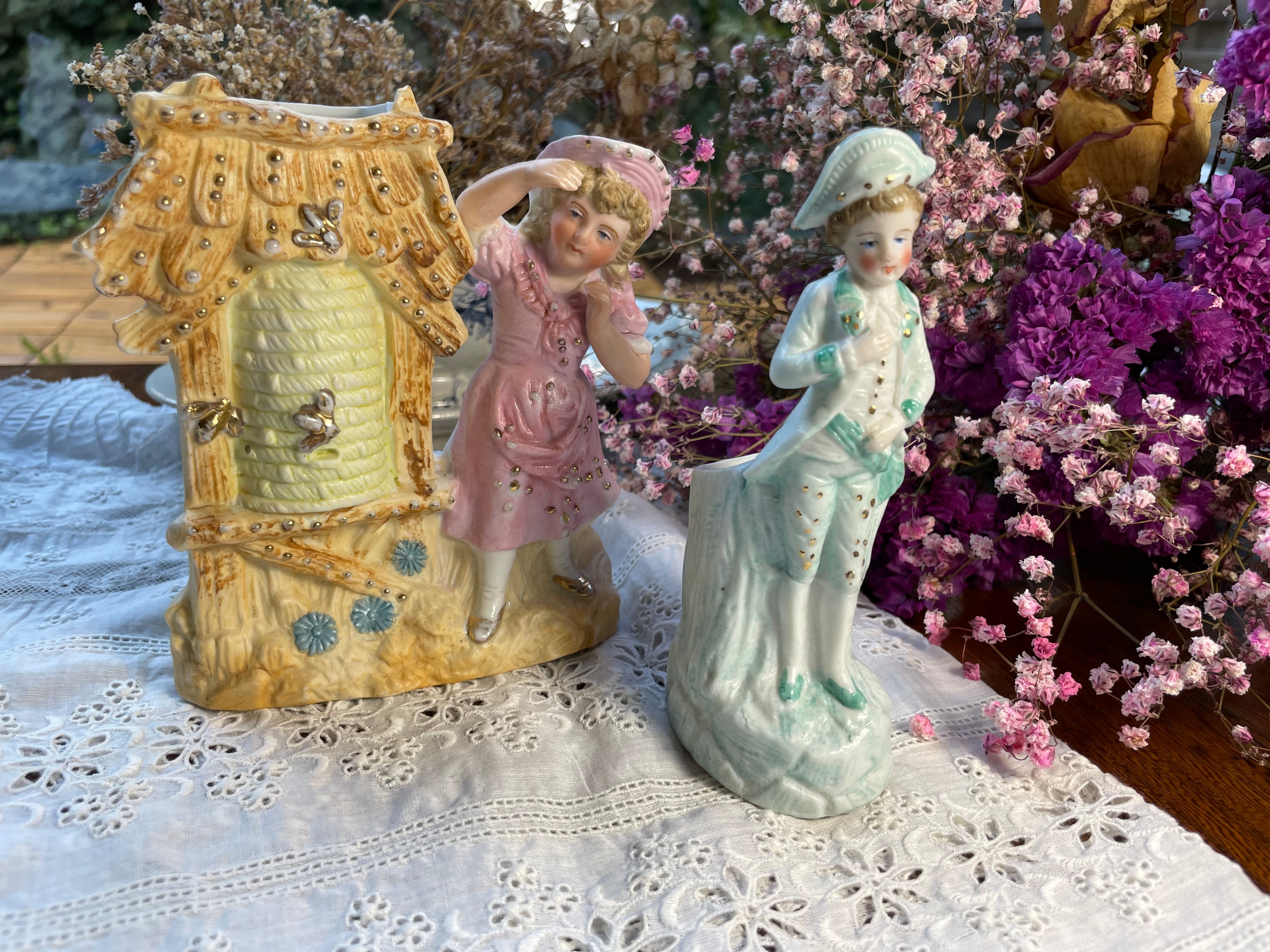 ref : 1488 アンティーク・ビスクフラワーベース・幸運の蜂とMademoiselle