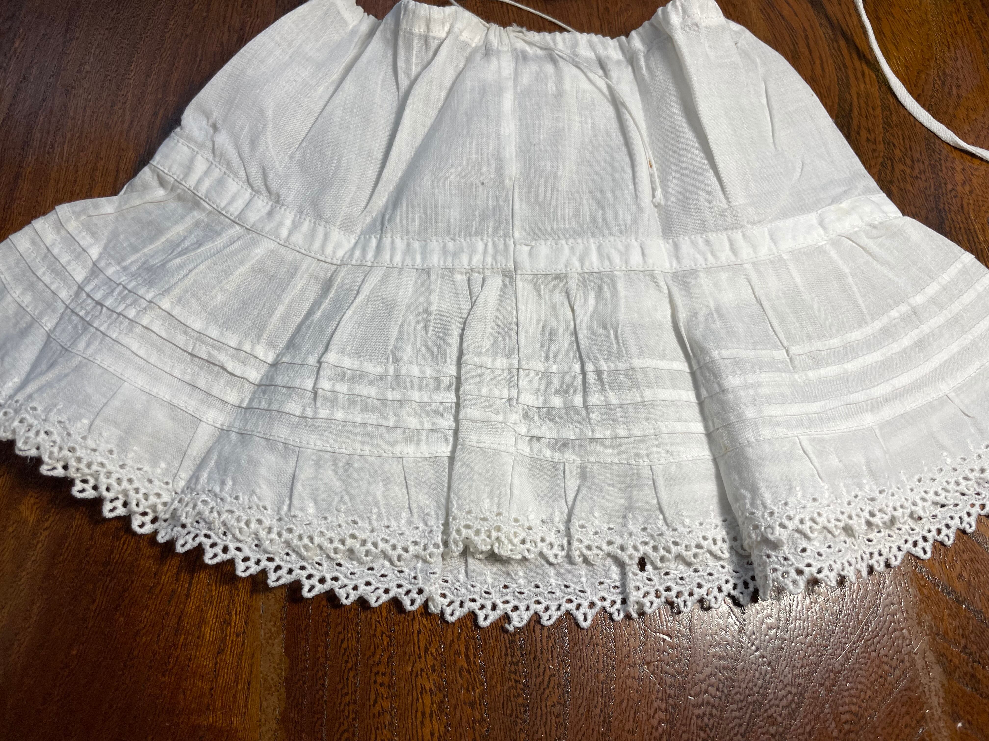 裾レースやピンタックの入った非常に作り込まれたアンティークドールスカートです。