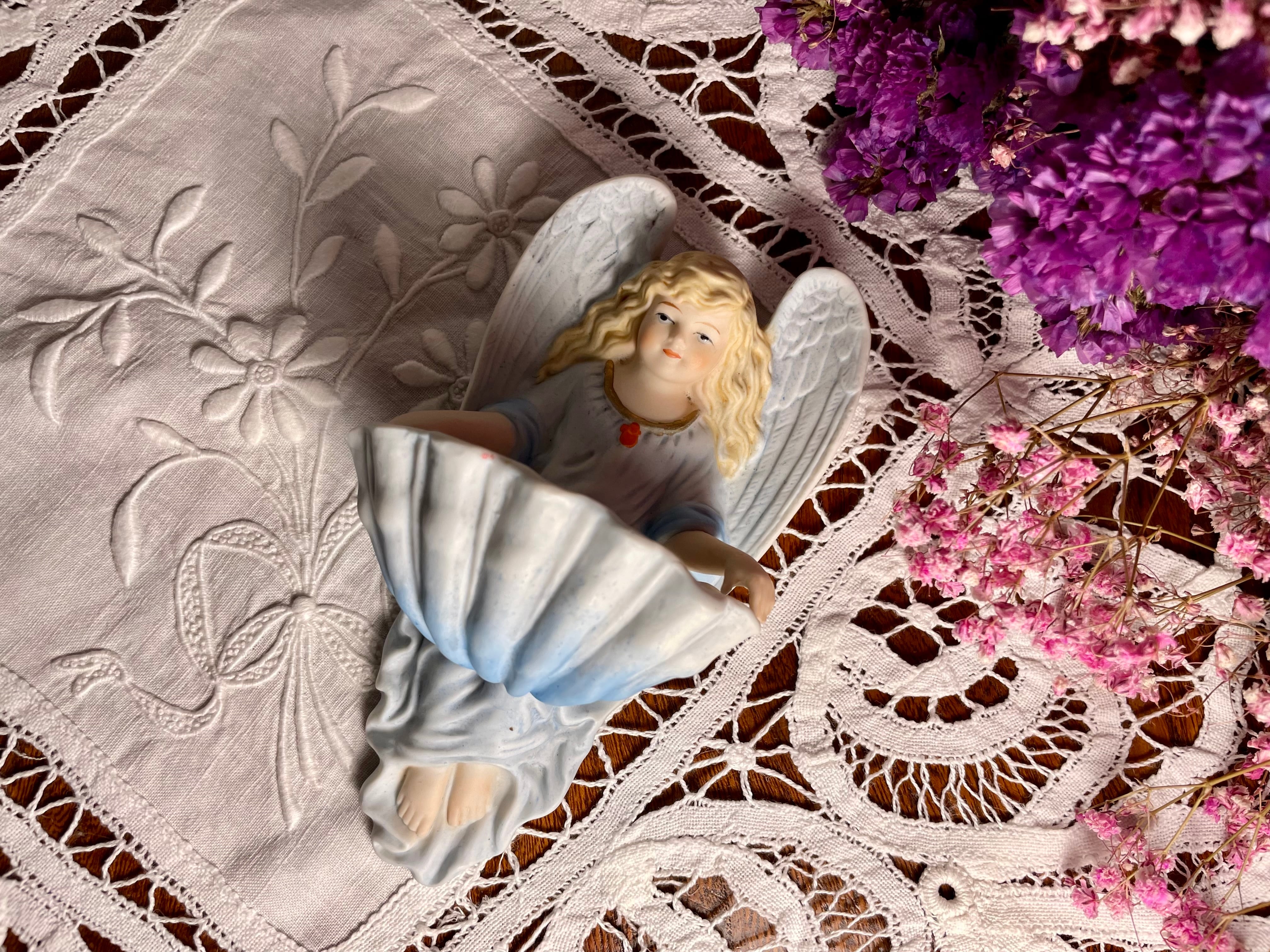 美しい、柔らかな表情のブロンドの天使の聖水盤。