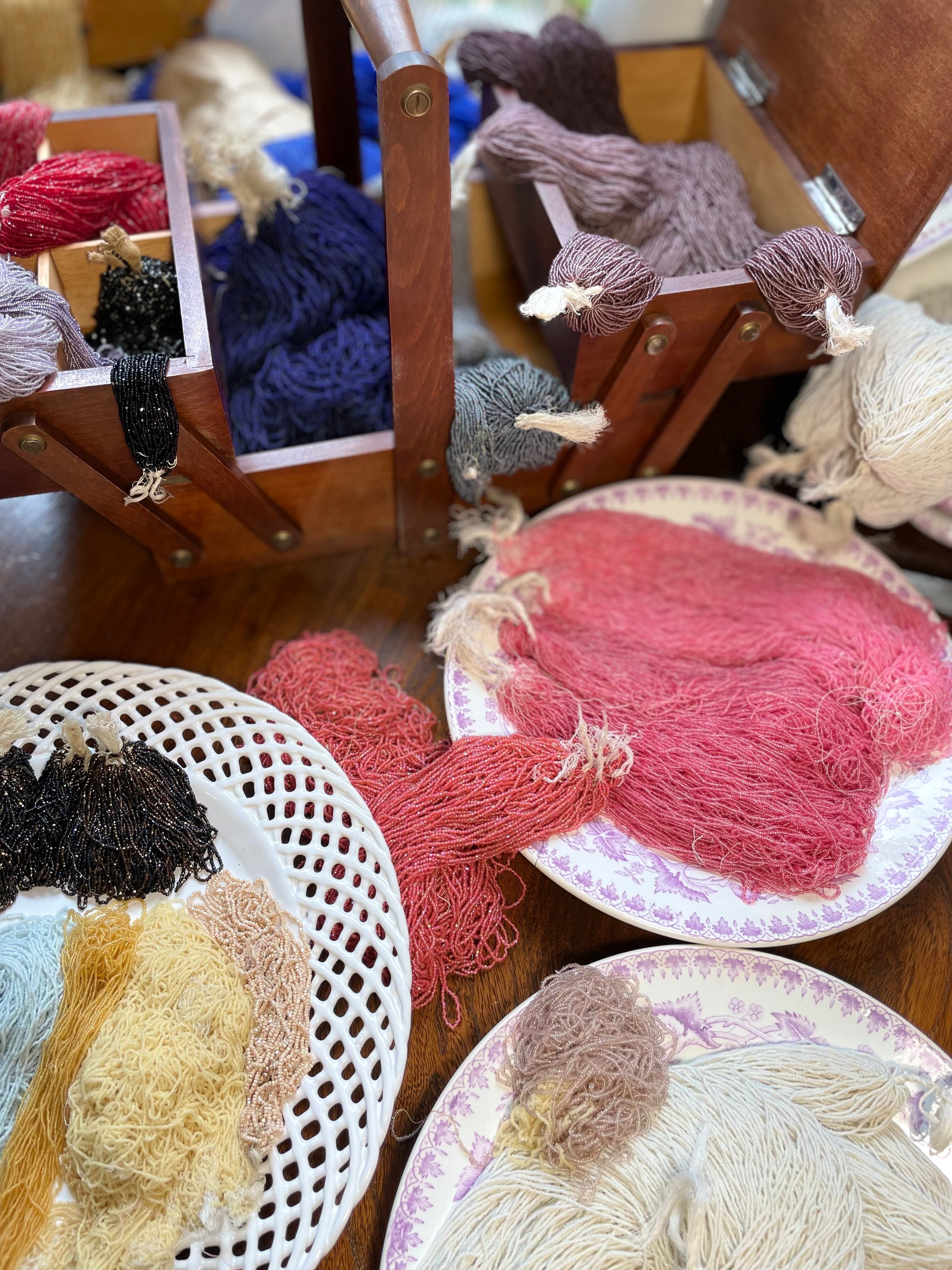 マダムの叔母様が当時ガラスシードビーズを使用した刺繍装飾ポシェットやバッグの