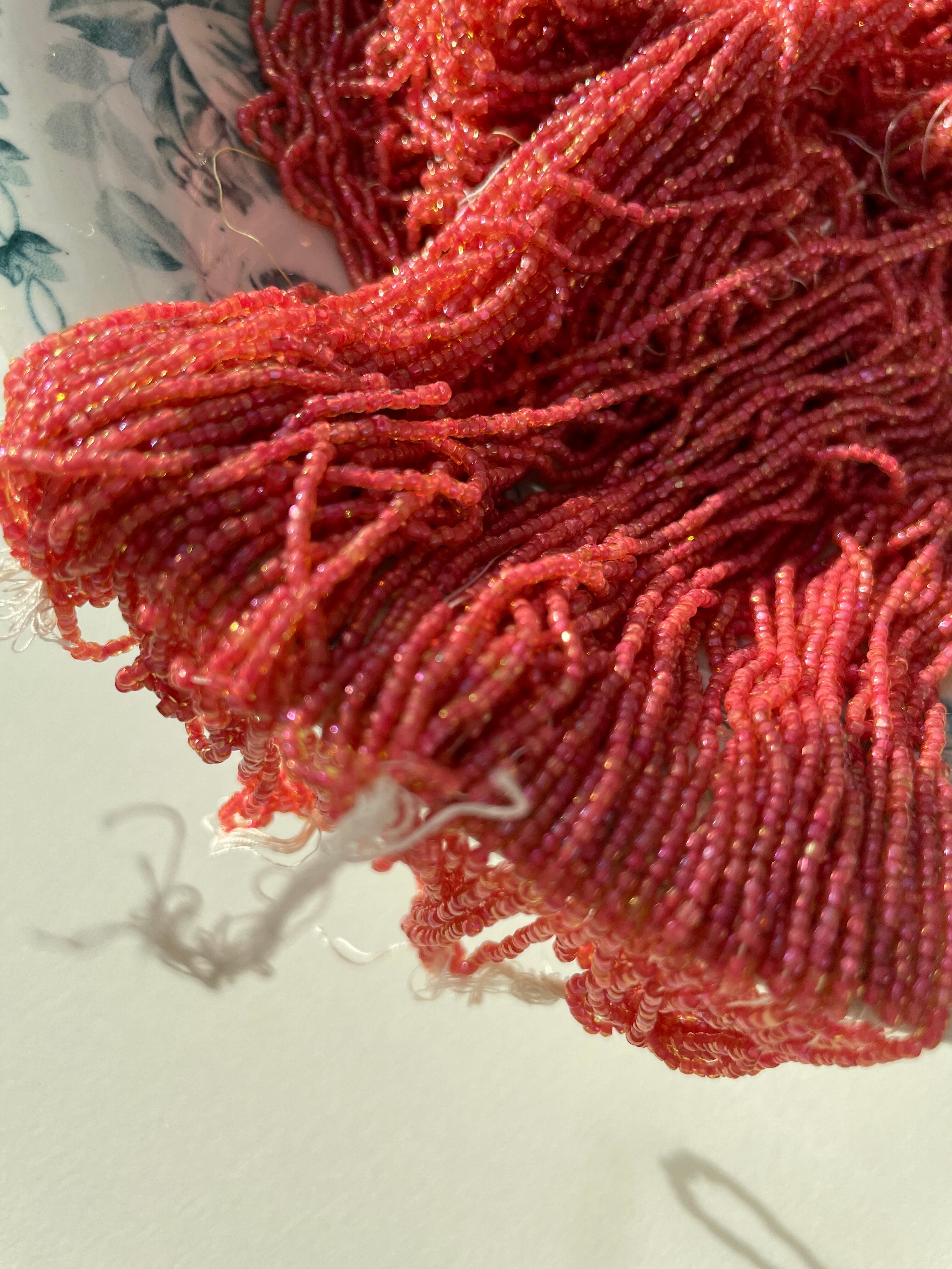 カラー サーモンピンク、フランボワーズ、ゴールドに輝く部分があります。