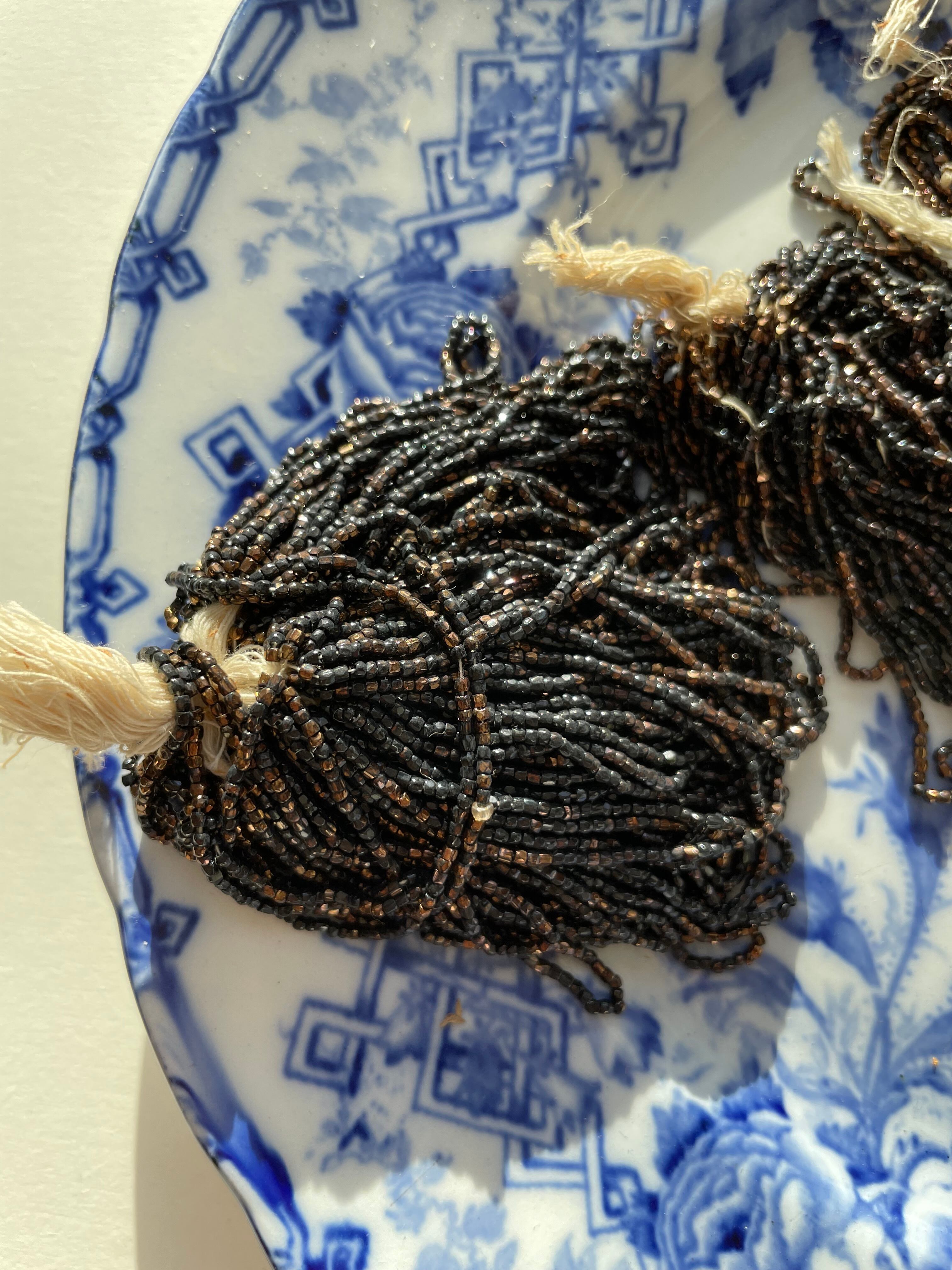 ref : Beads 058 アンティーク・ガラスビーズ・ゴールドブラック