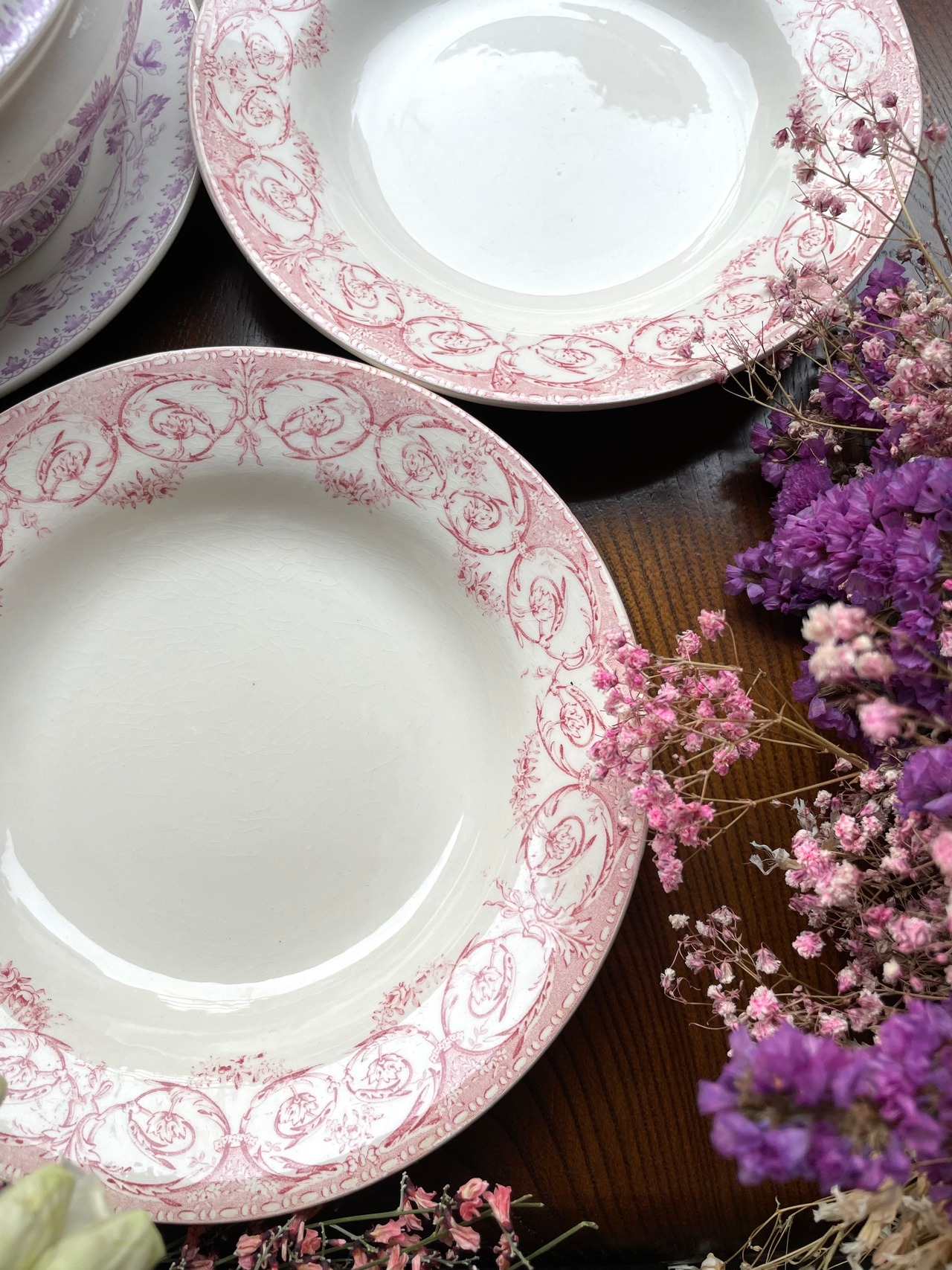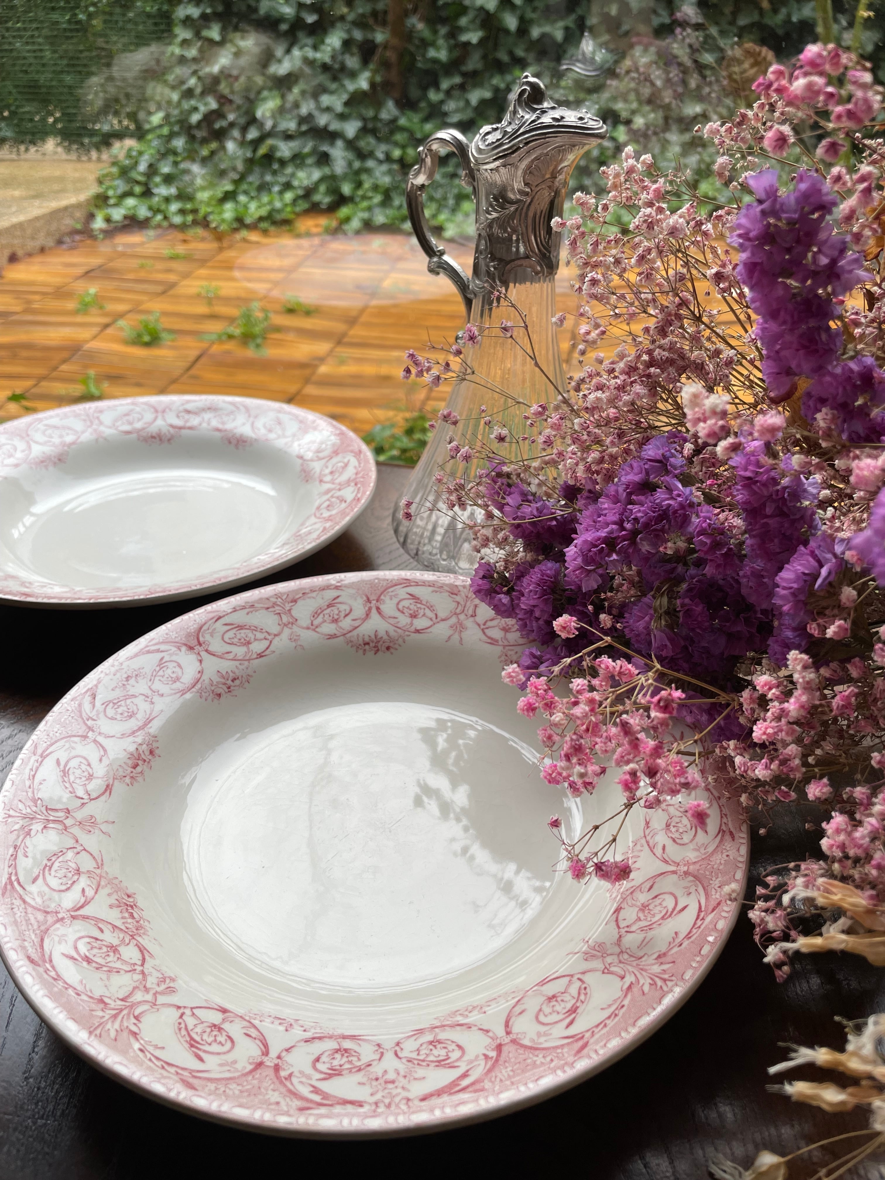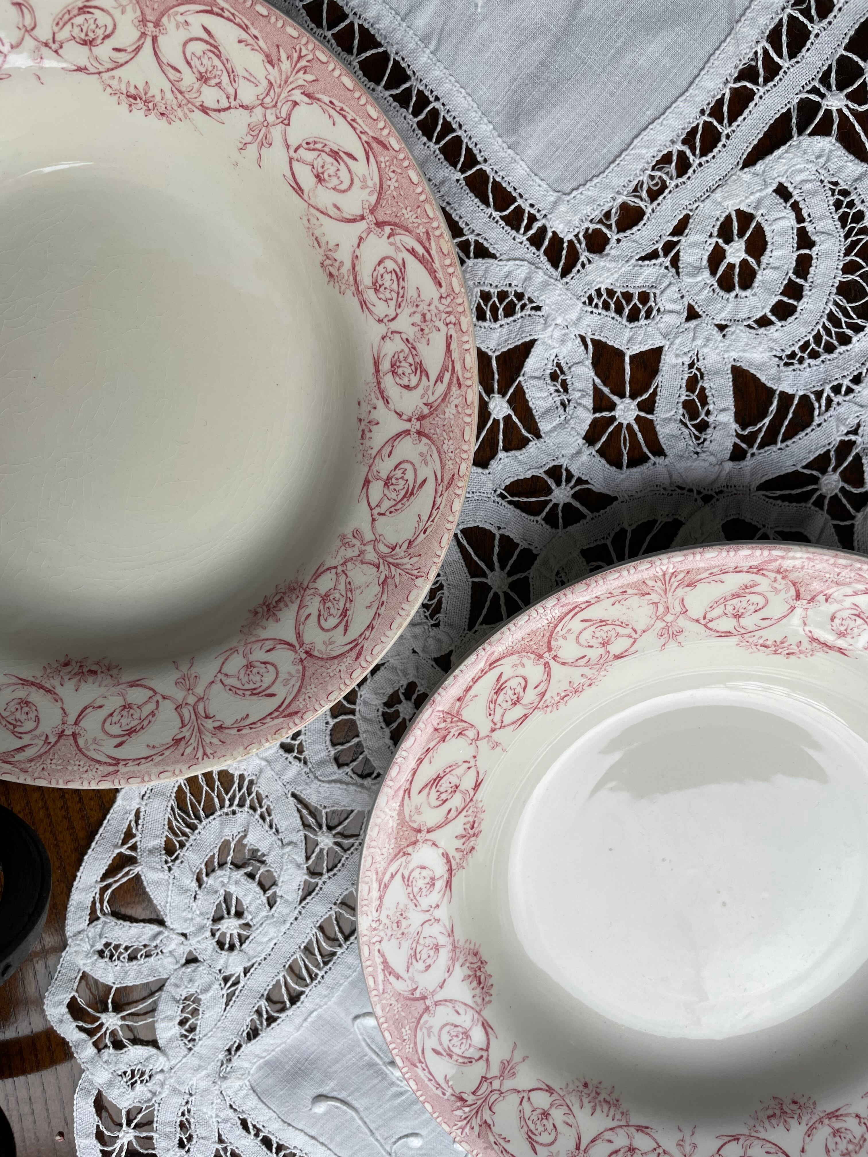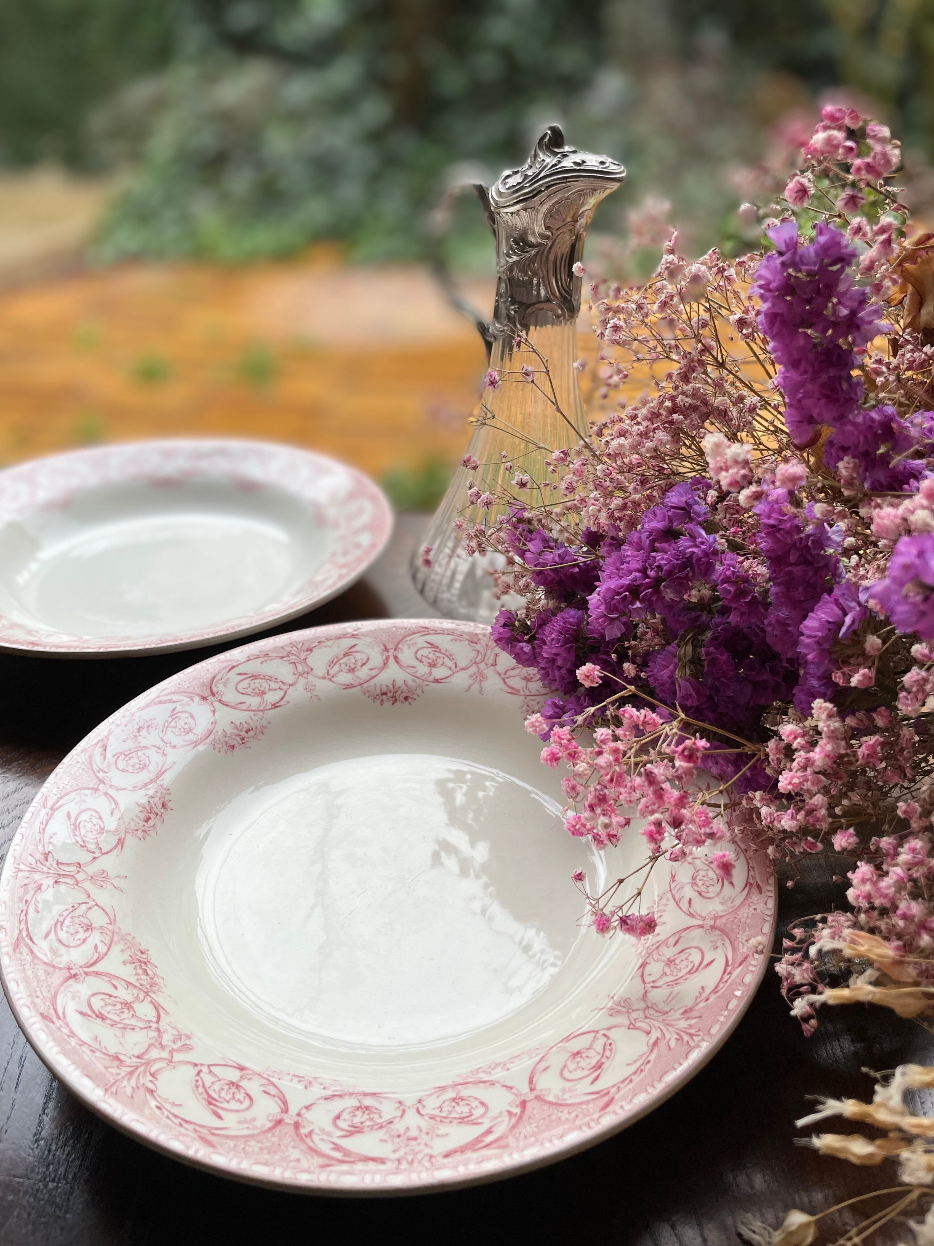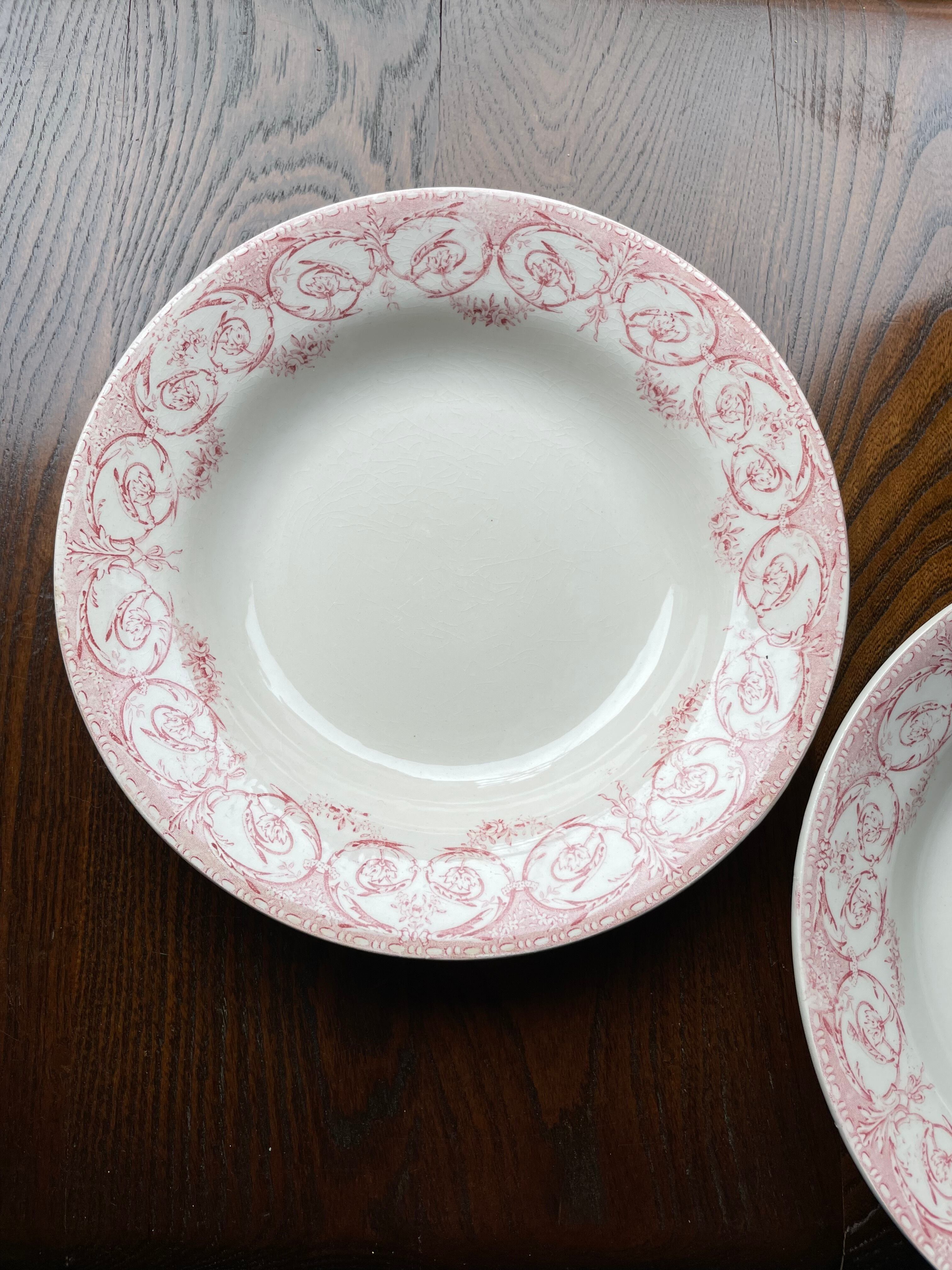 ref : 1907 アンティークスーププレート ・Creil et Montereau LABRADOR SERVICE DUBARRY | Epines de Rose Paris Vintage