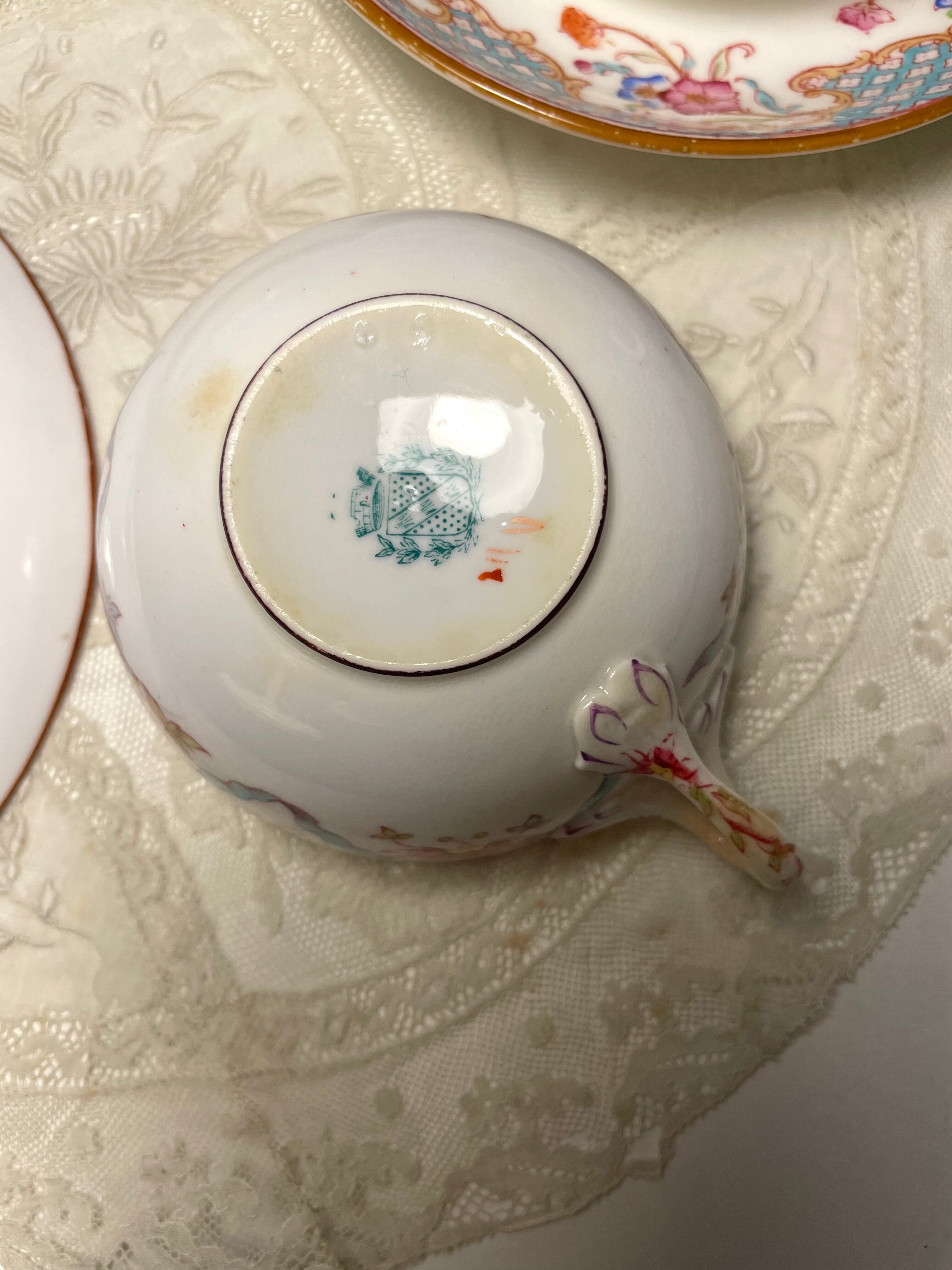 サレグミン製陶所による "ミントン "柄の美しい手描きのファイアンス製ティーカップ です。