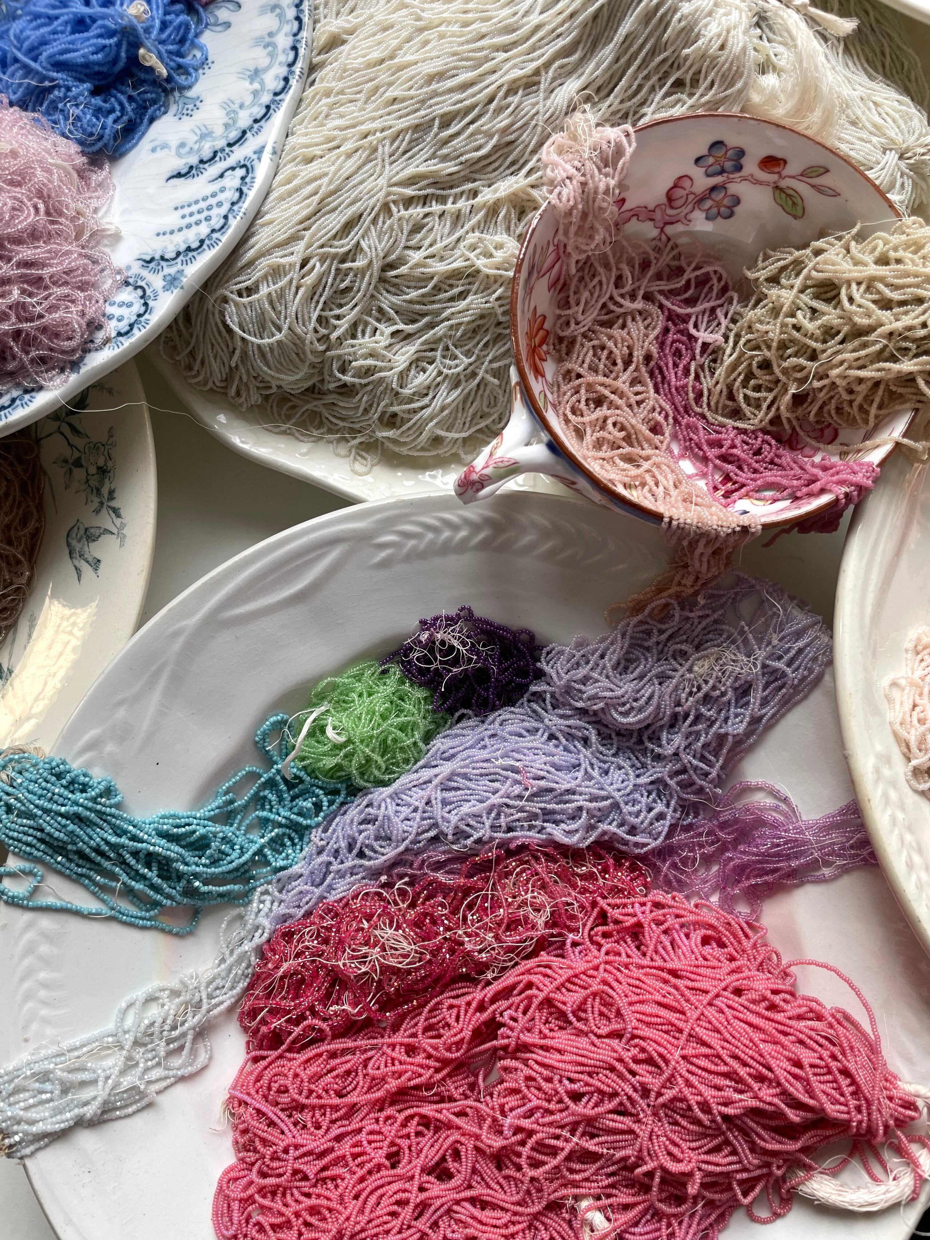 マダムの叔母様が当時ガラスシードビーズを使用した刺繍装飾バッグの